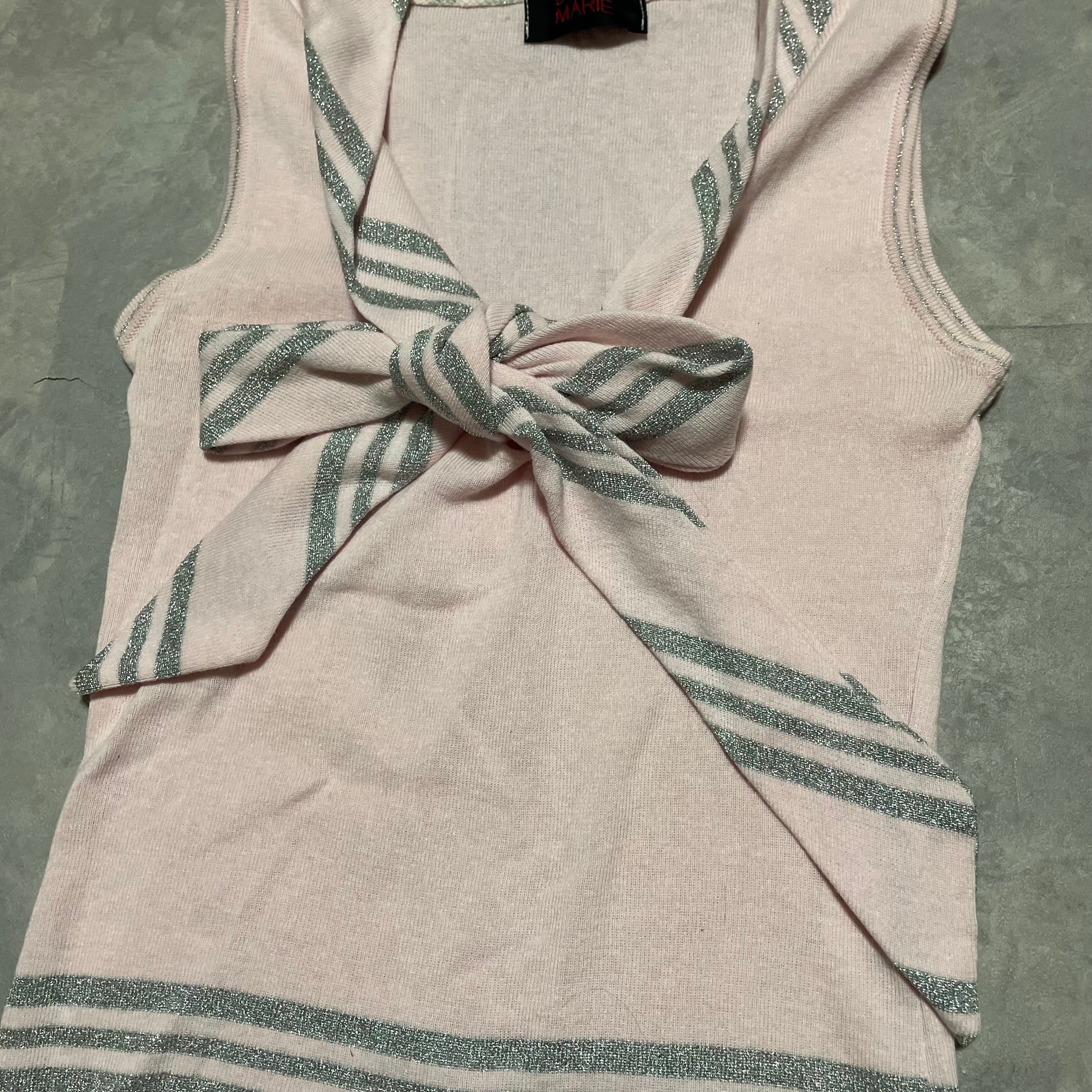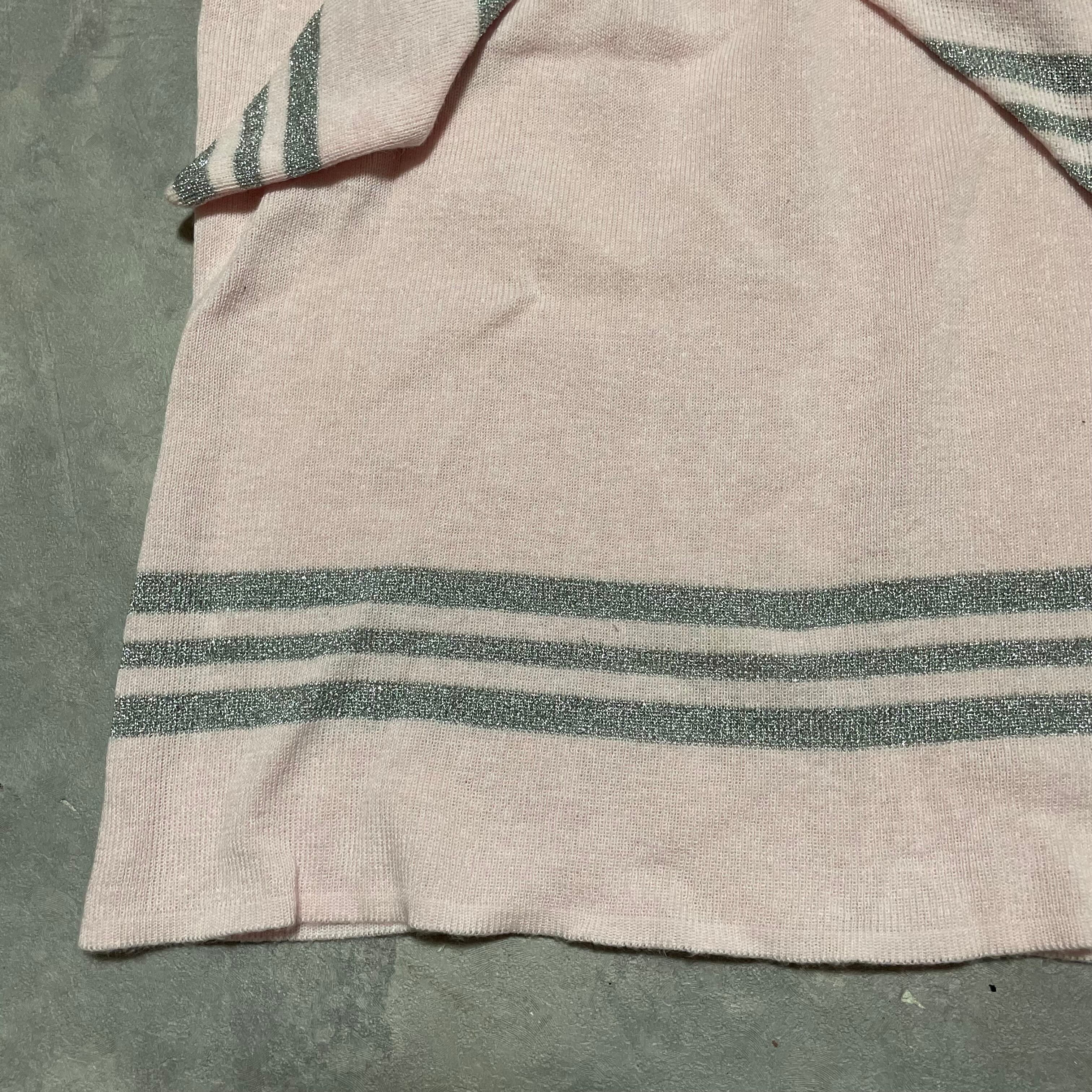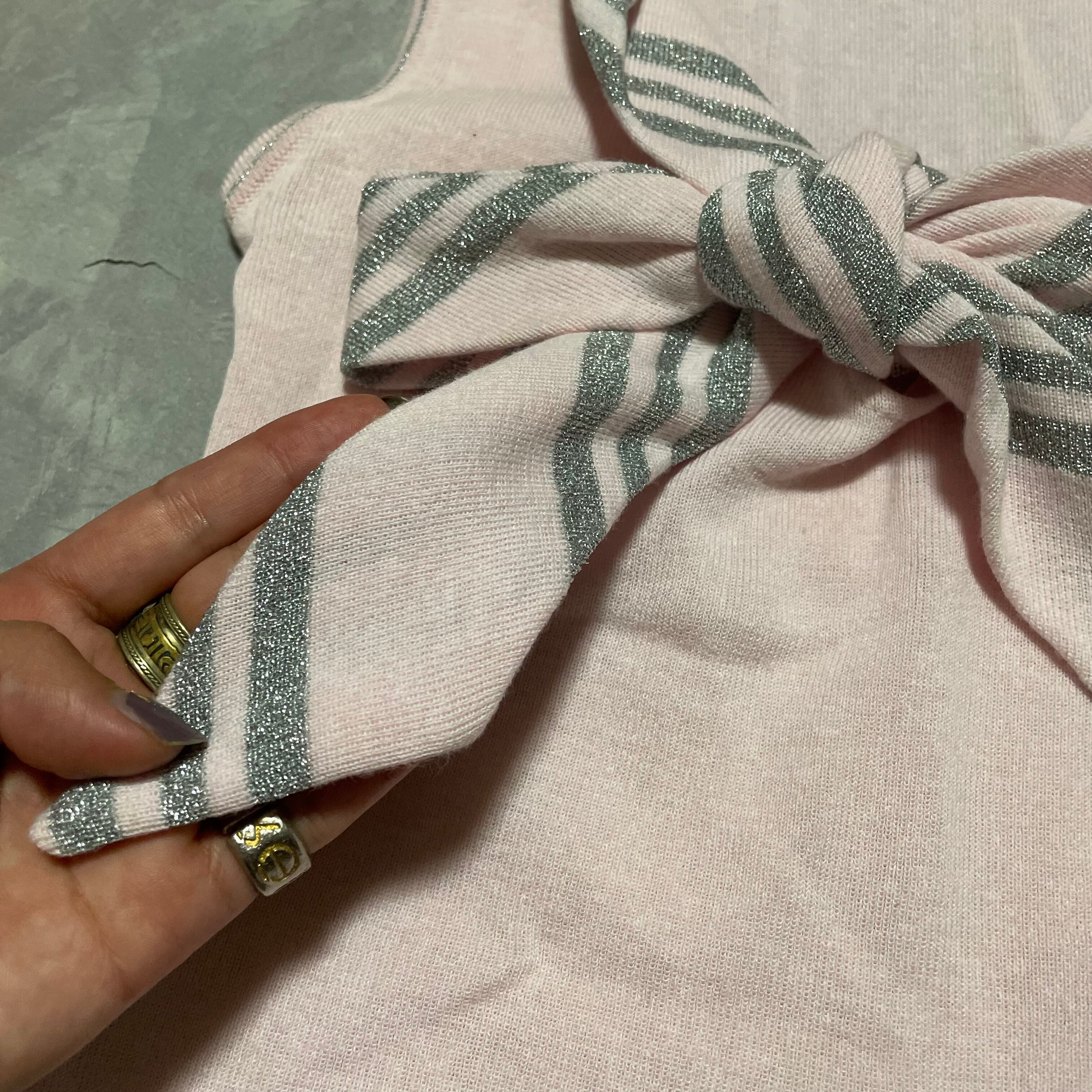 babyピンクのニットにsilverのボーダー柄がcuteなリボンタイknit