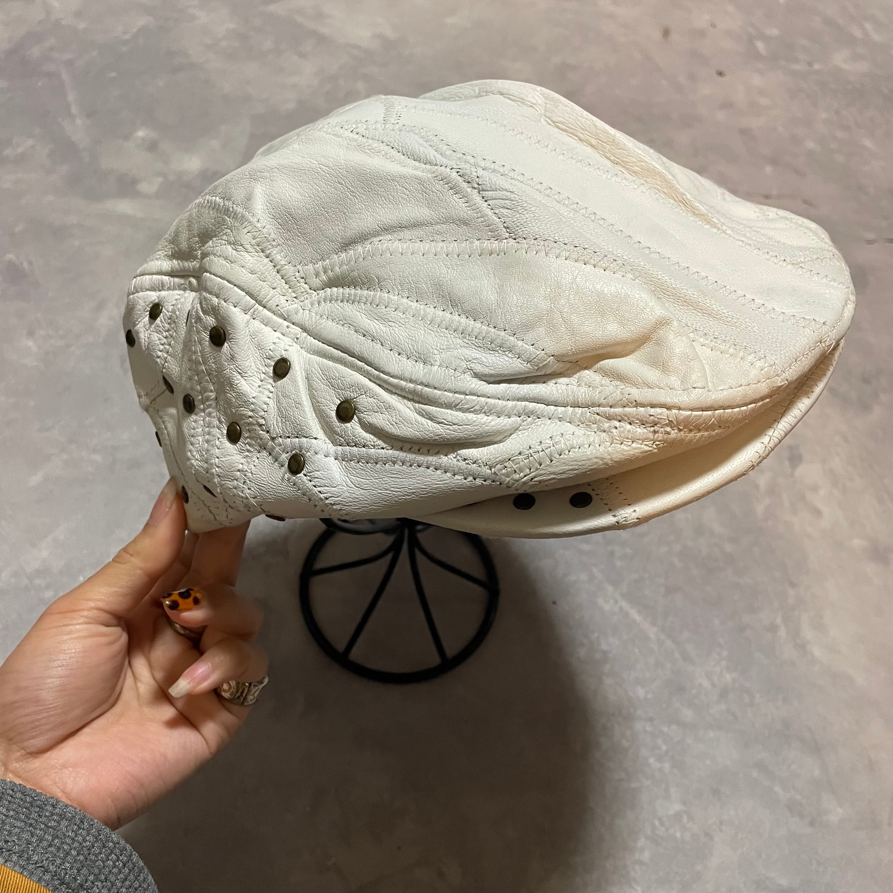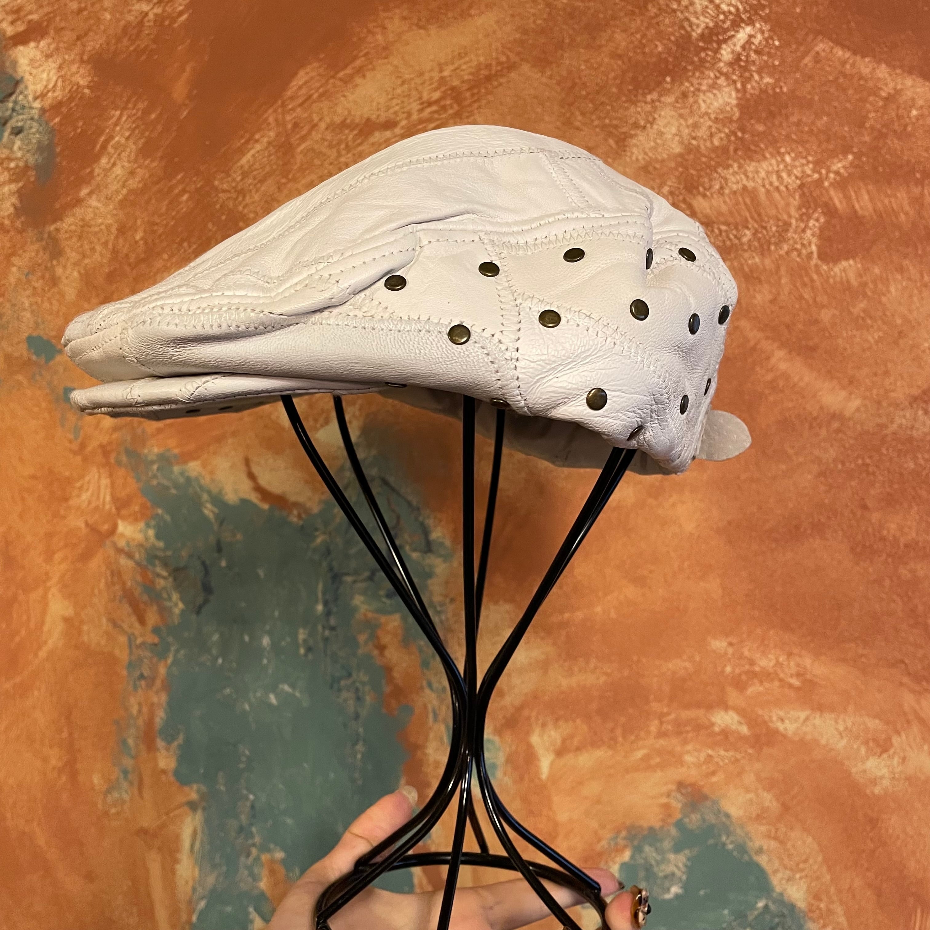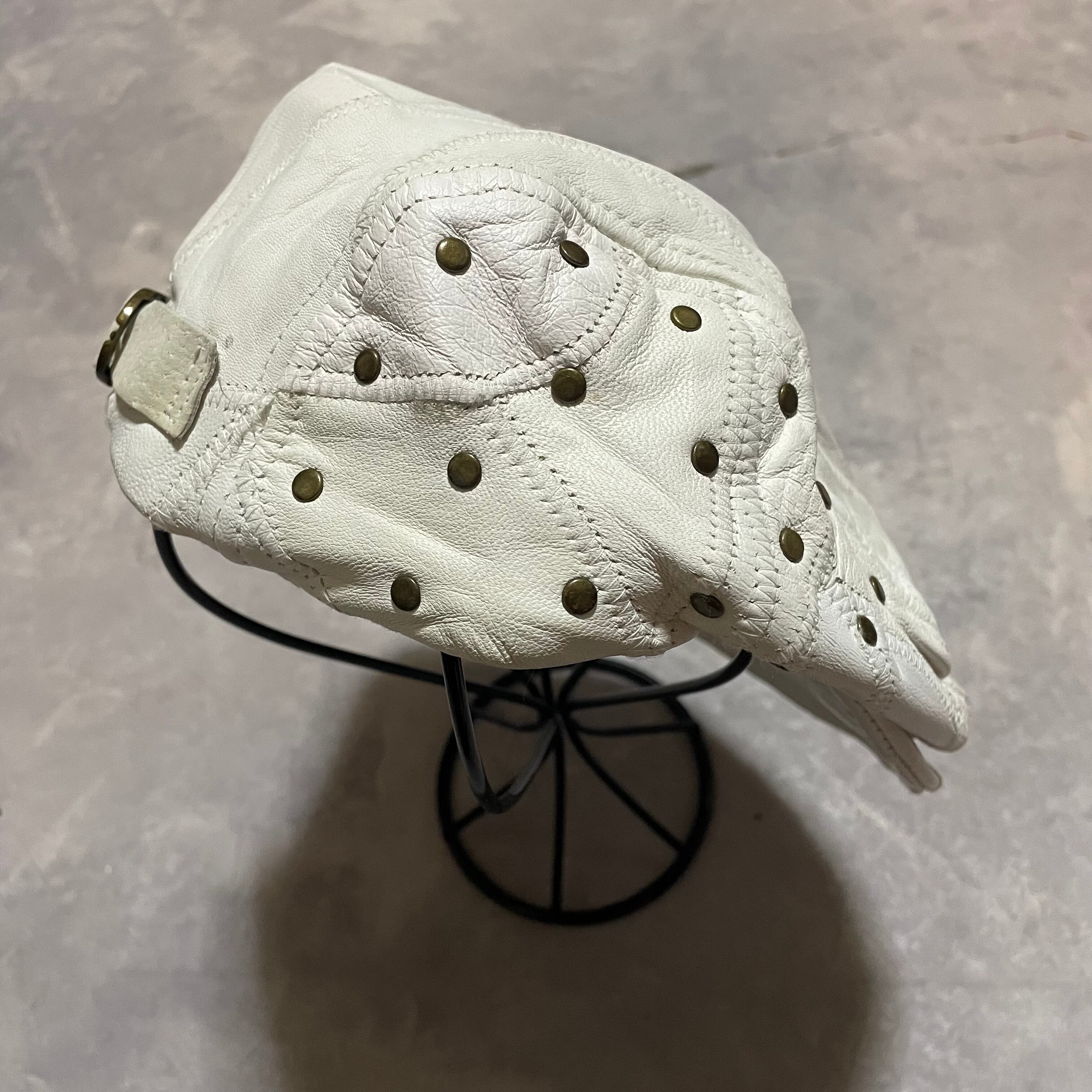 ホワイトレザーにgoldのスタッズのデザインがonly oneなハンチング