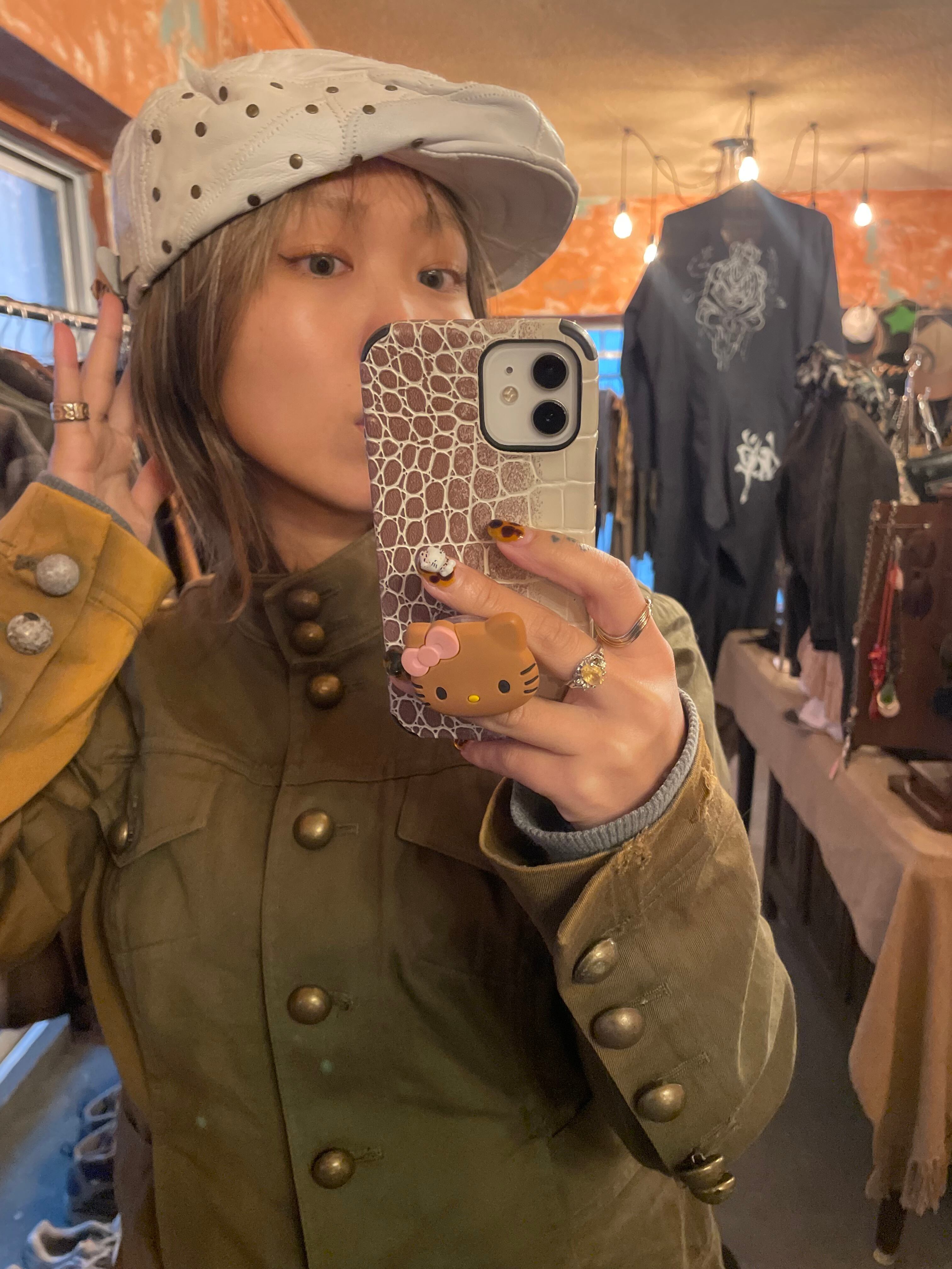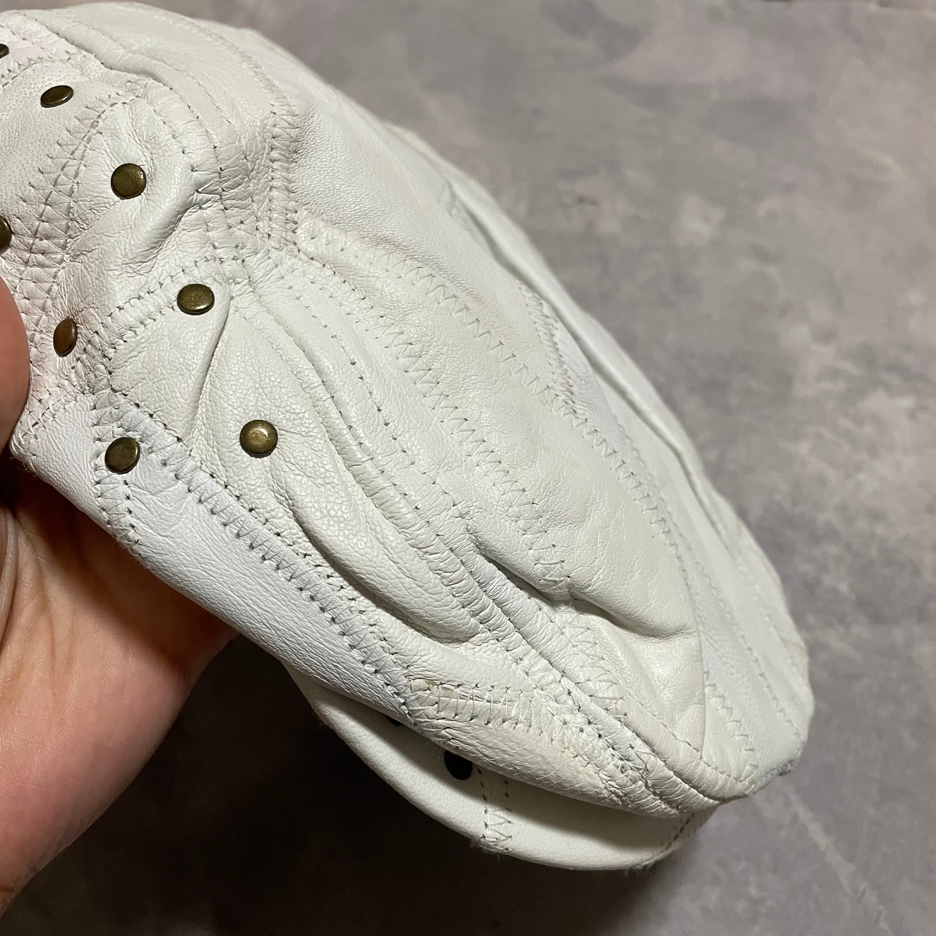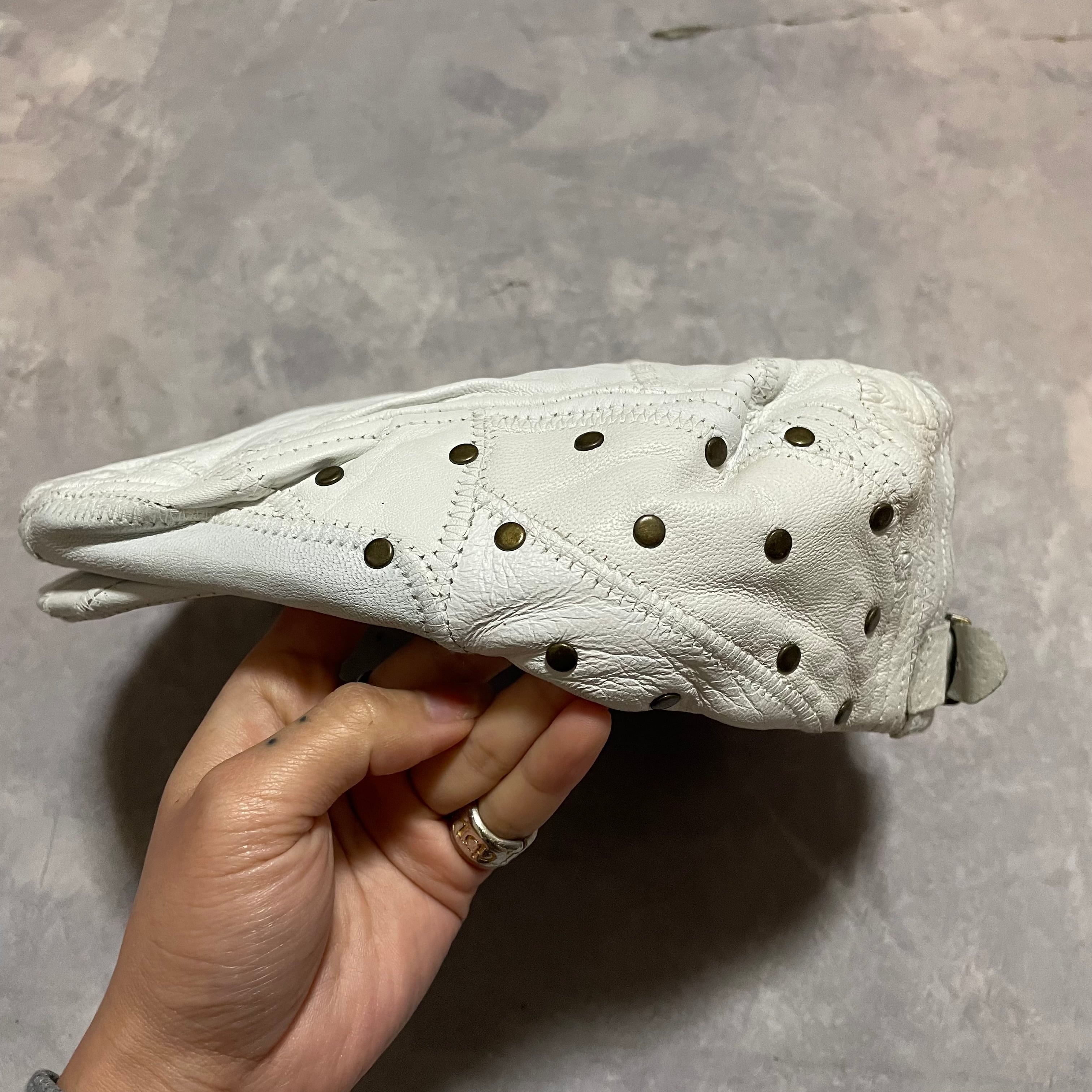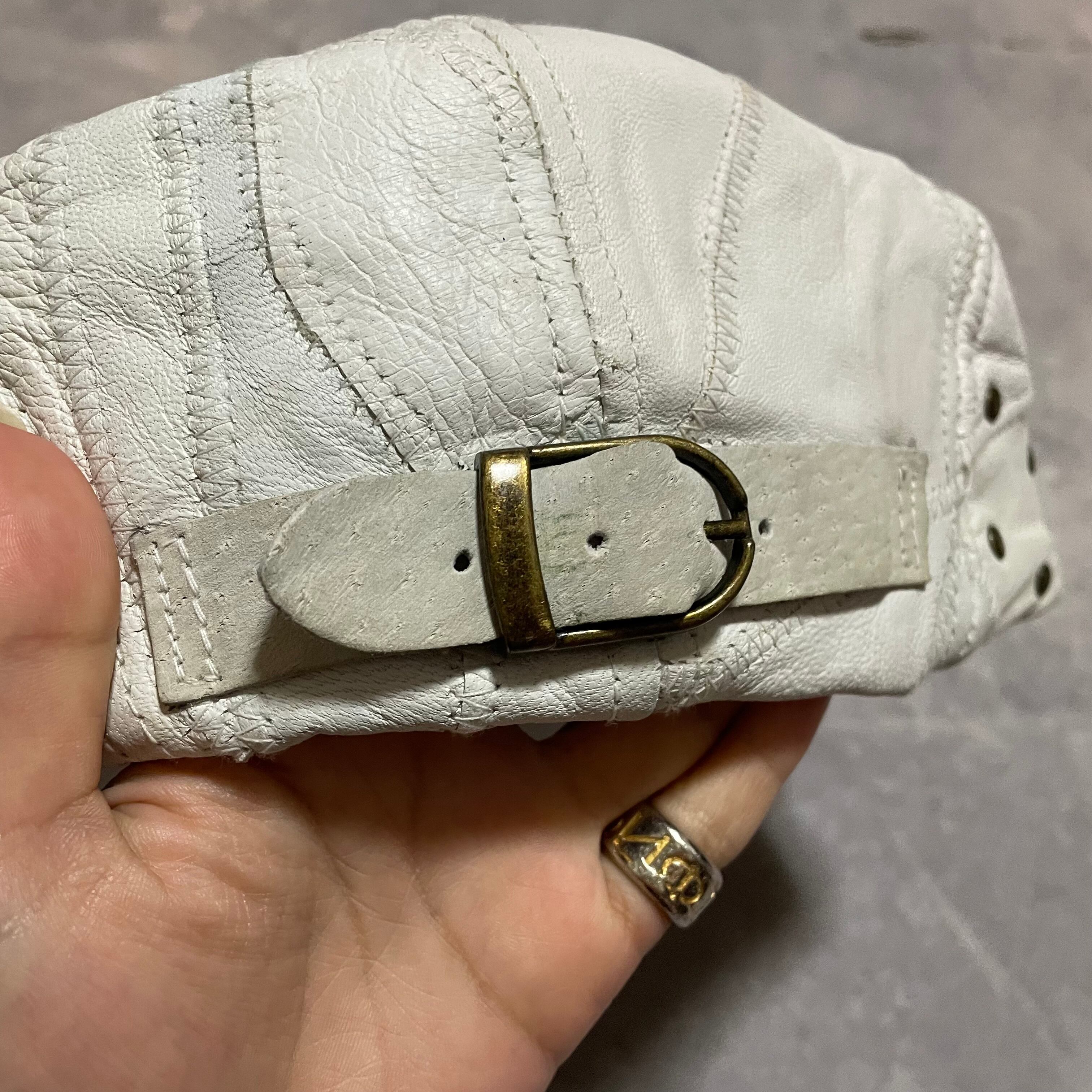 ホワイトレザーにgoldのスタッズのデザインがonly oneなハンチング