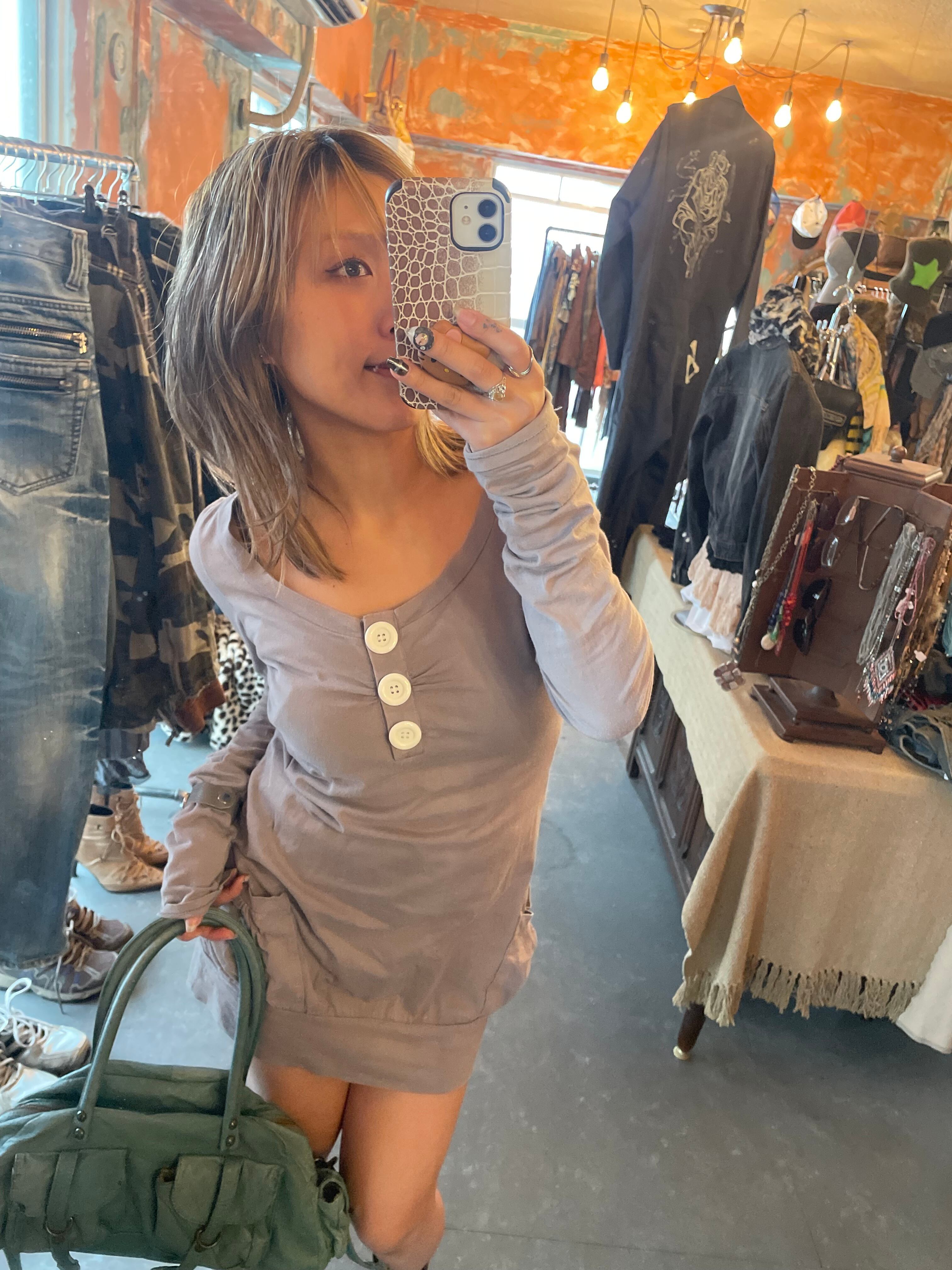 大きめのボタンがアクセントになったTシャツミニワンピ