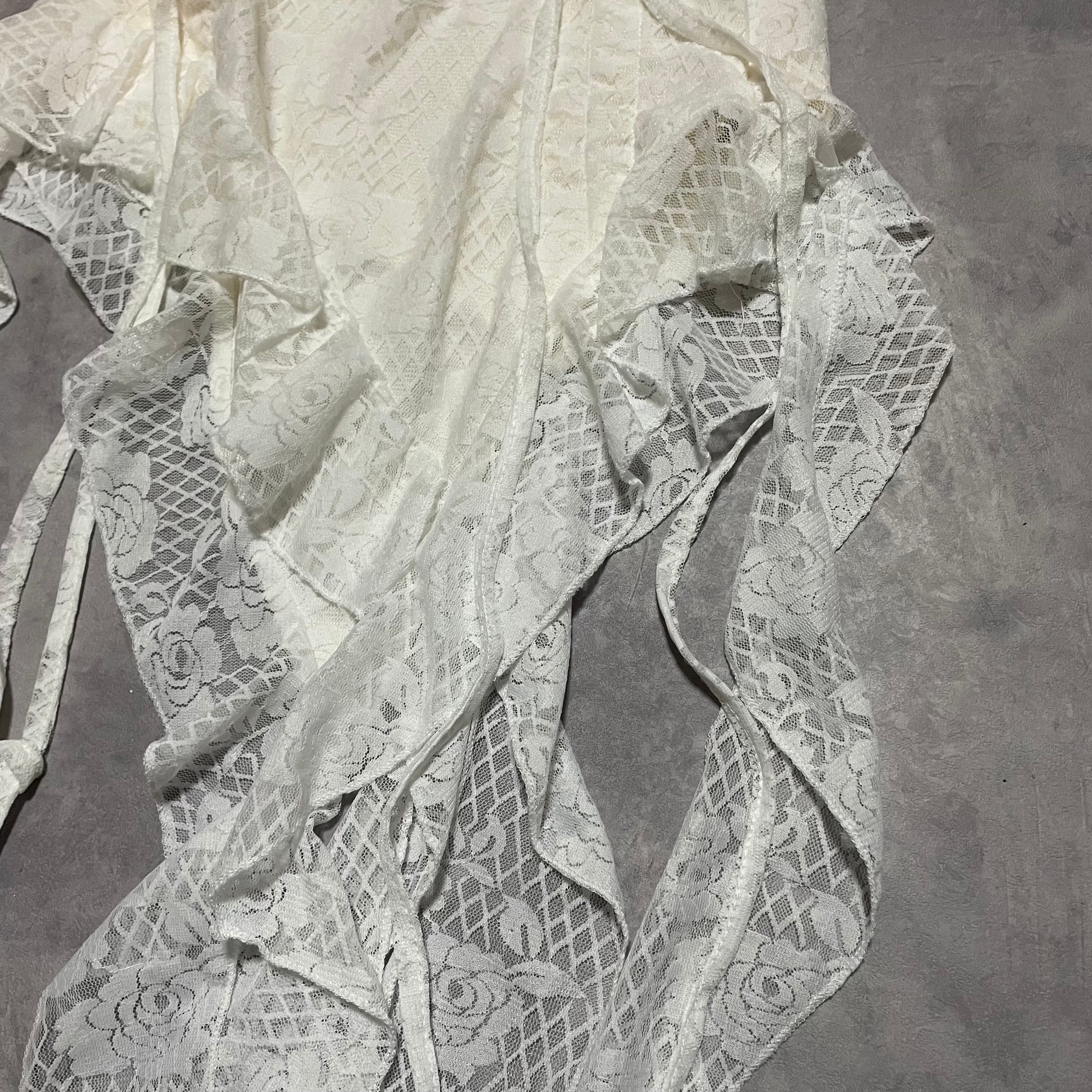 asymmetryに垂れるレースのデザインがcoolなチューブトップ