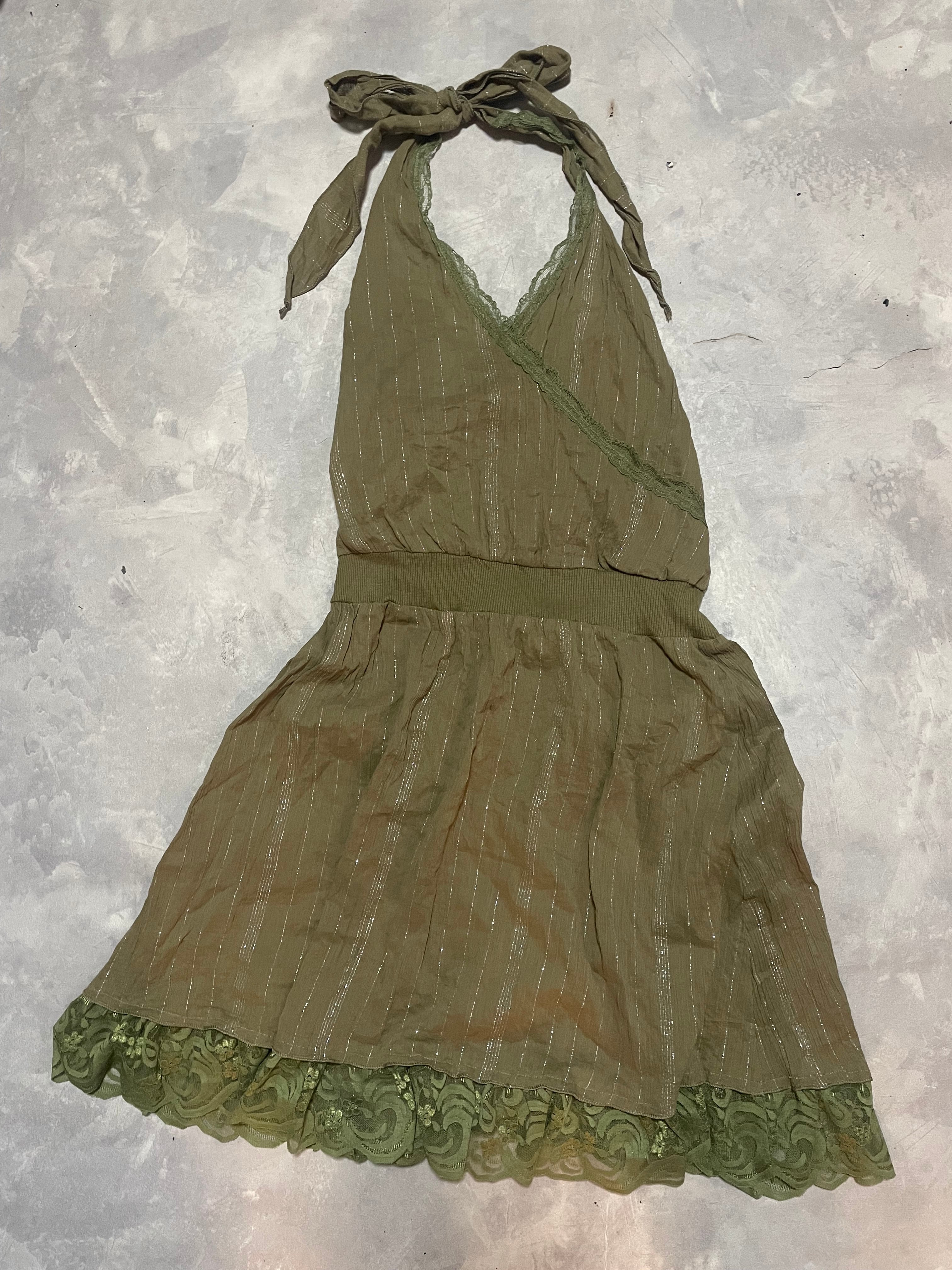 khakiのカラーがcuteなホルターネックワンピース
