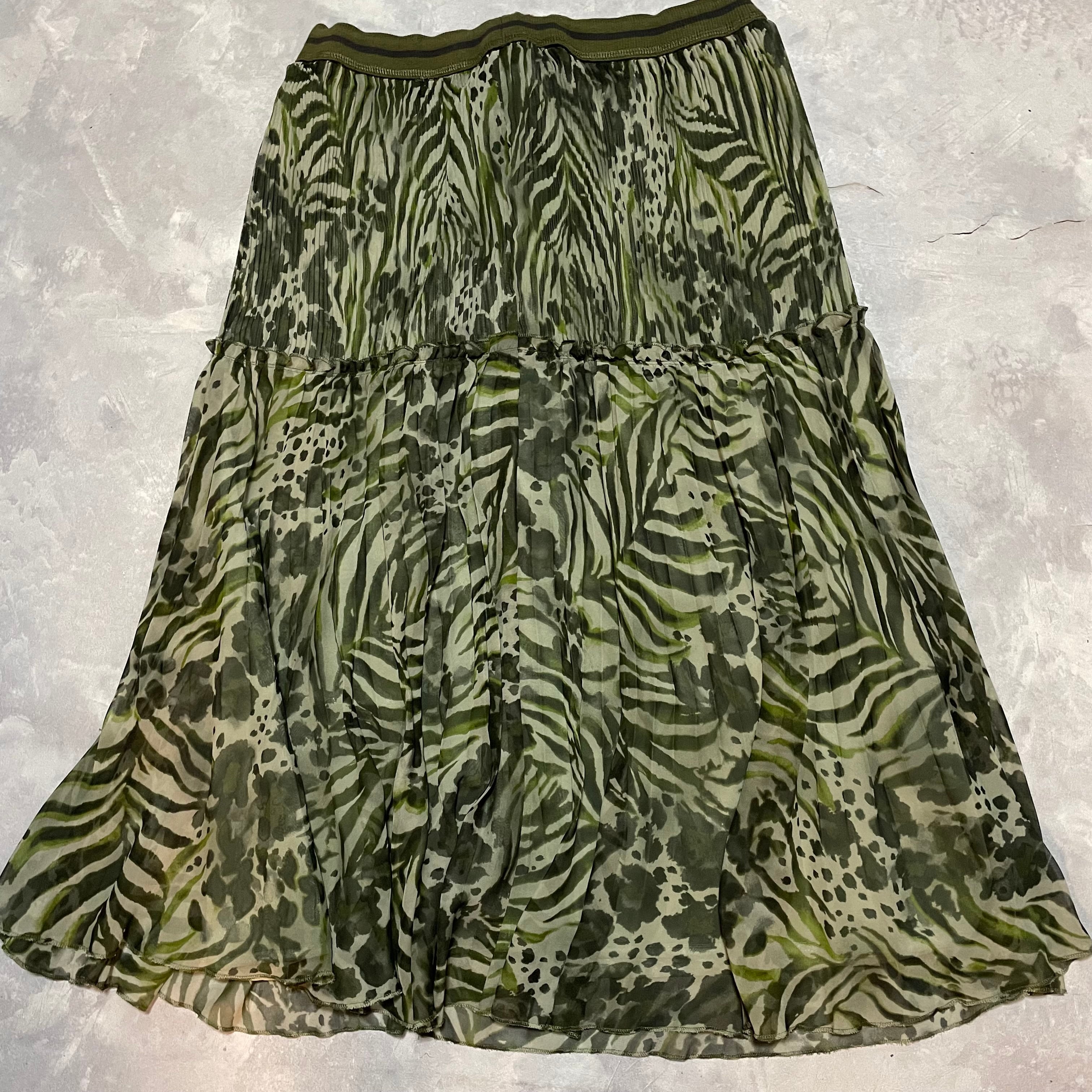 アニマル柄のようなボタニカル柄のようなニュアンスのシフォンスカート
