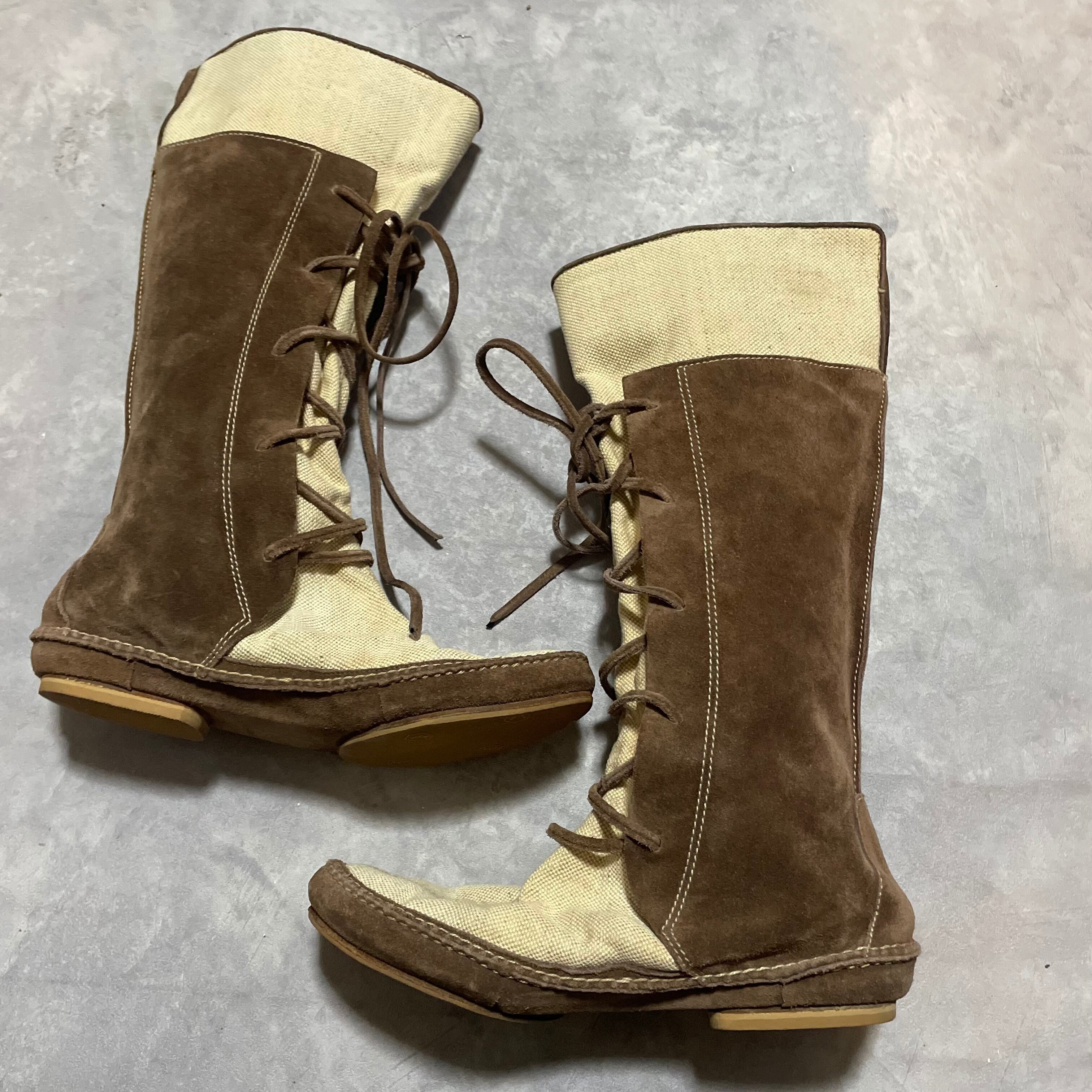 マルニからスエードとキャンバス素材を活かしたlong boots