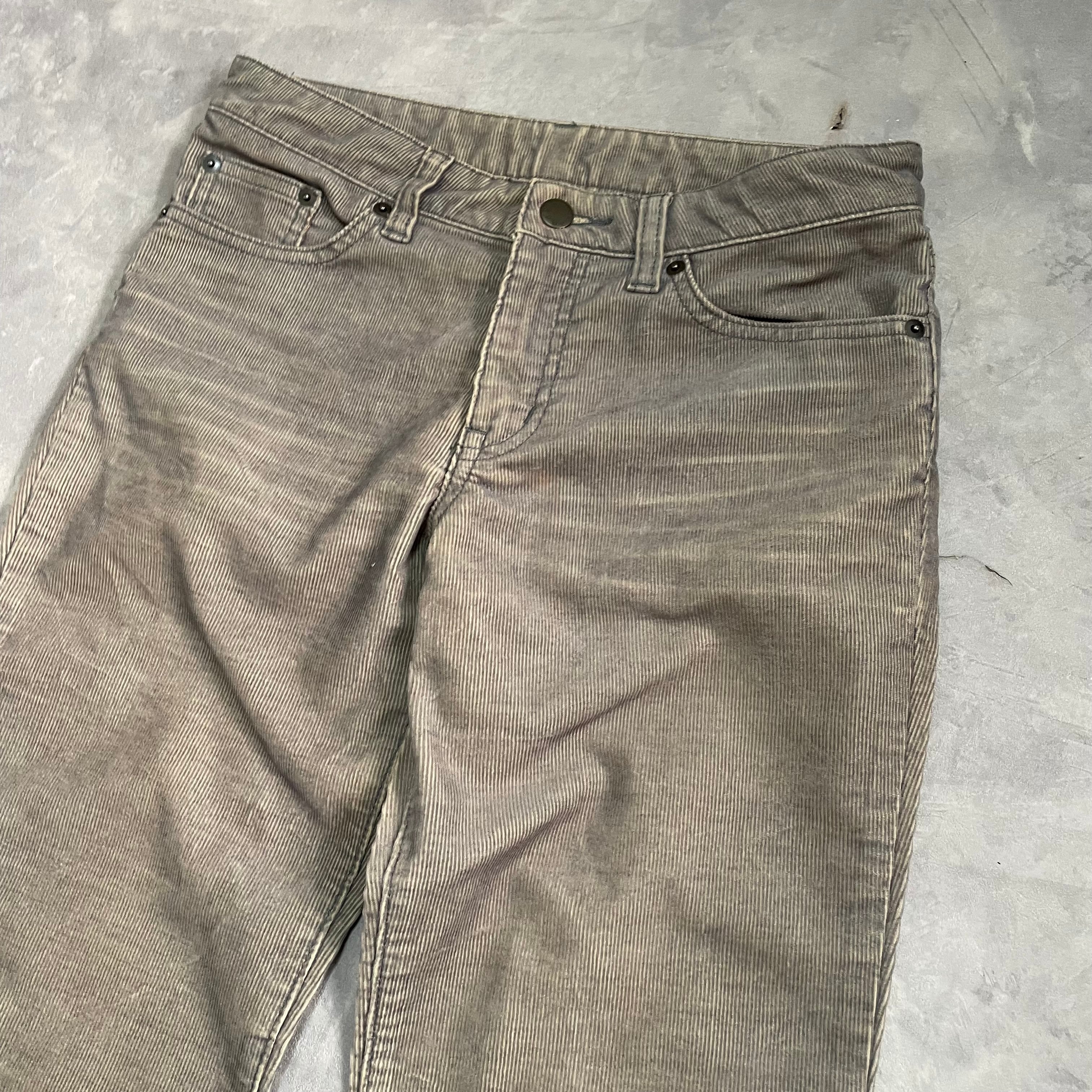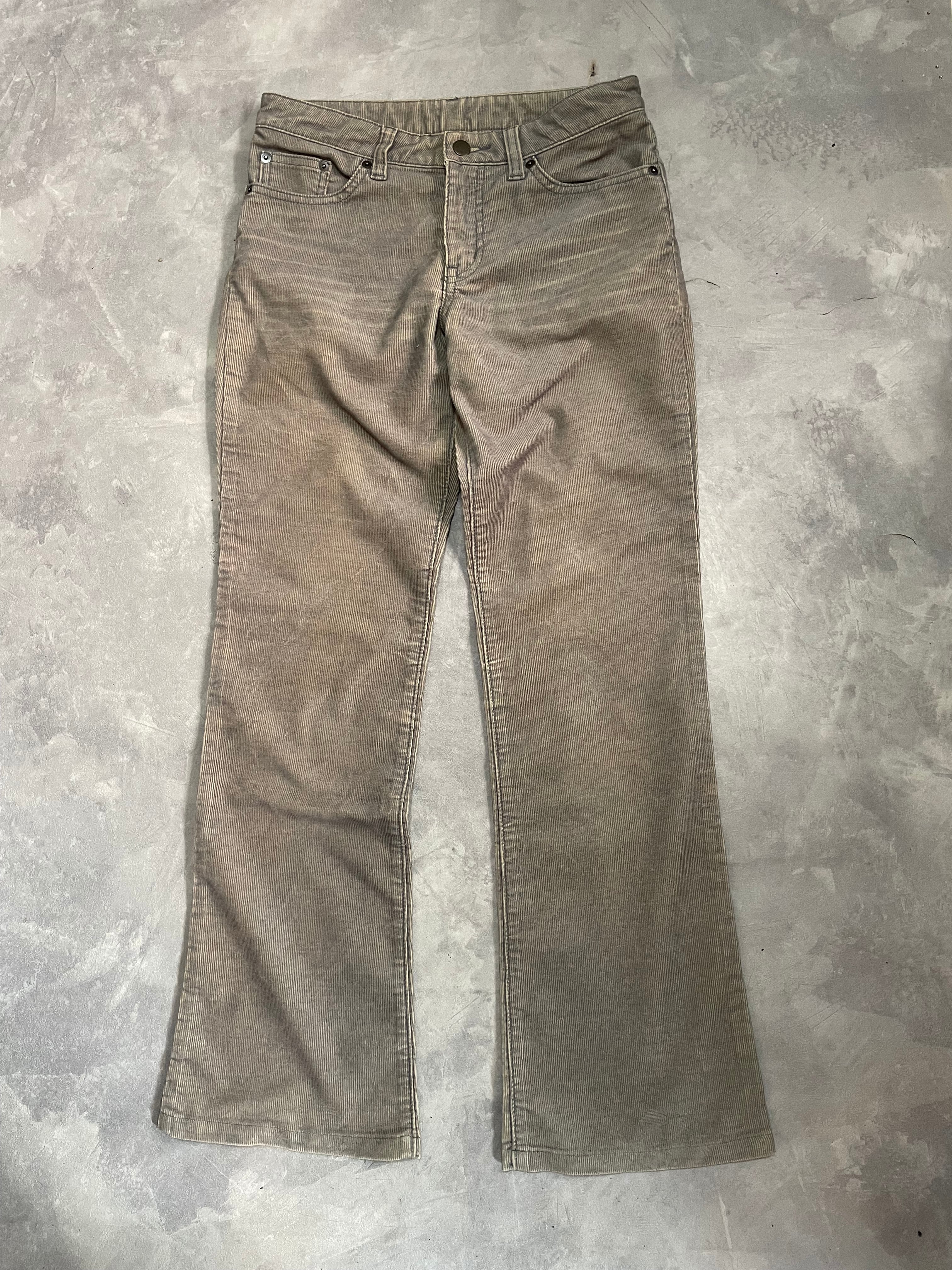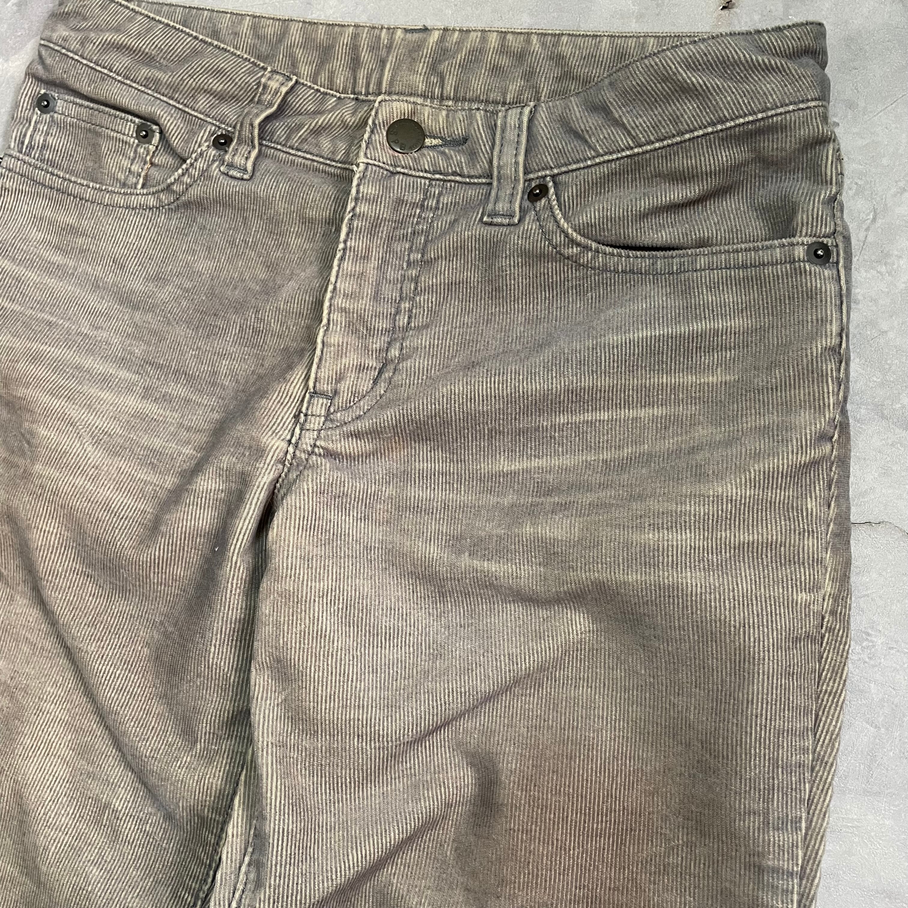 パープルみのあるgrayのようなニュアンスカラーが春らしいコーデュロイpants