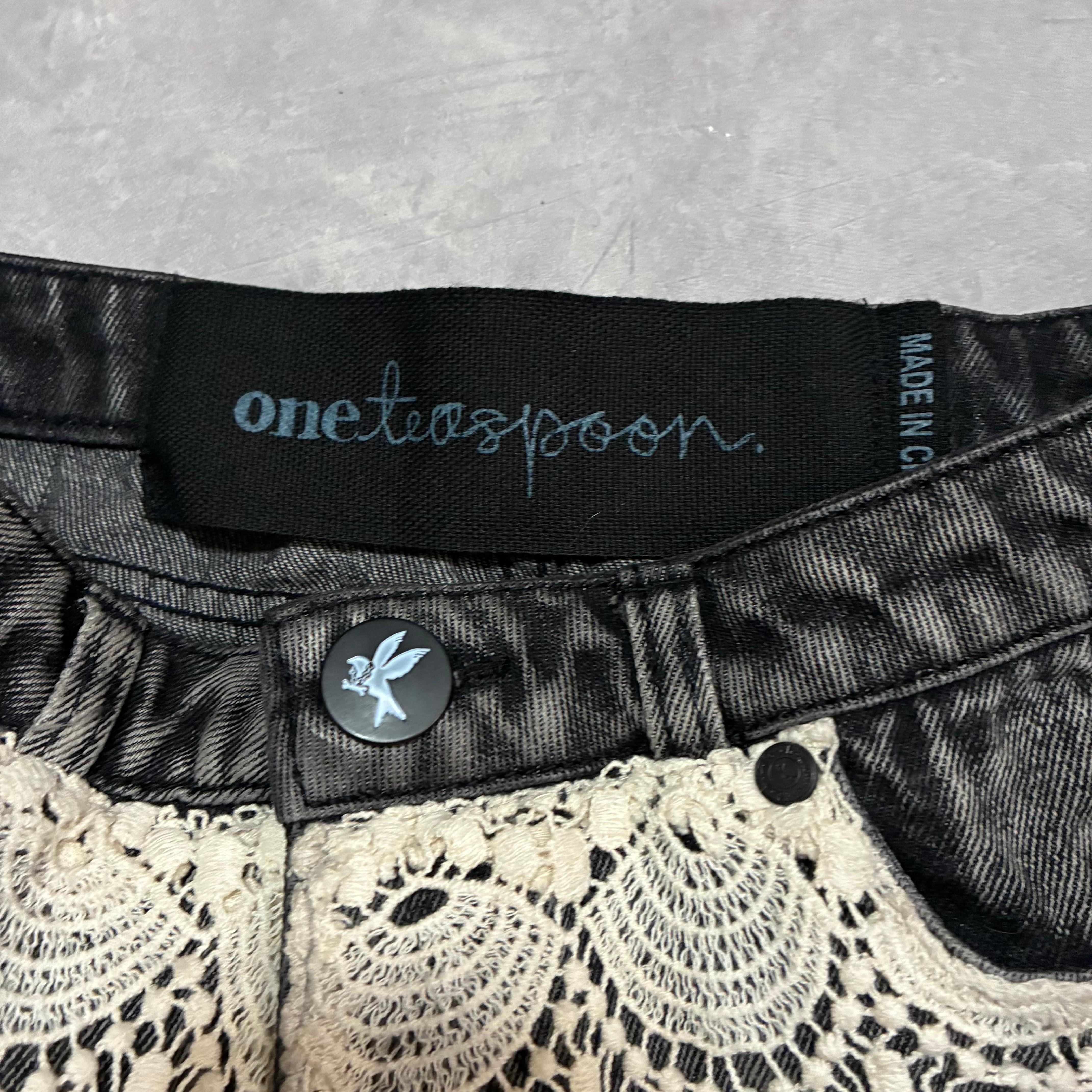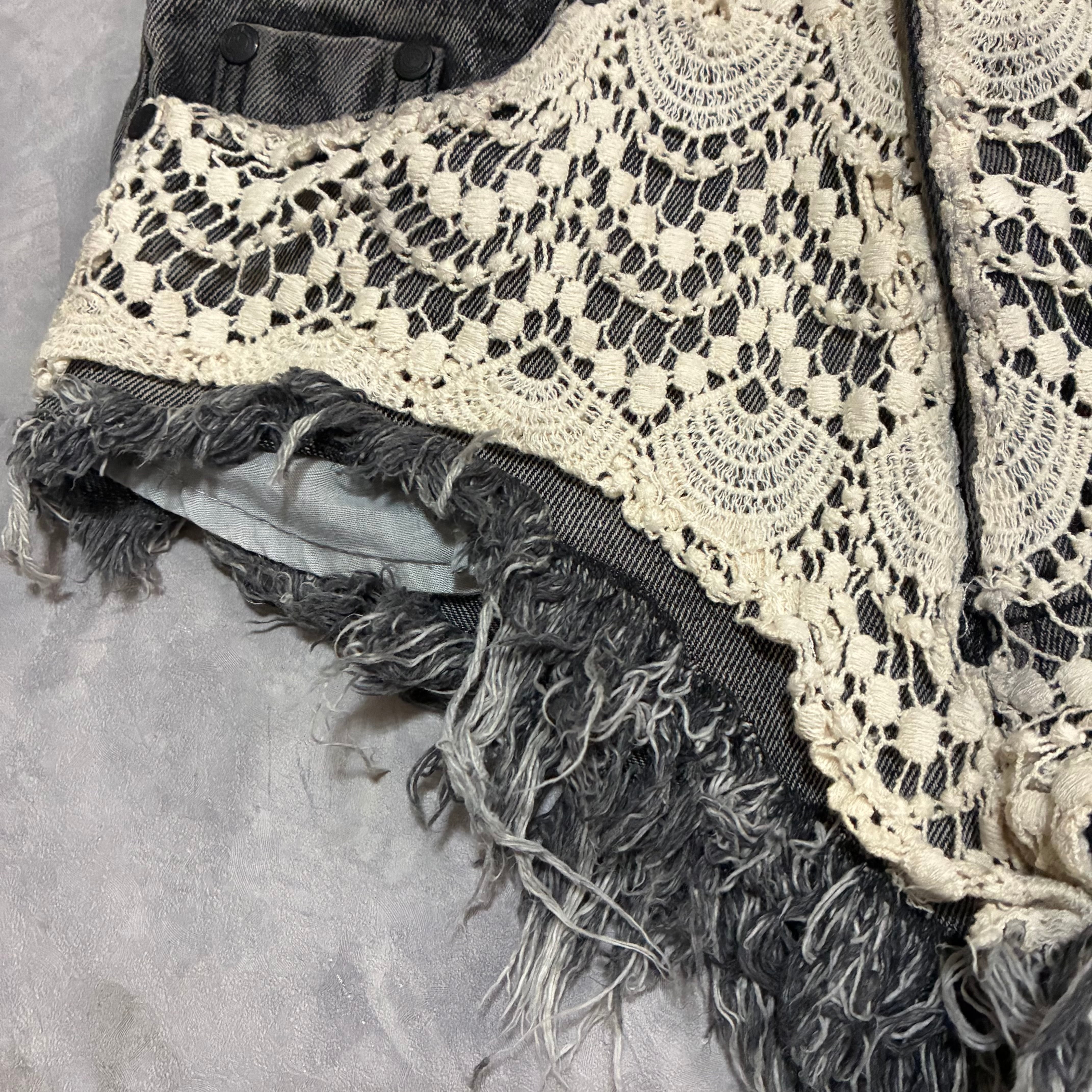 lace & denim short pants