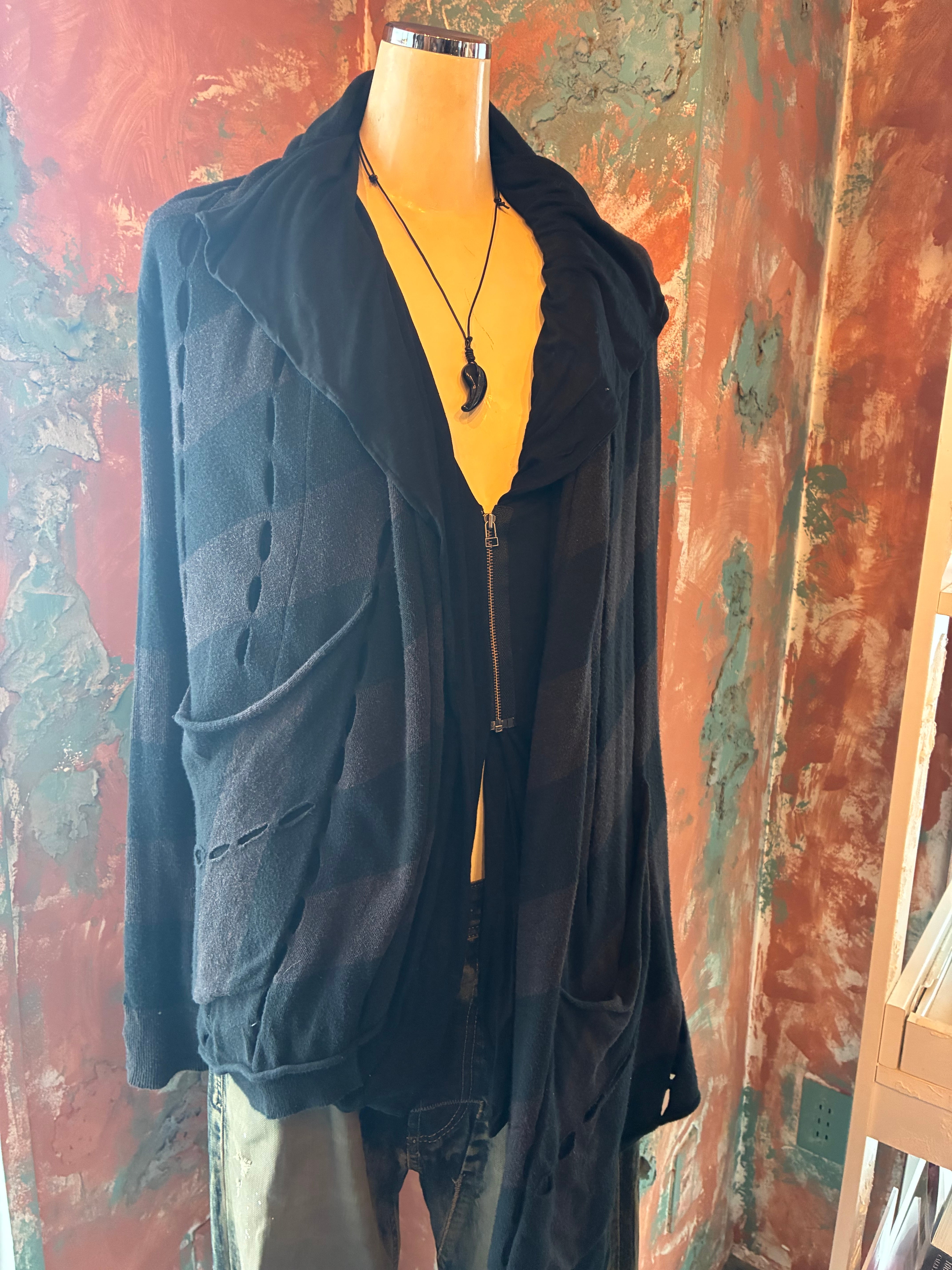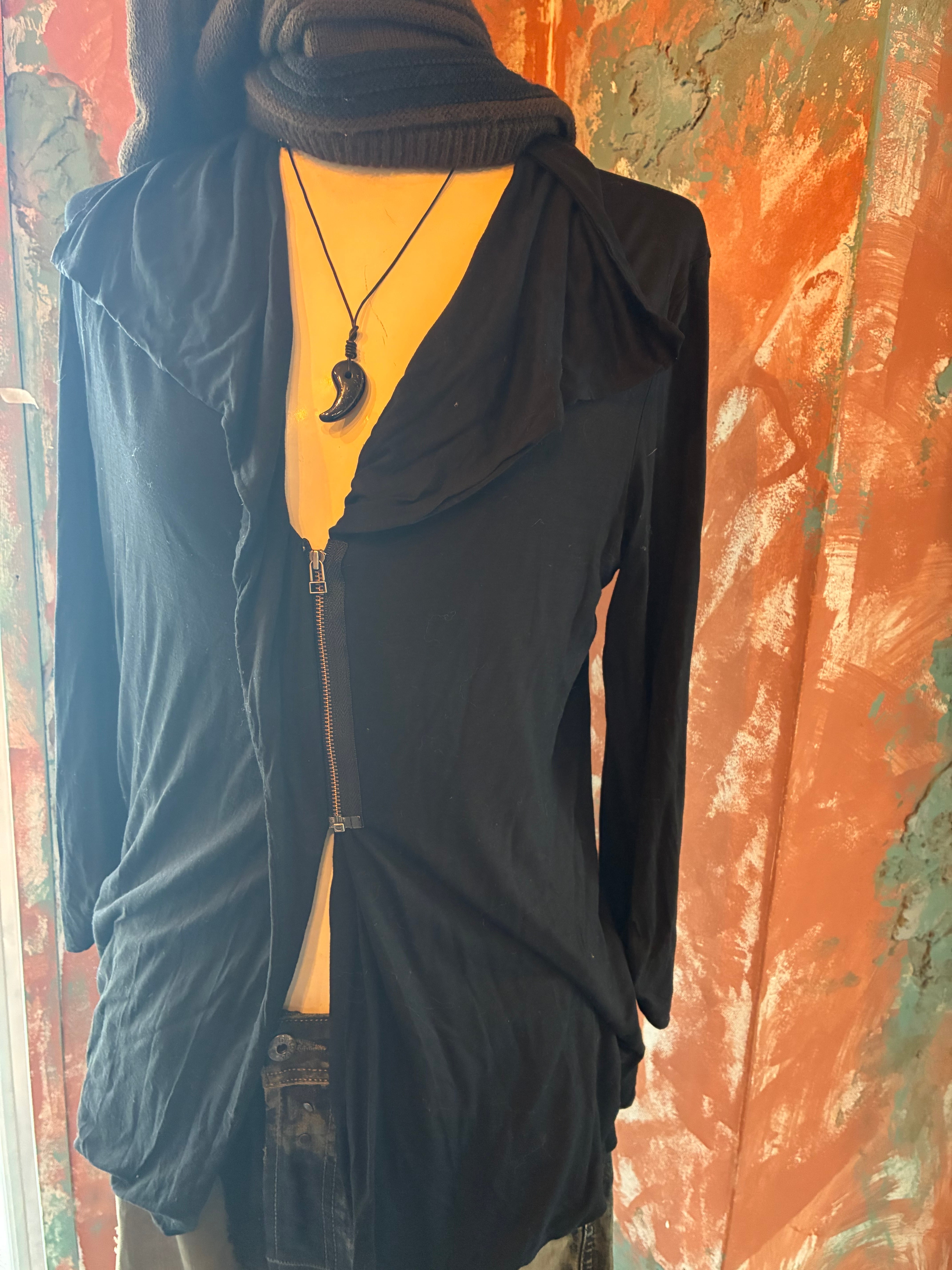 ファスナーの異素材がアクセントに、一枚でもインナーとしても活躍するアイテム