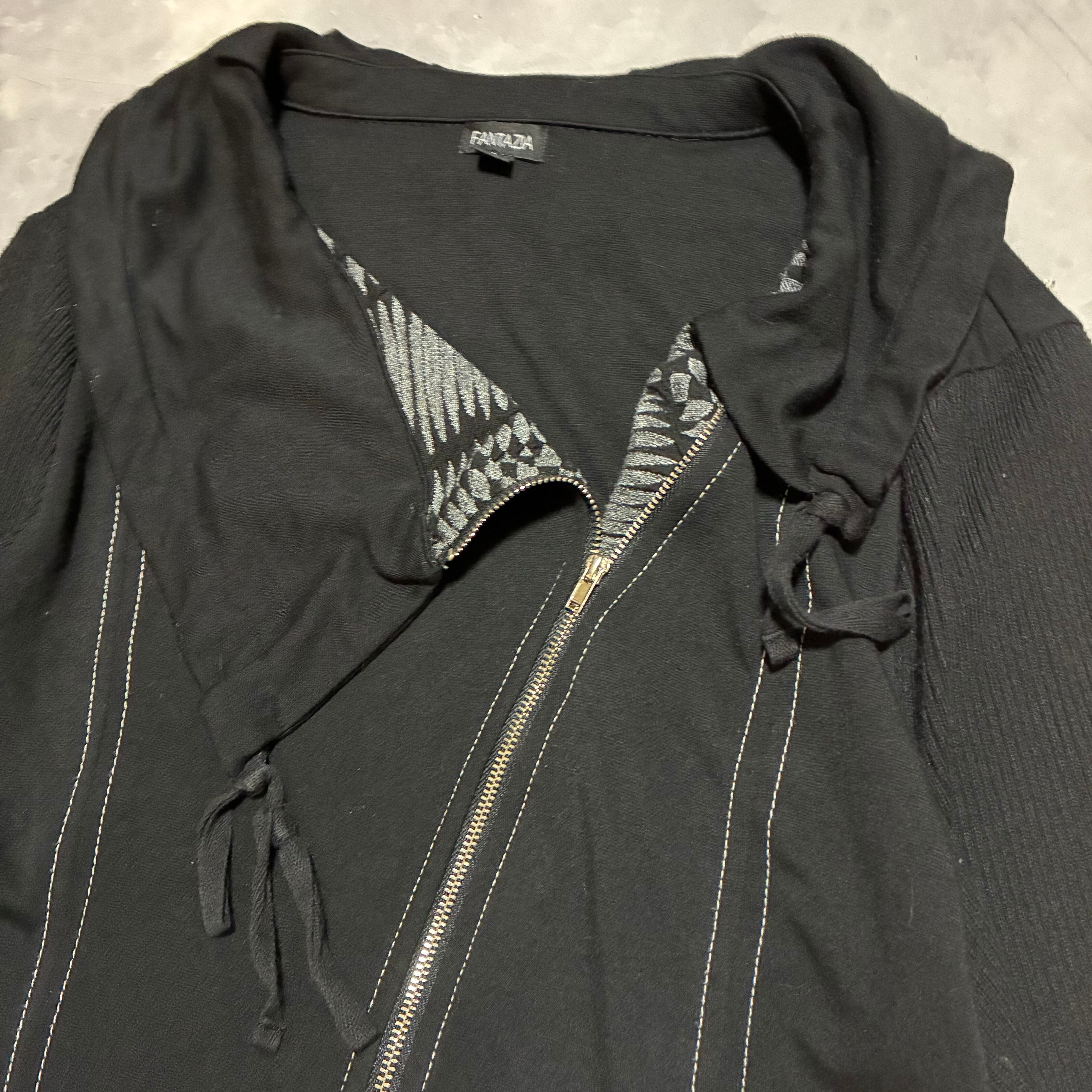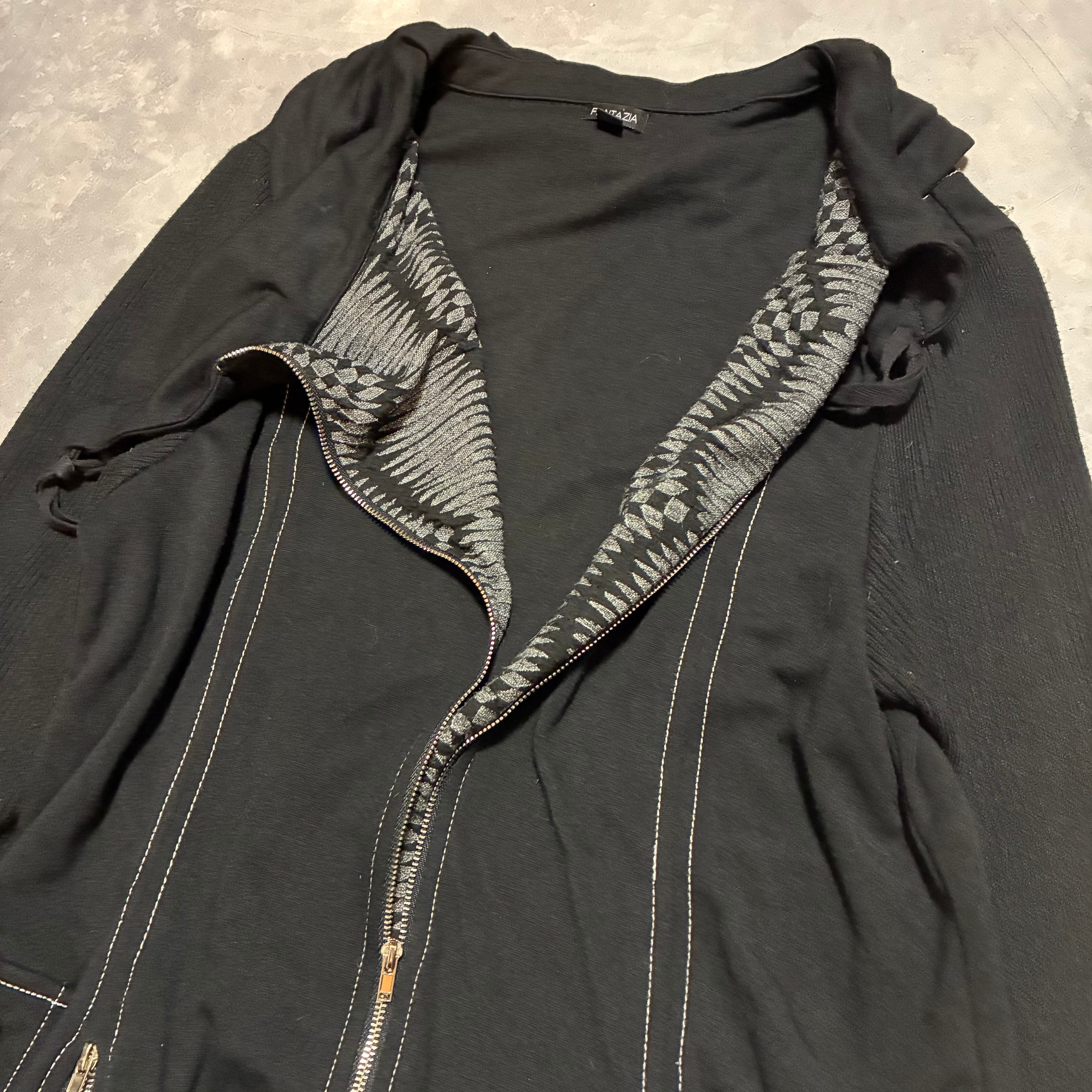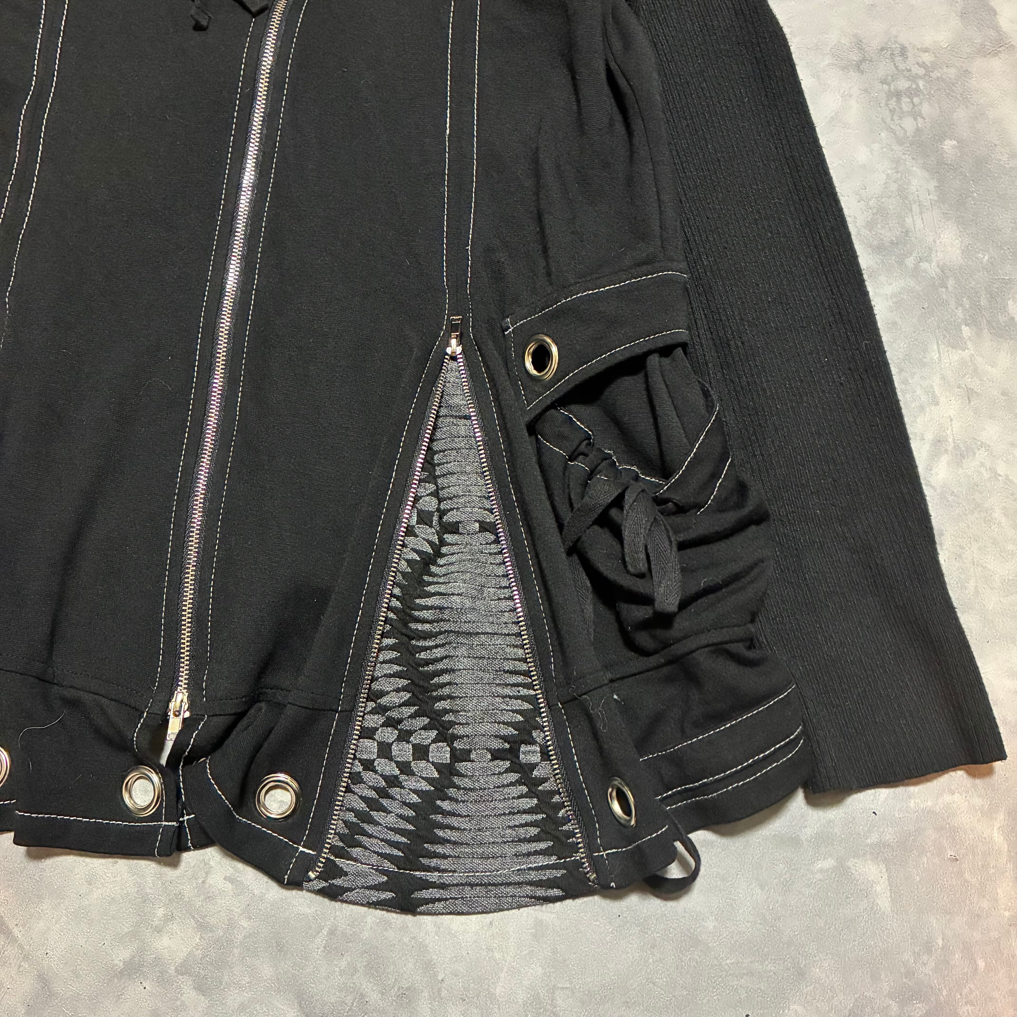 zip up のギミックに、eyeletデザインがパンクな雰囲気のスウェットアウター