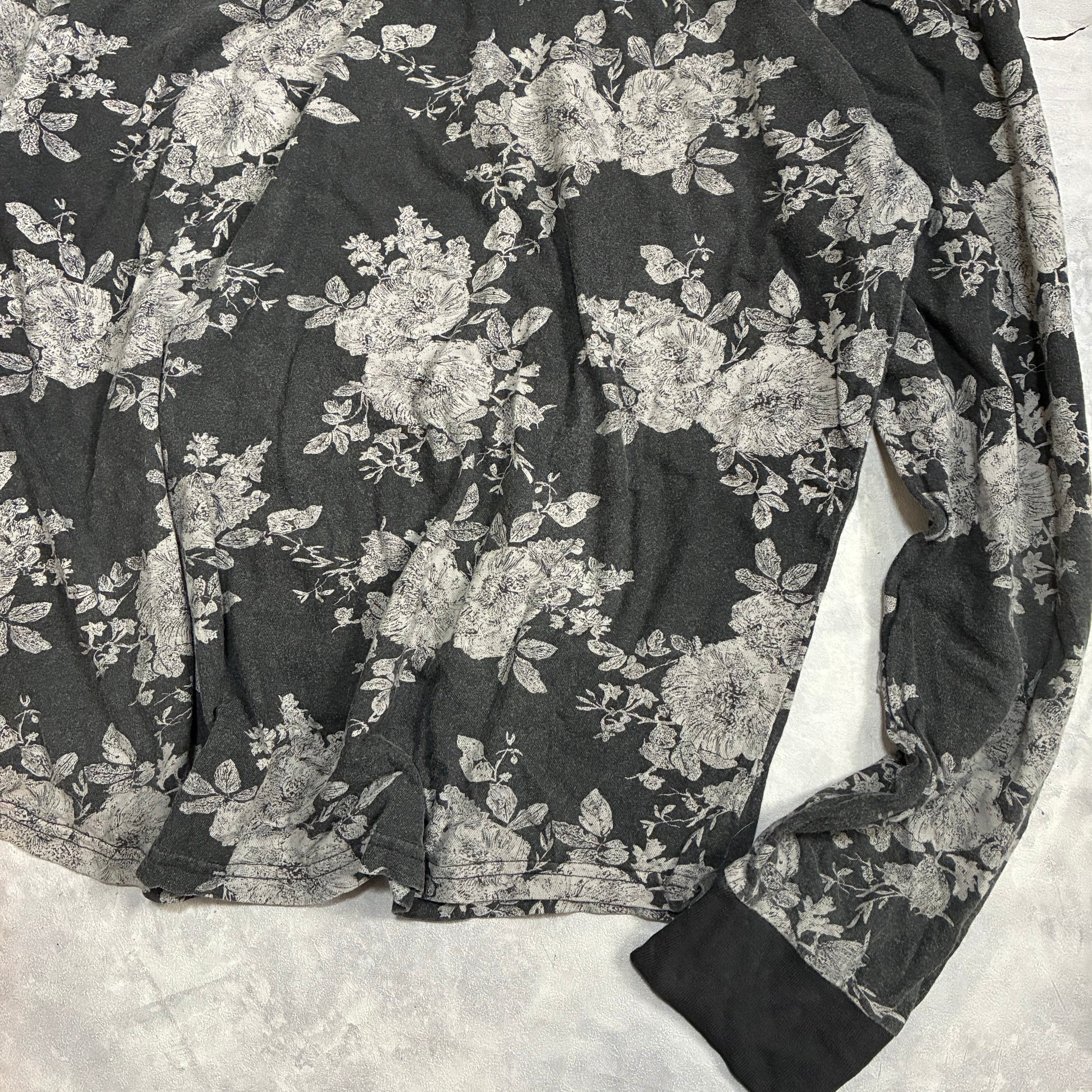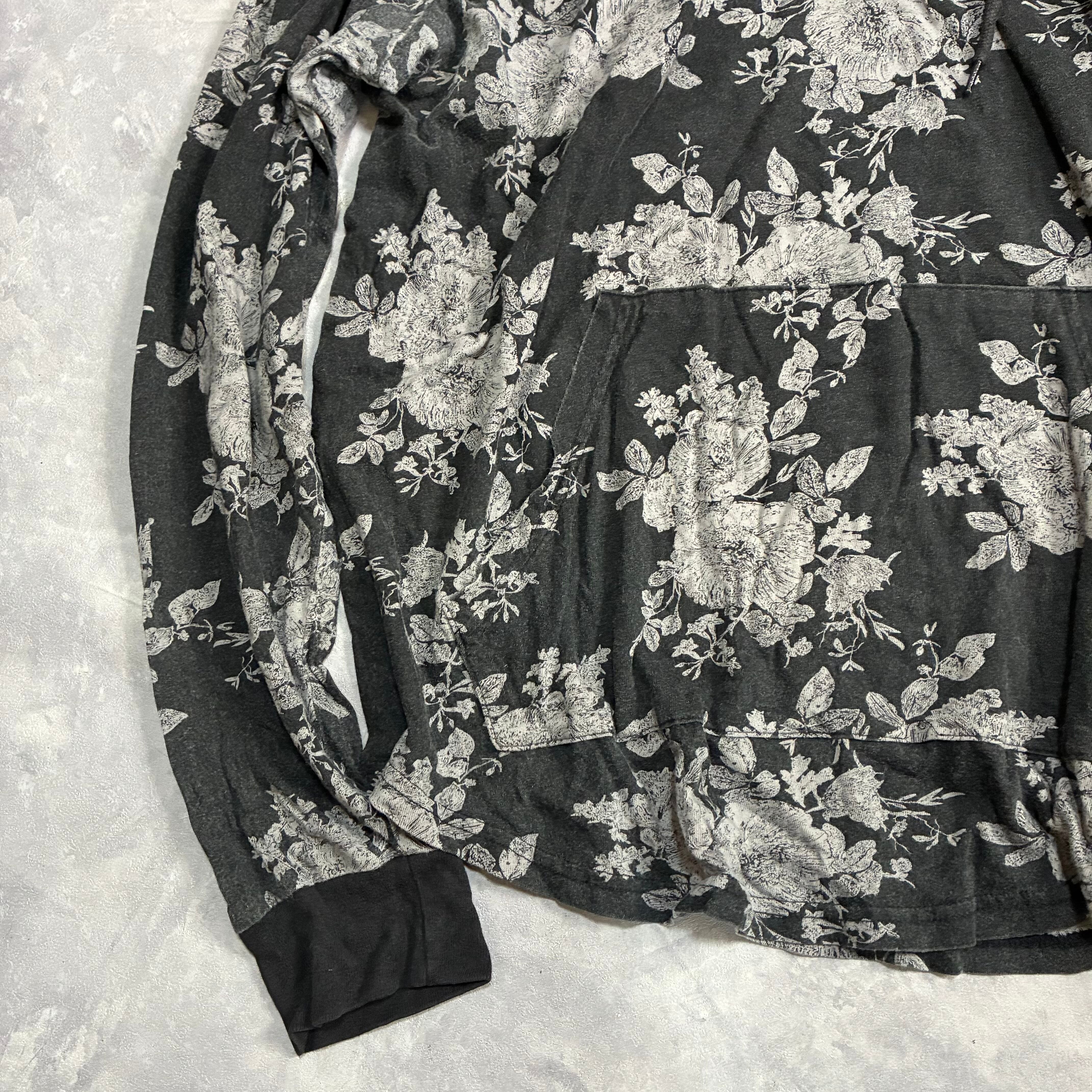 カジュアルなフーディのデザインとは裏腹に繊細な花柄がcoolな一枚
