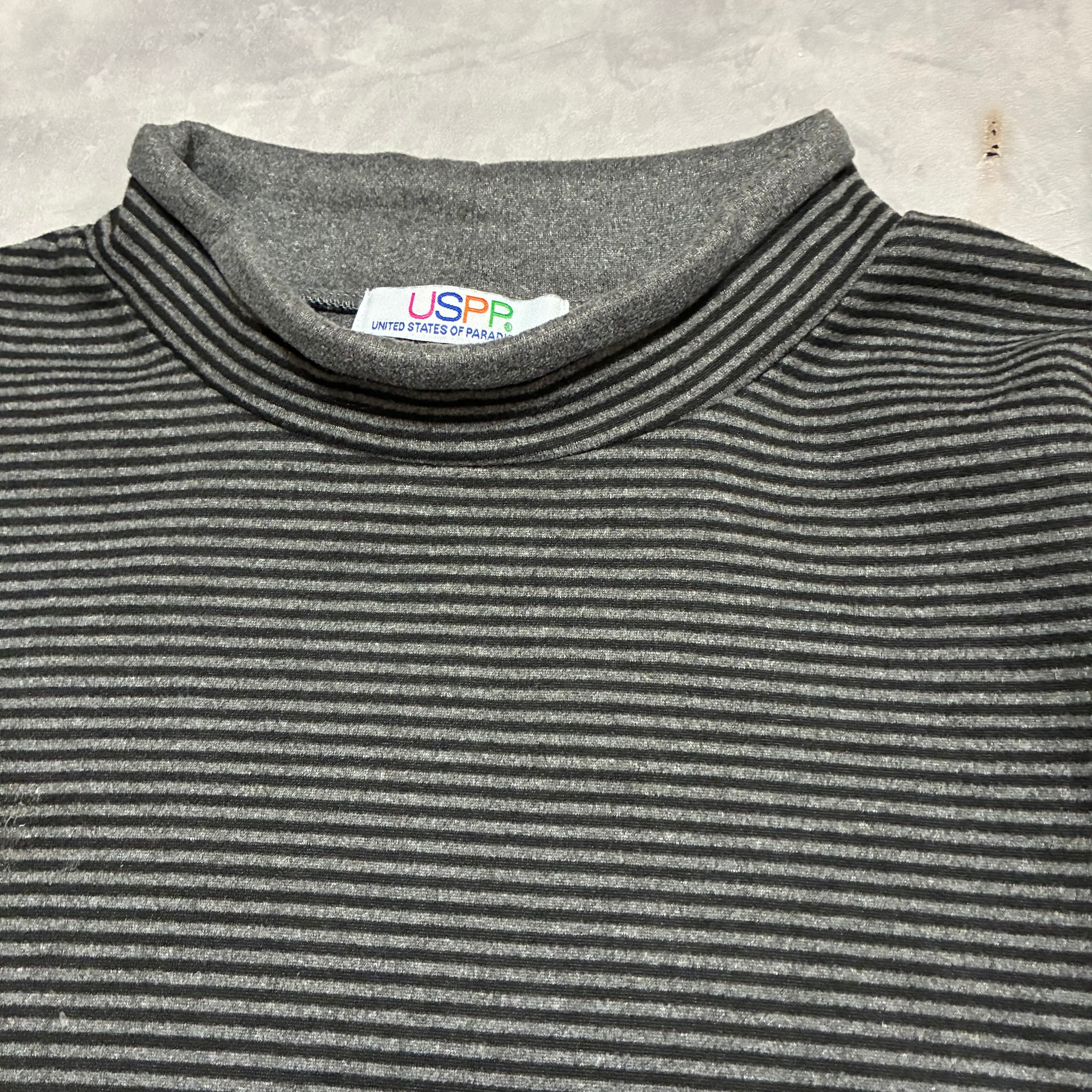 シックなborder柄のハイネックトップス