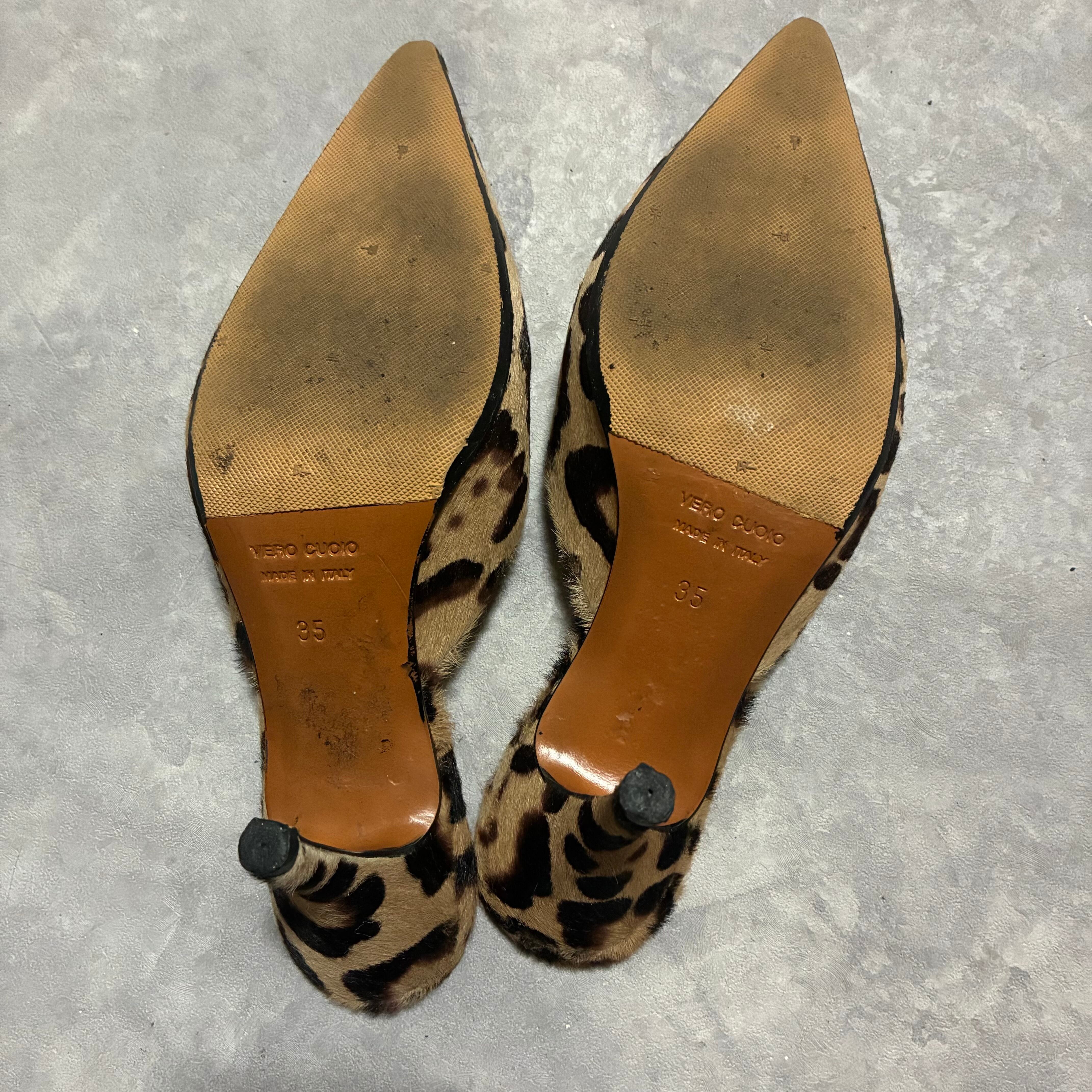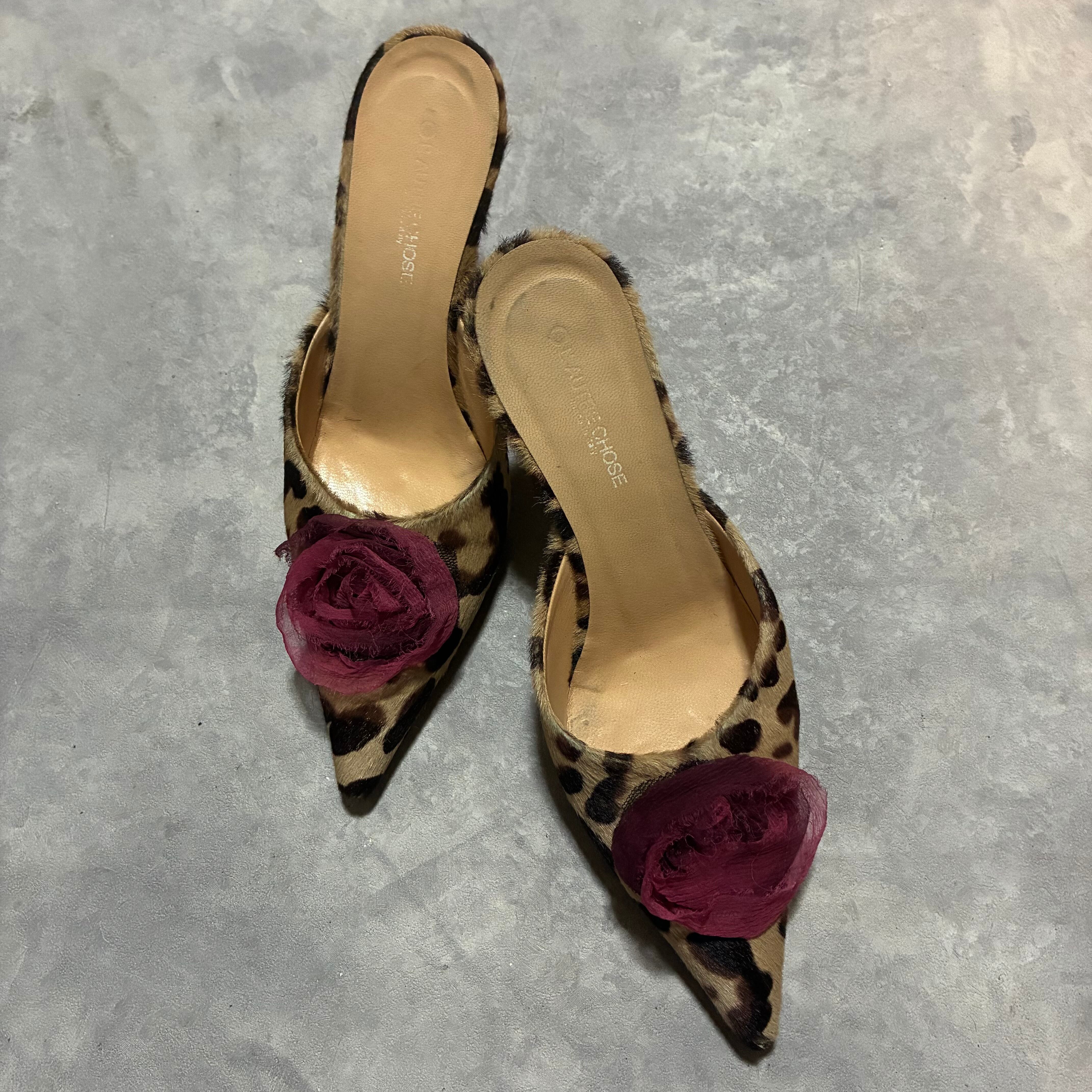 レオパード柄のハラコ素材にヴィンテージ感のあるバラのmotifが cuteなミュール