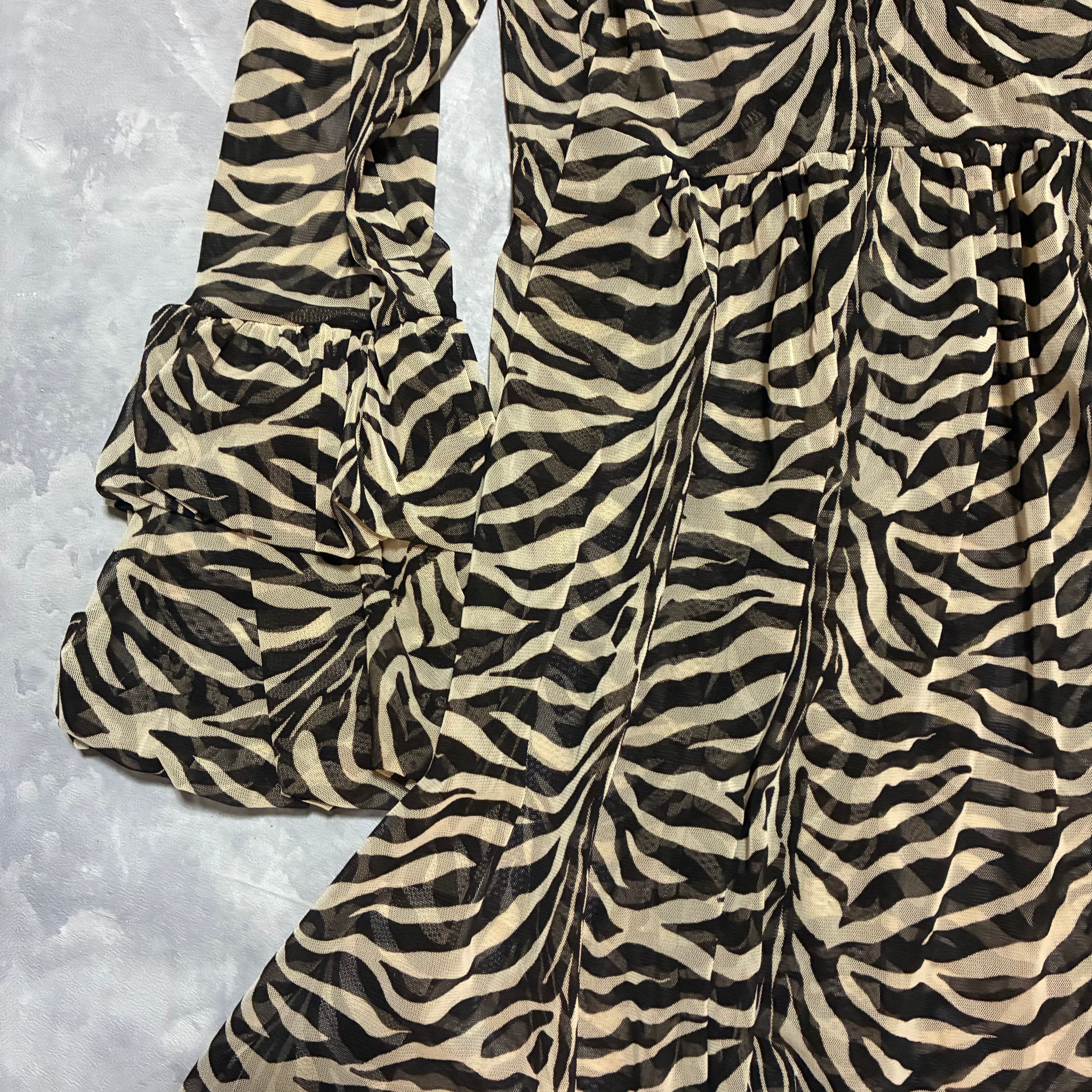 animal pattern puff sleeve one-piece