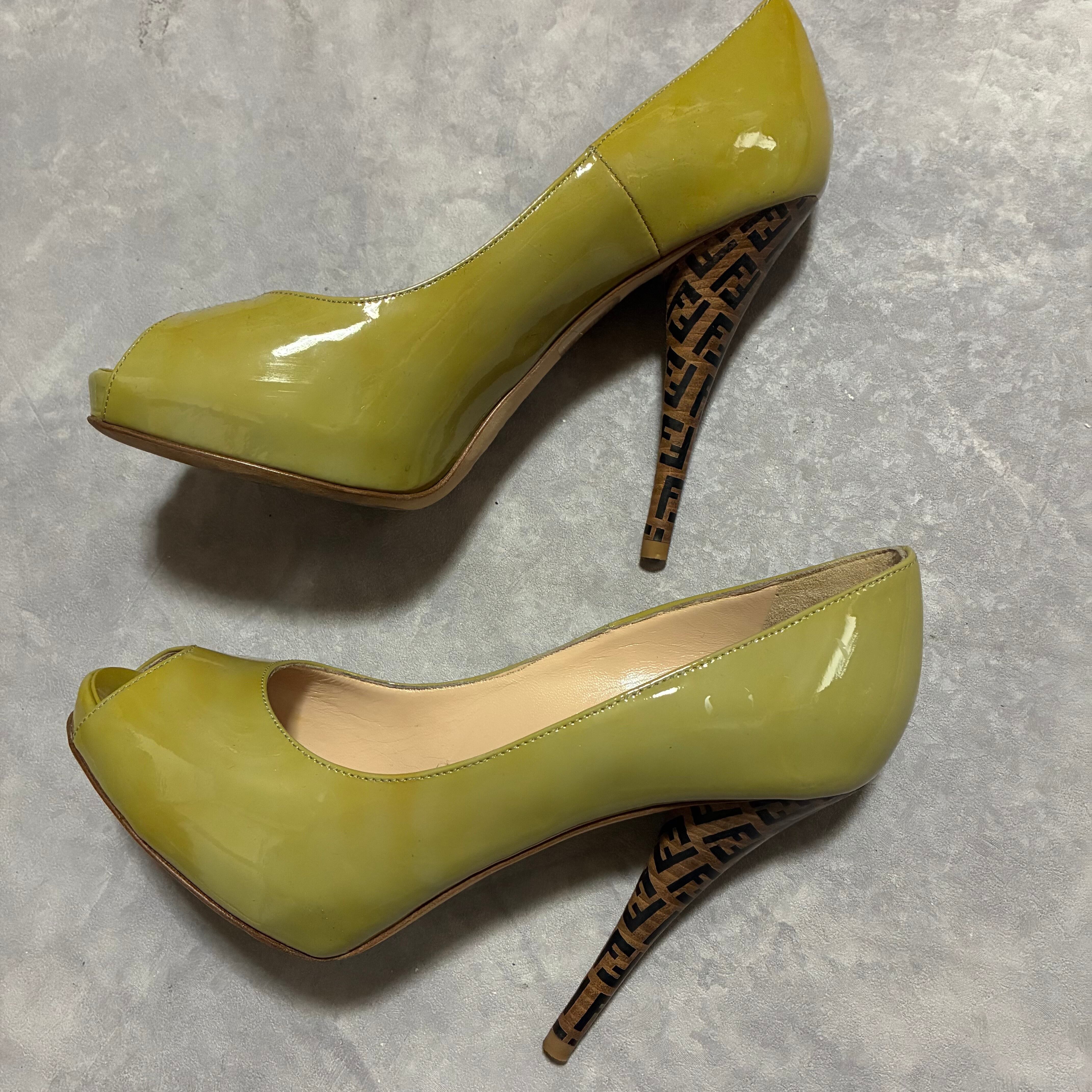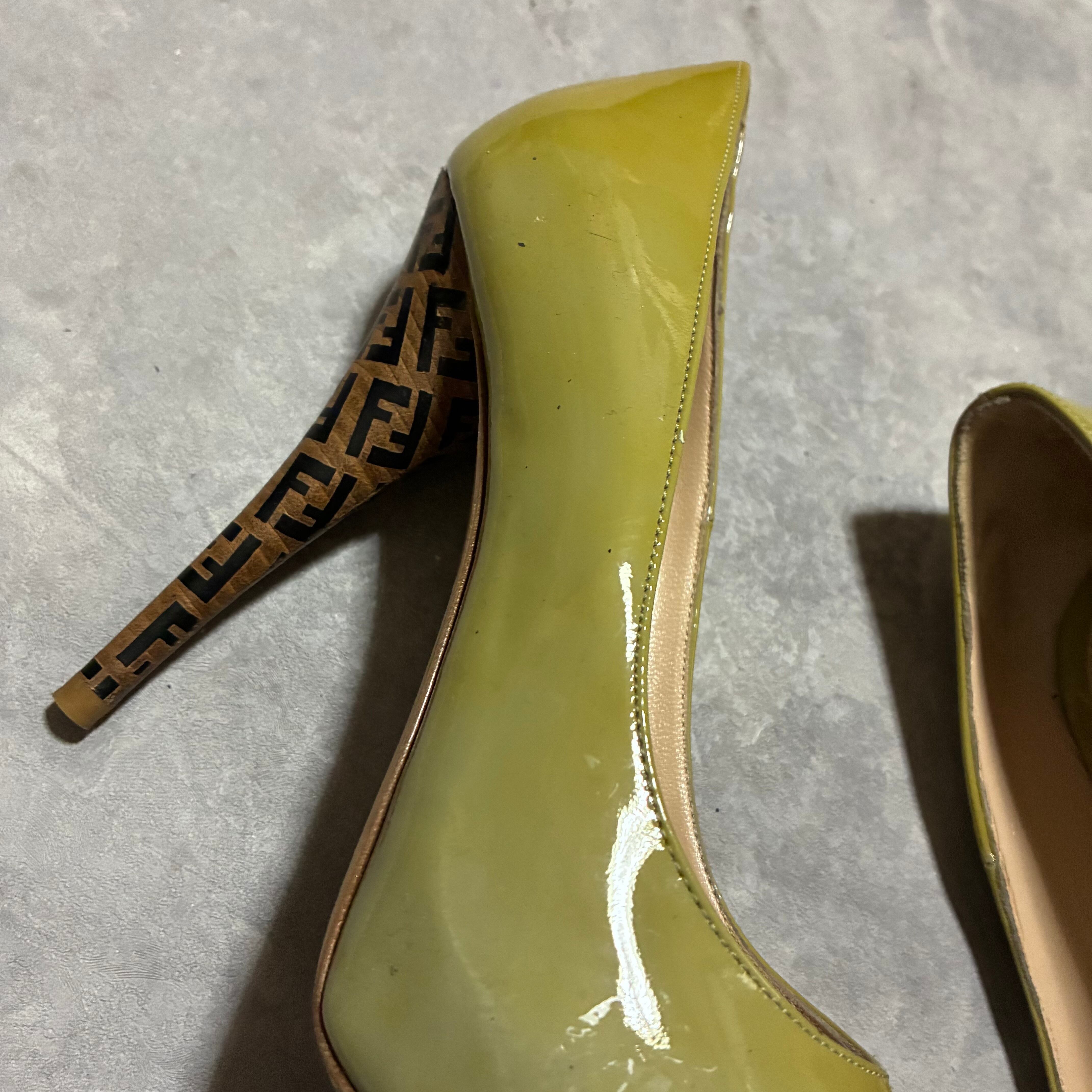 フェンディのemblemデザインのヒールかポイントのパンプス