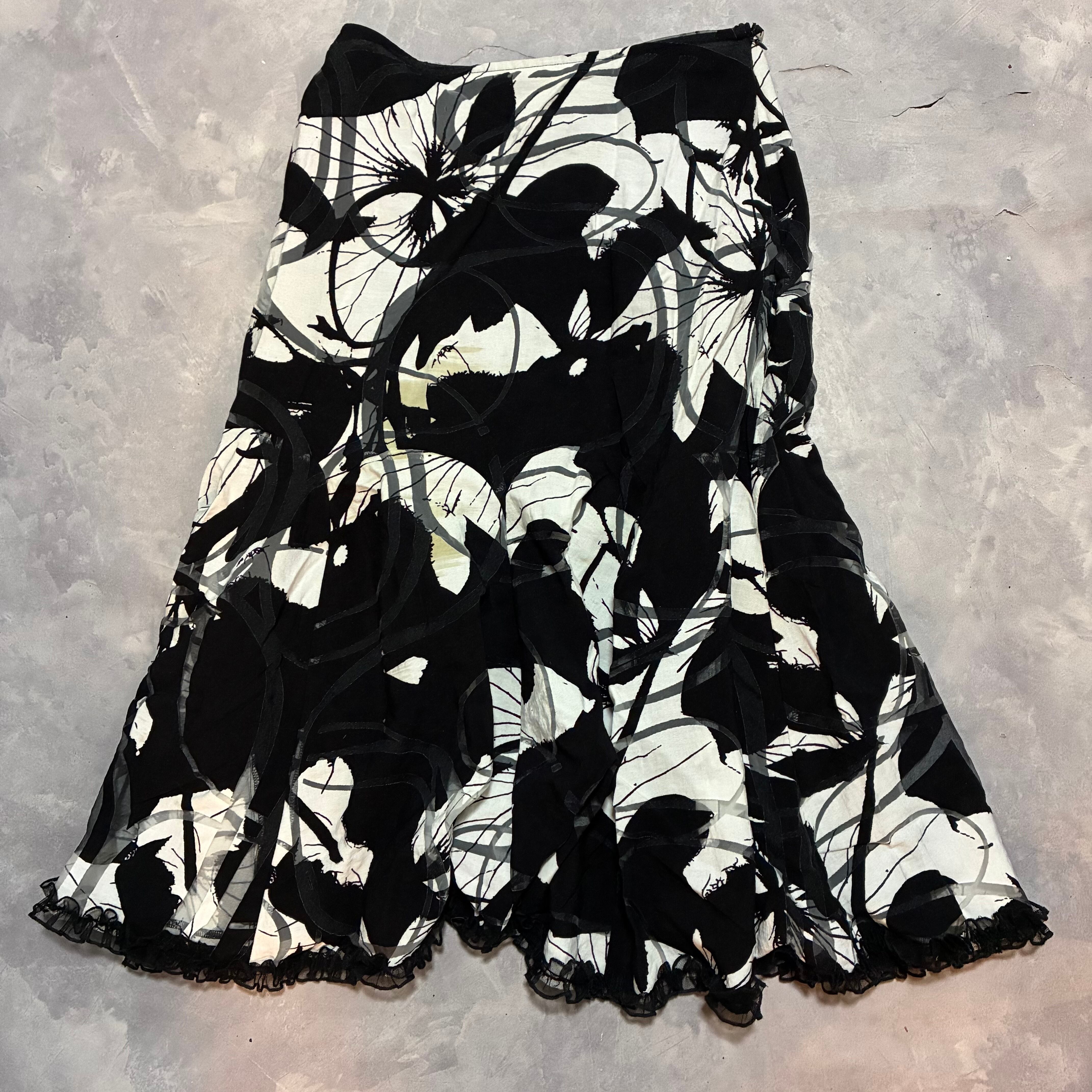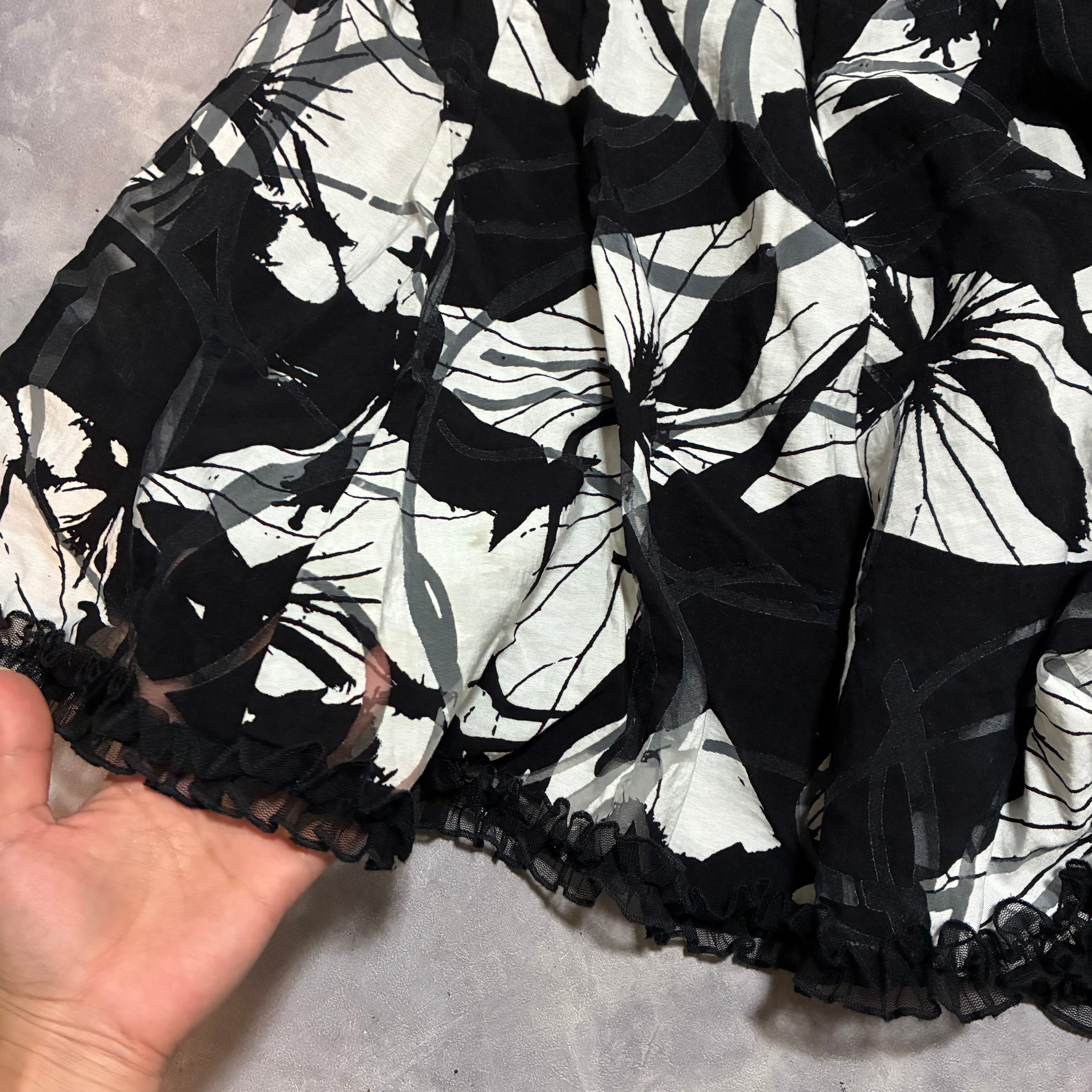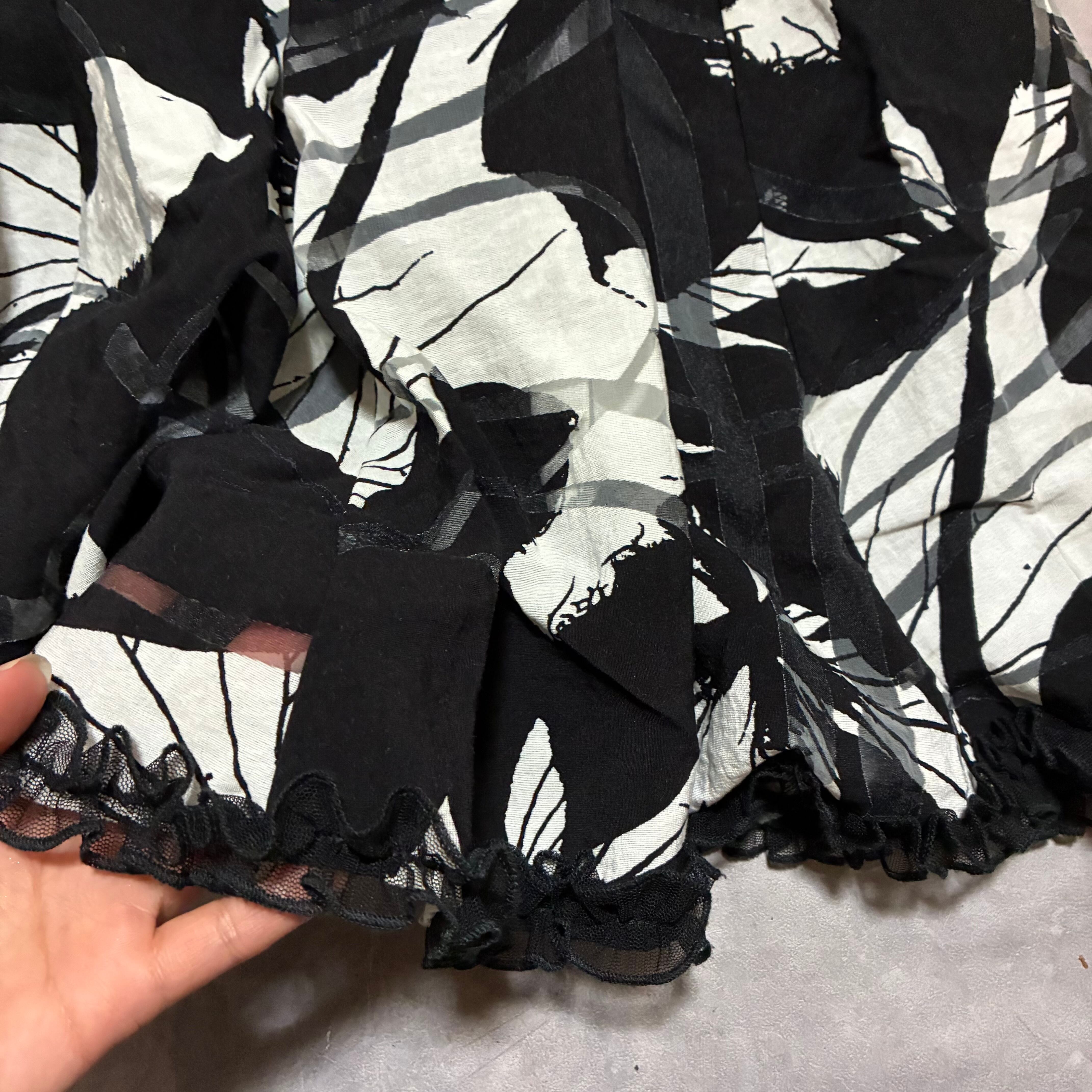 from London,モノクロカラーのartisticな柄に裾のフリルがcute