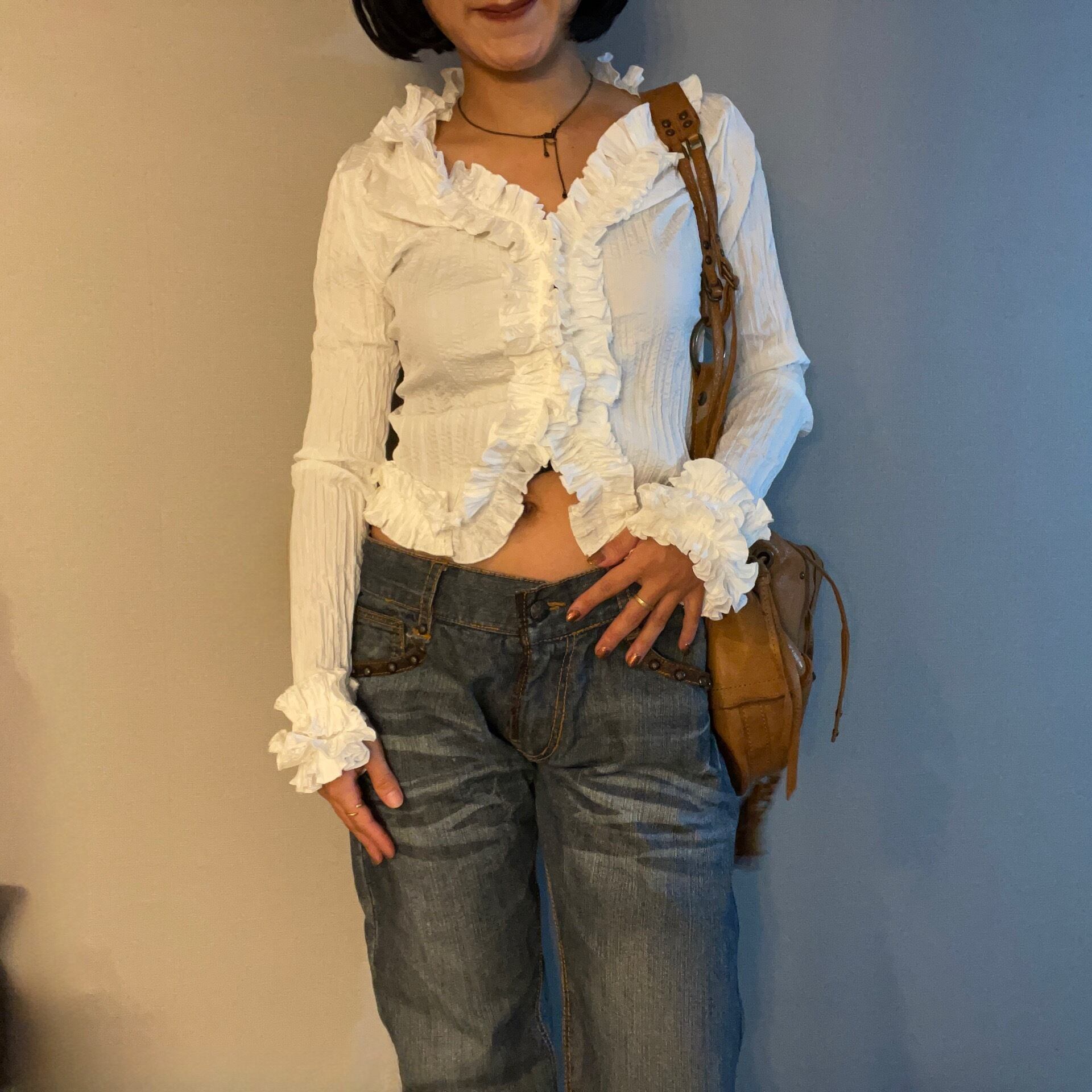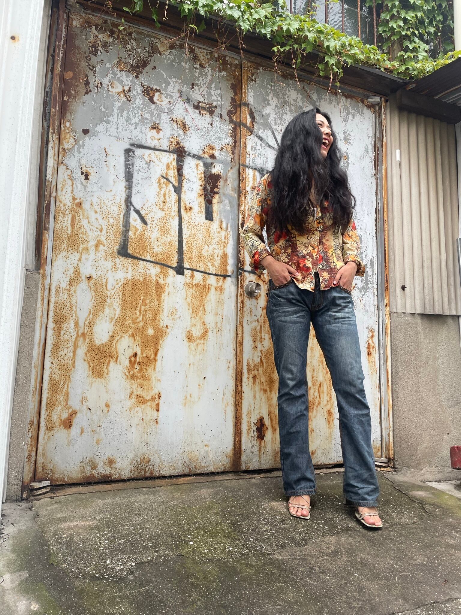 ウエスタンな雰囲気、スタッズとレザーのテキスタイルdesignが効いたジーンズ