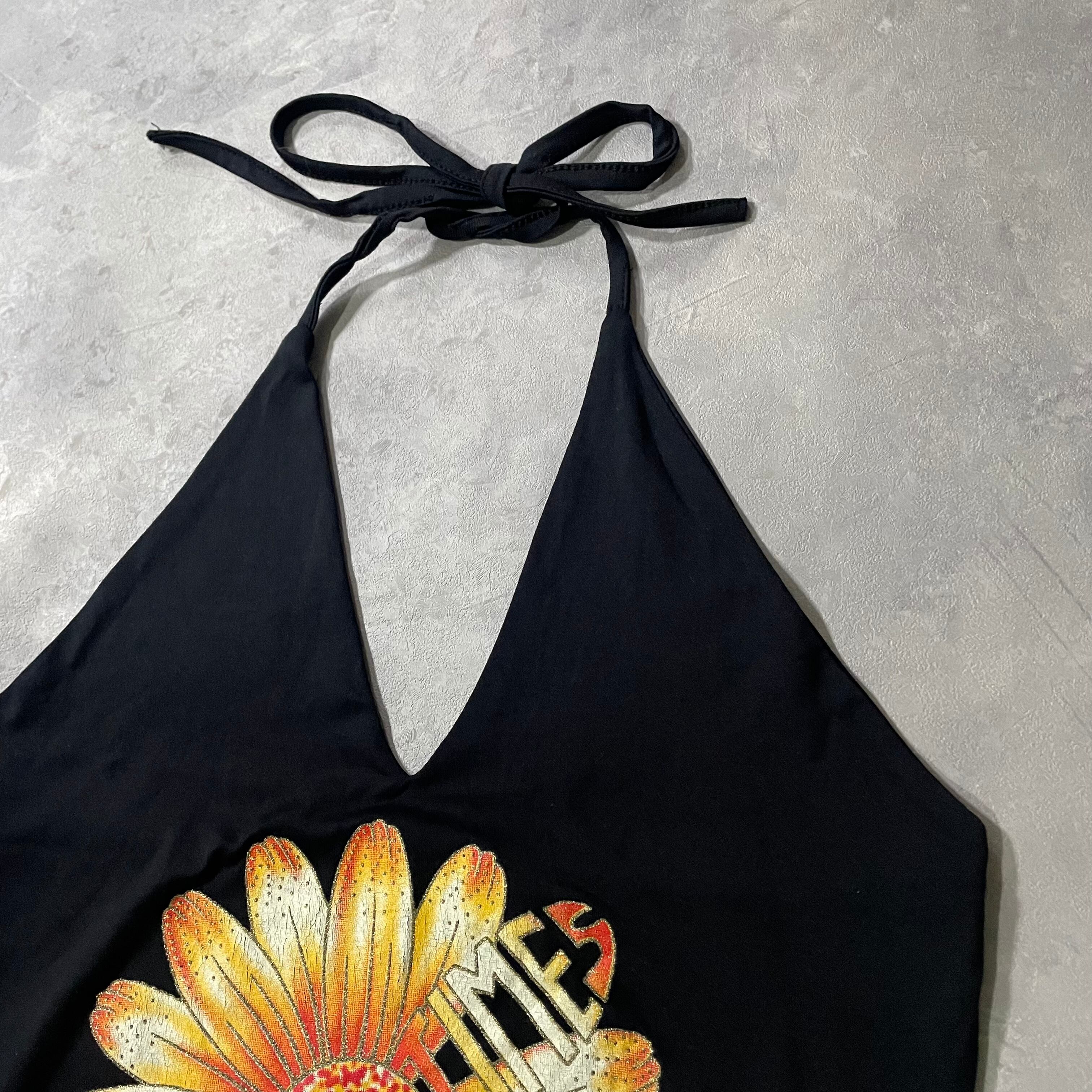 ちょっとrétroなフラワープリントが目を引くホルターネックキャミソール