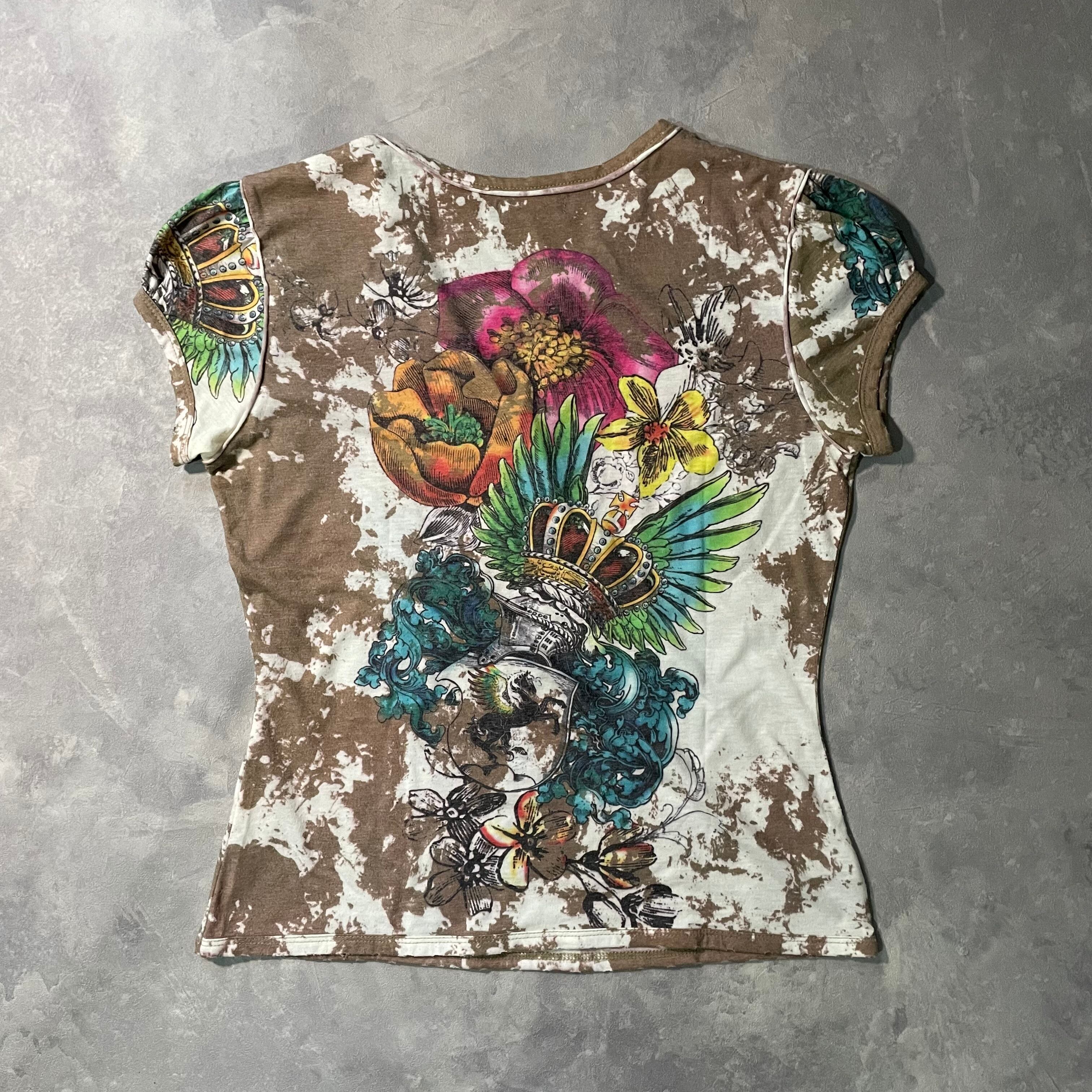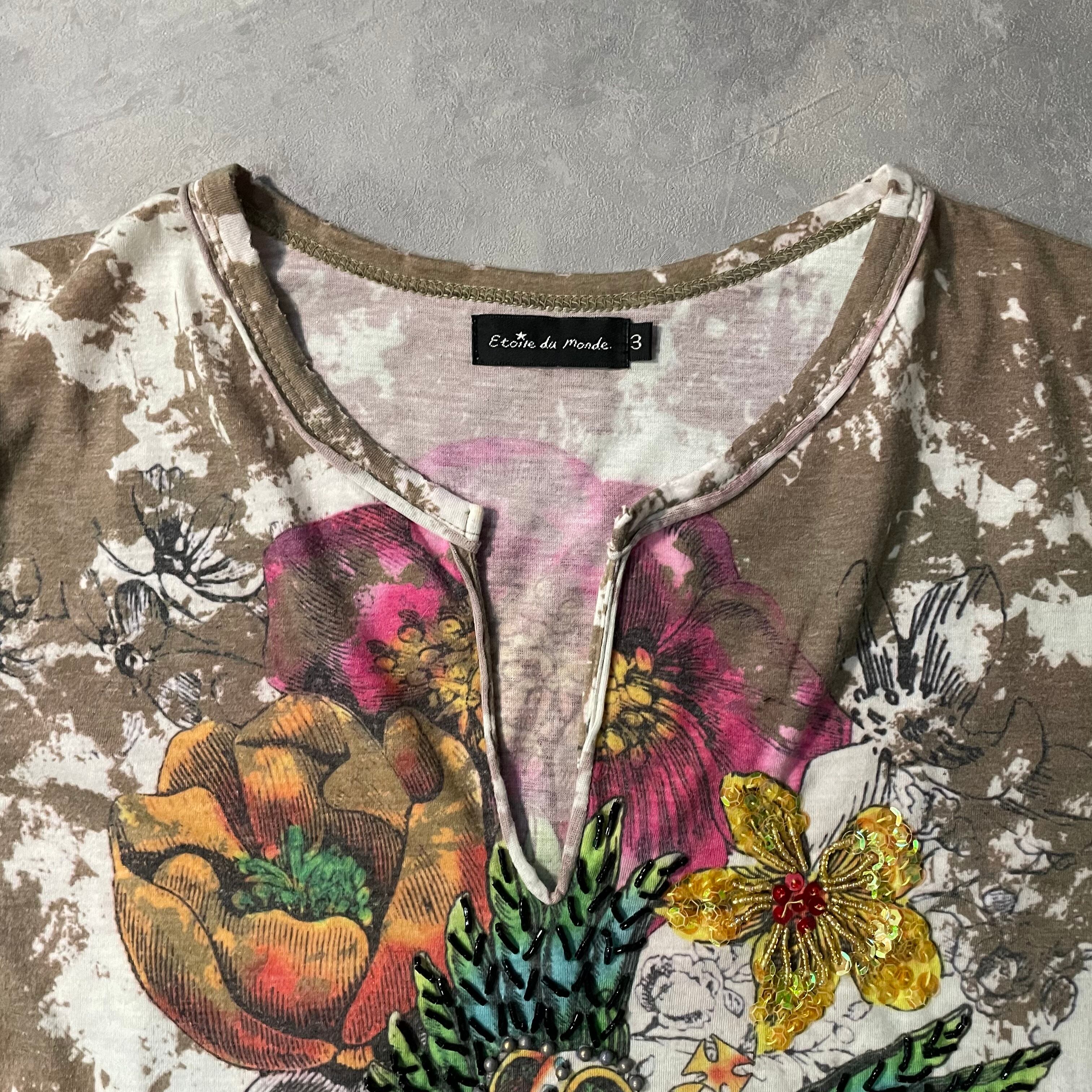 90s cultureを感じるビーズ刺繍とテキスタイルが印象的な派手柄T-shirt