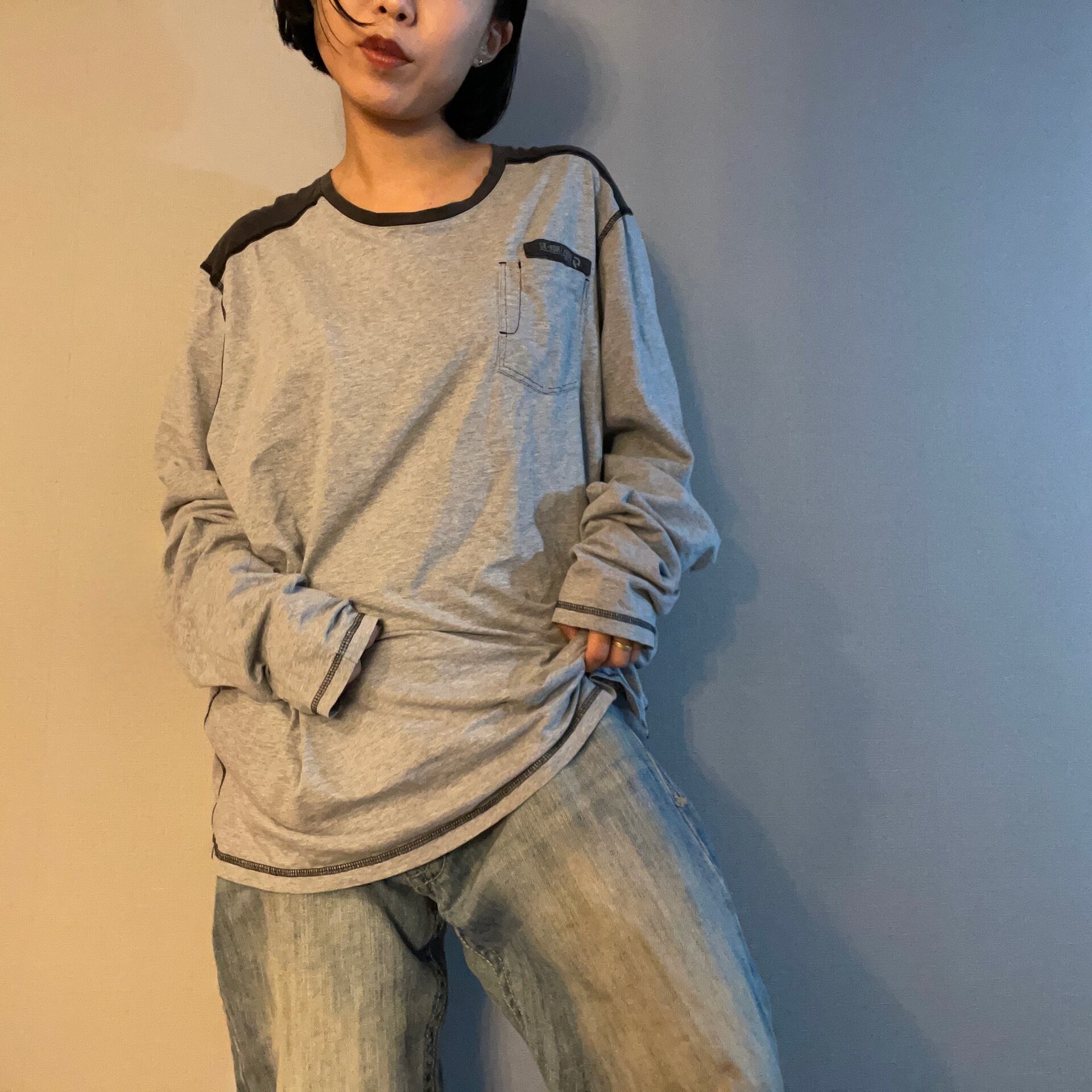 肌に馴染むテロ素材とgrungeな雰囲気がcoolなロンt