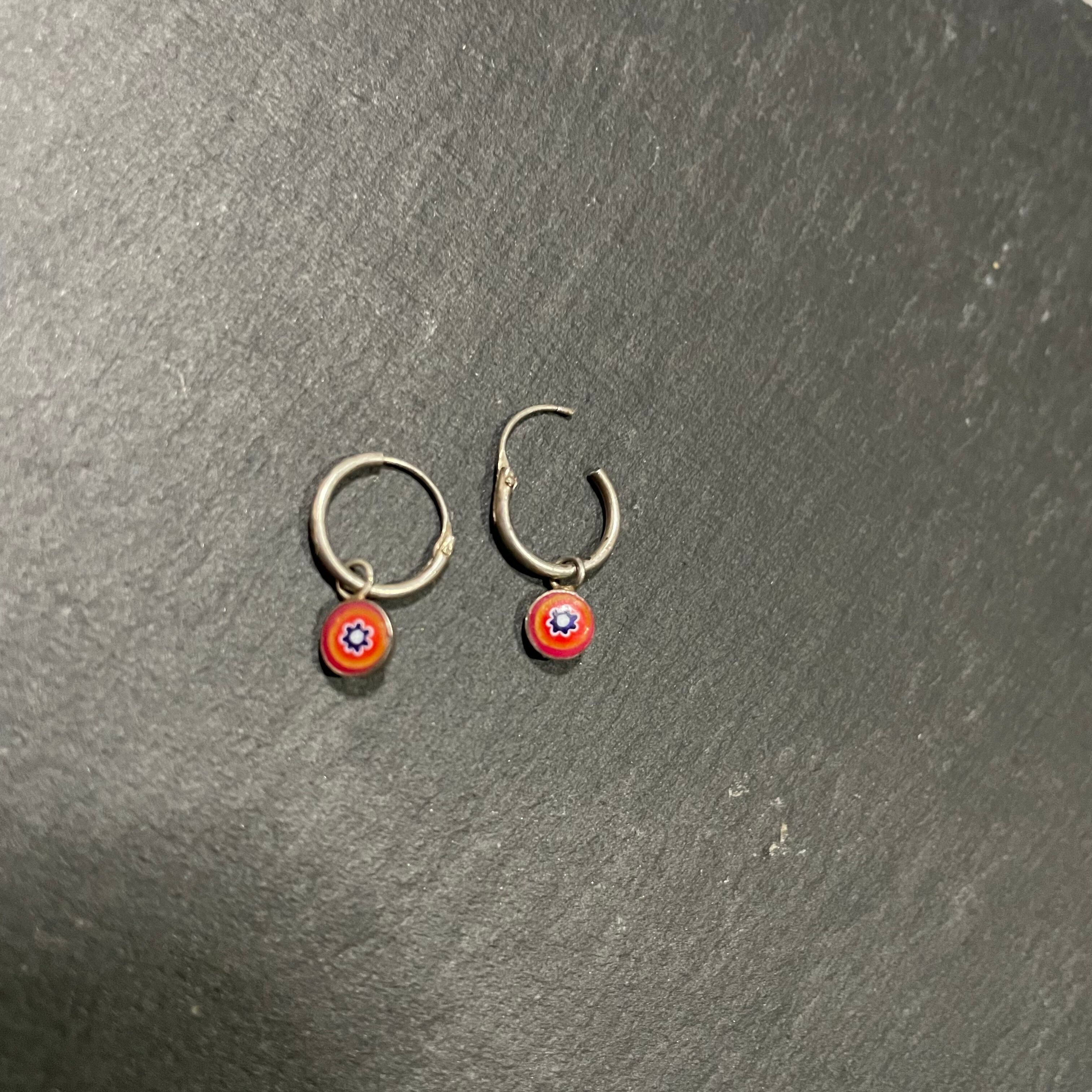 丸いチャームにお花の模様が入ったethnicなcharm pierce