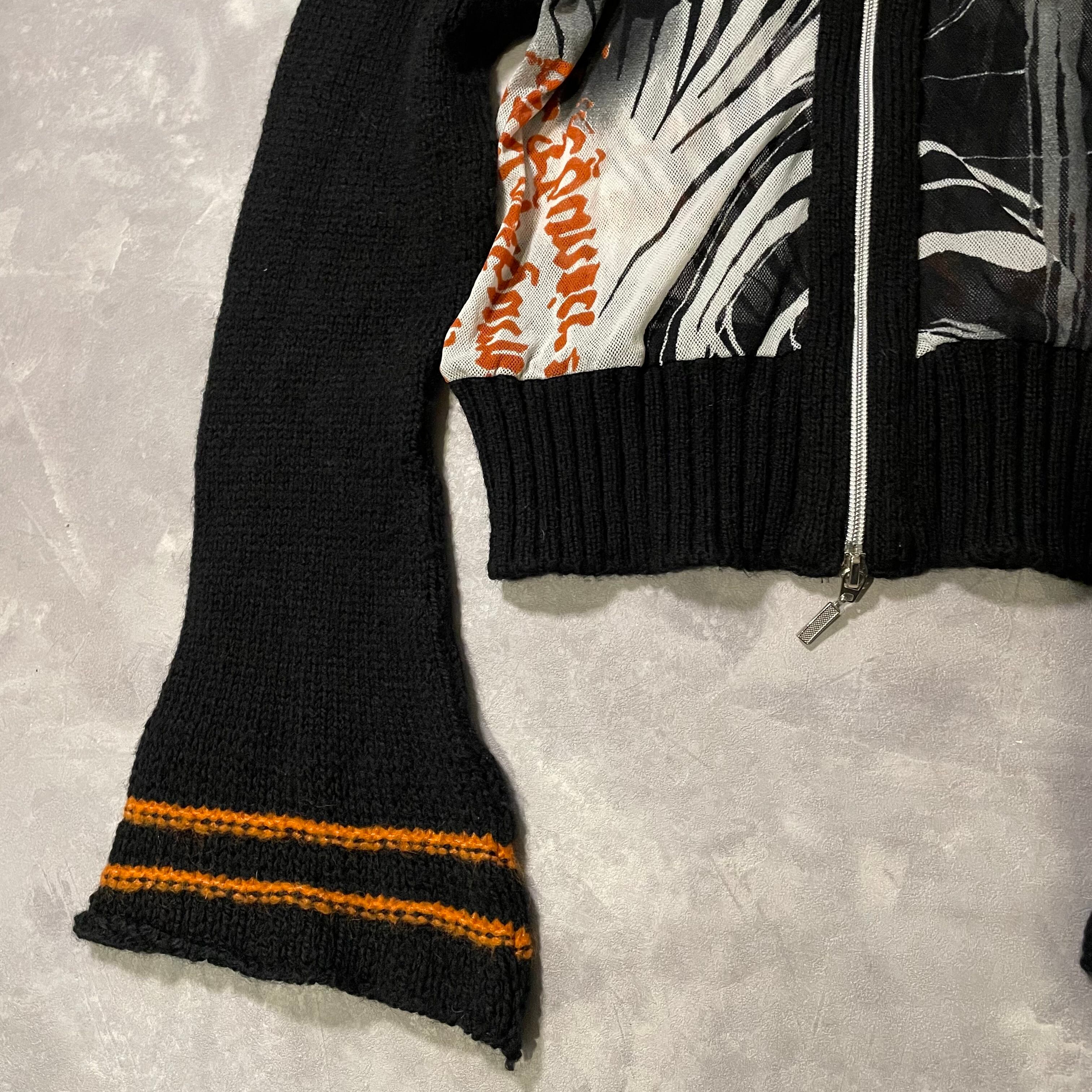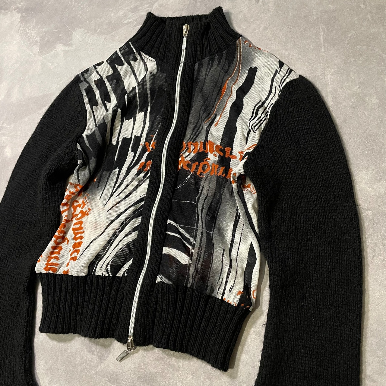 mesh素材× ニット素材の違和感が可愛いzip upトップス