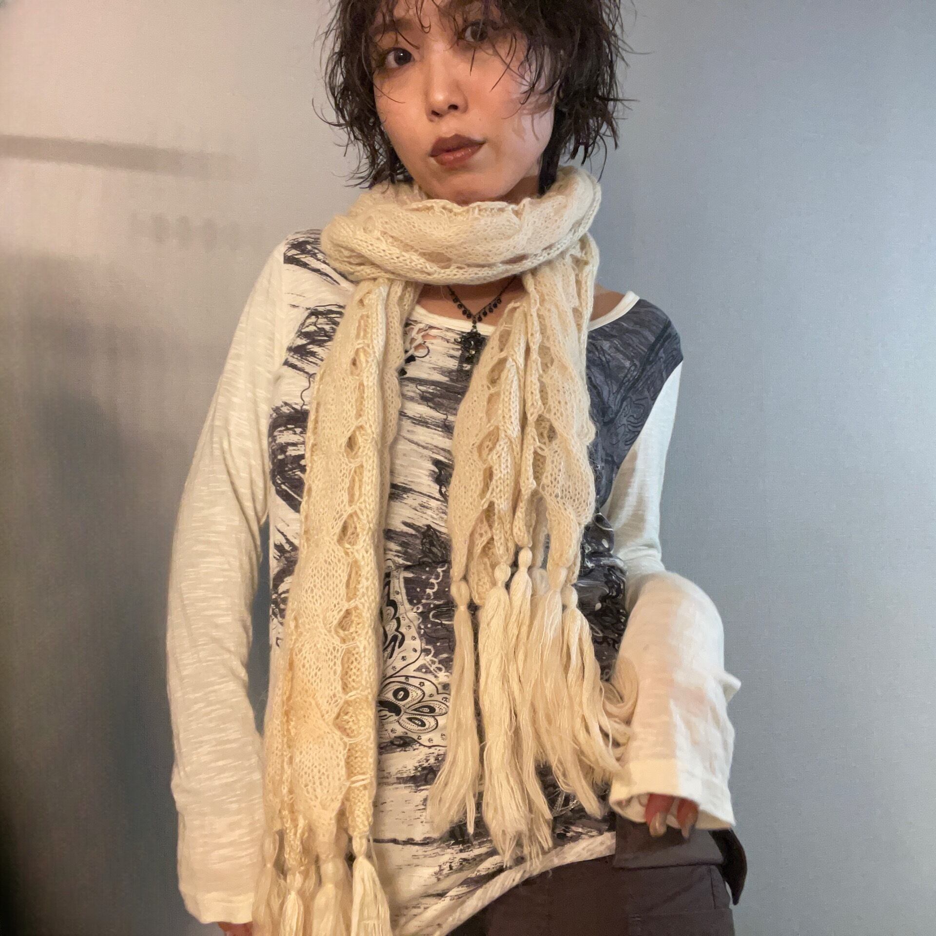 mohairとwool混のふわっとした素材感がcuteなデザインマフラー