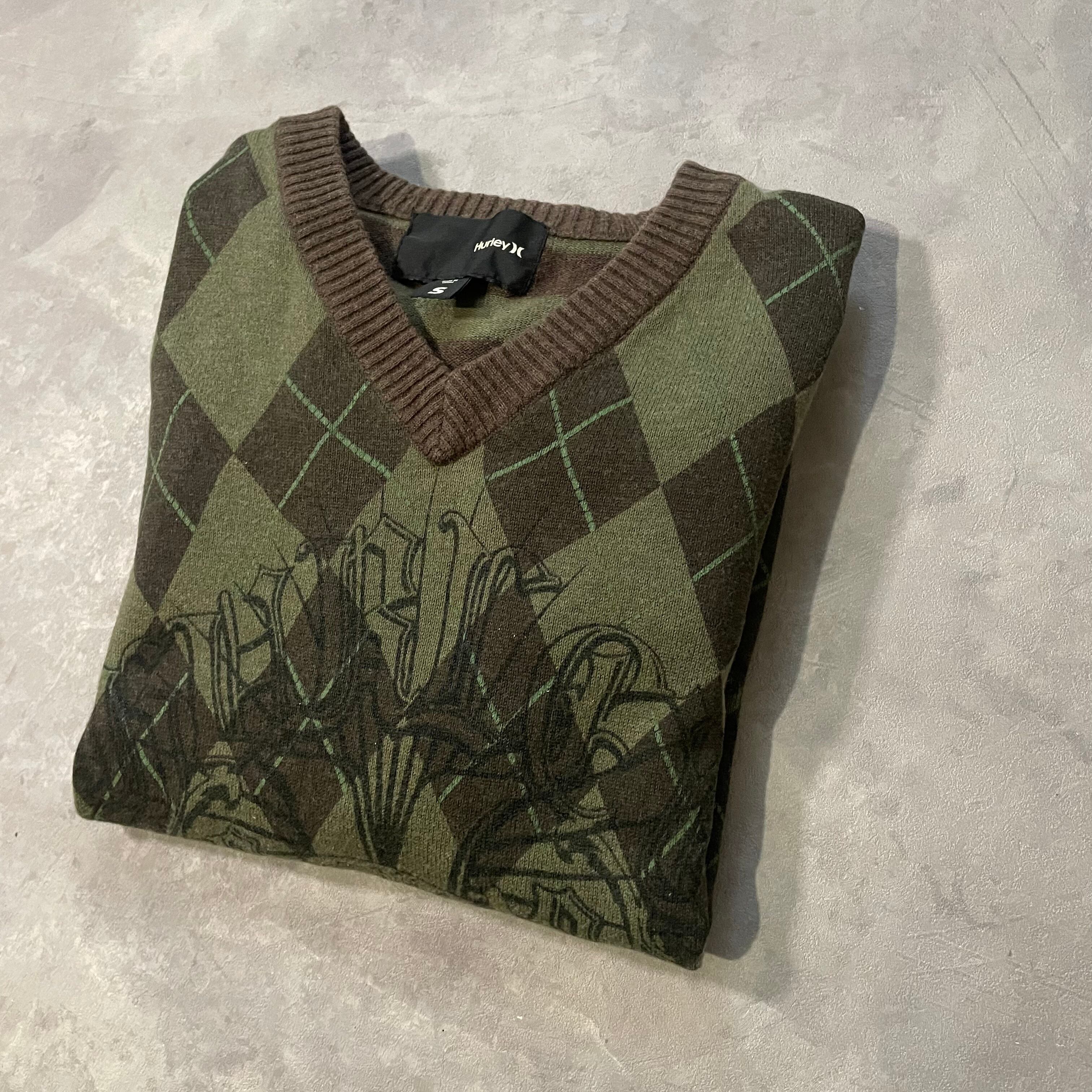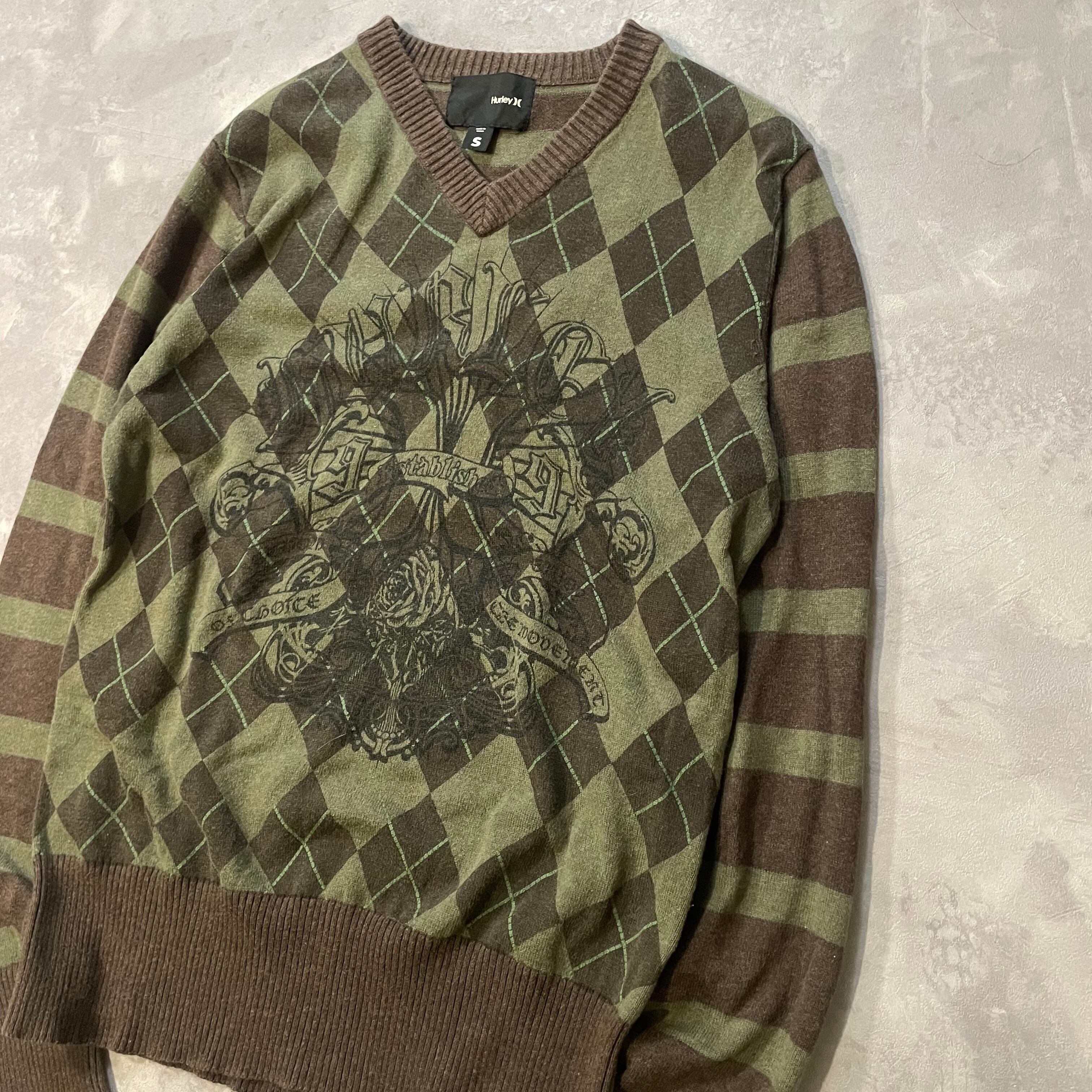 カリフォルニアブランドHurleyからアーガイル柄とボーダーの組み合わせが斬新なgrunge knit