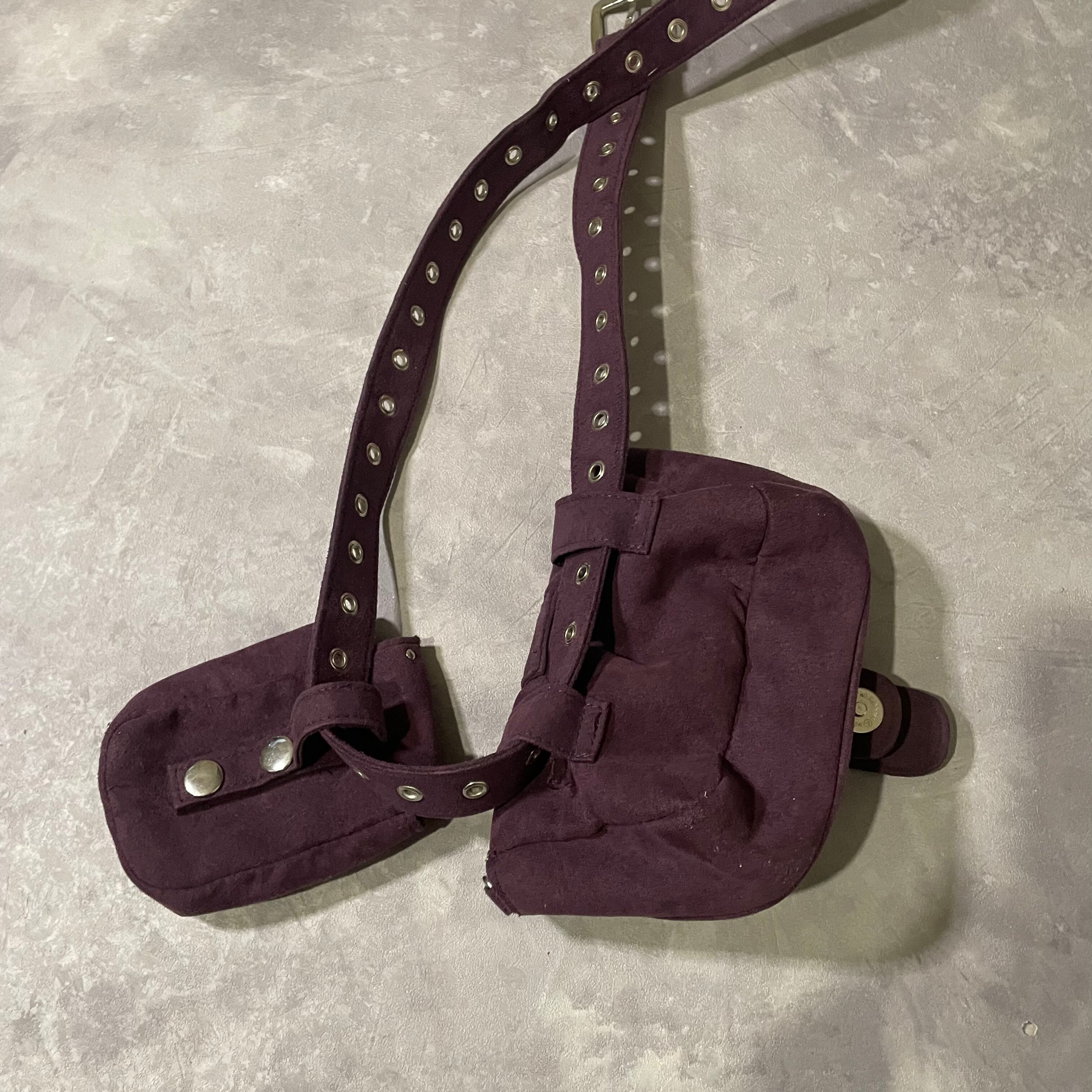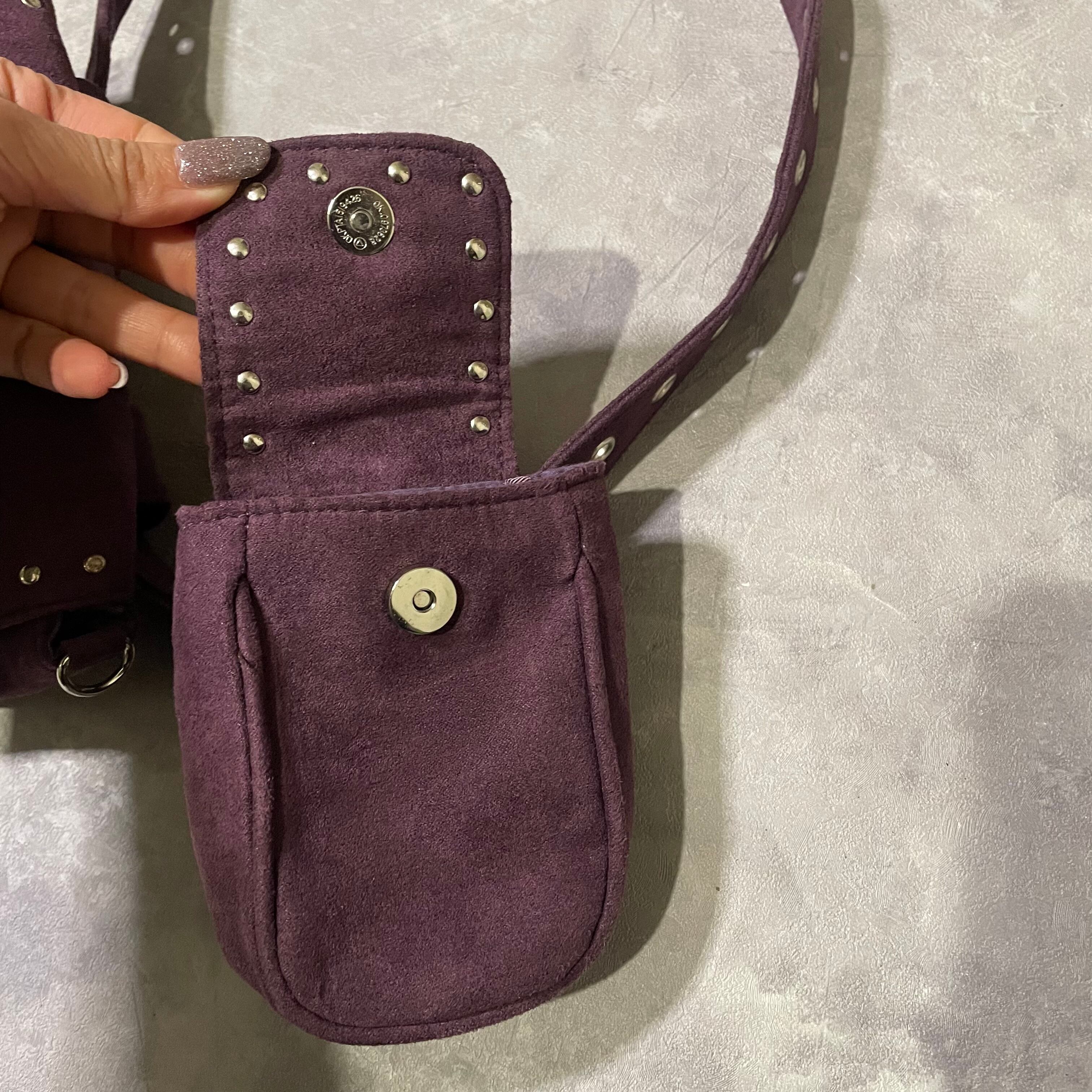 purpleのカラーが効いたstudsデザインのbelt bag