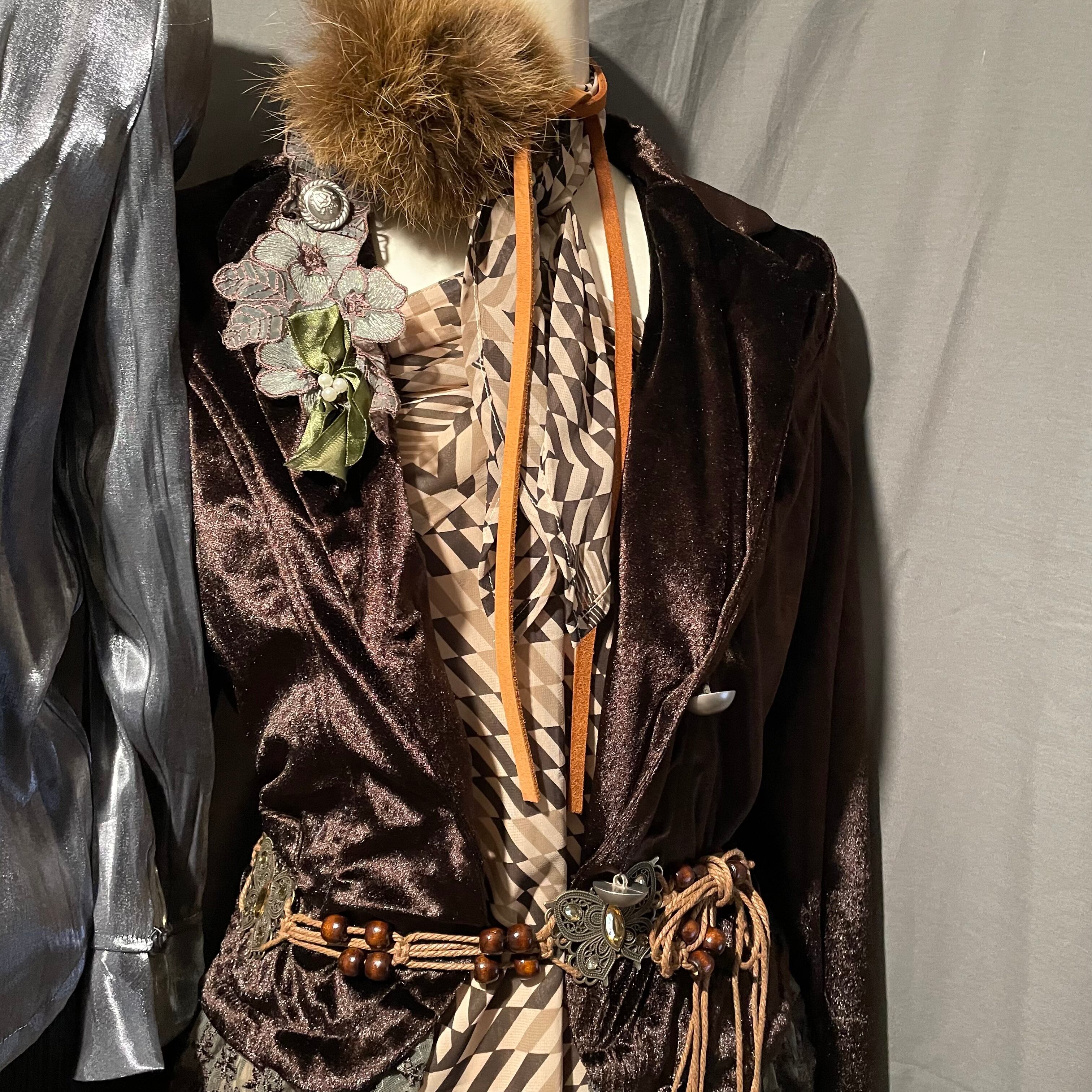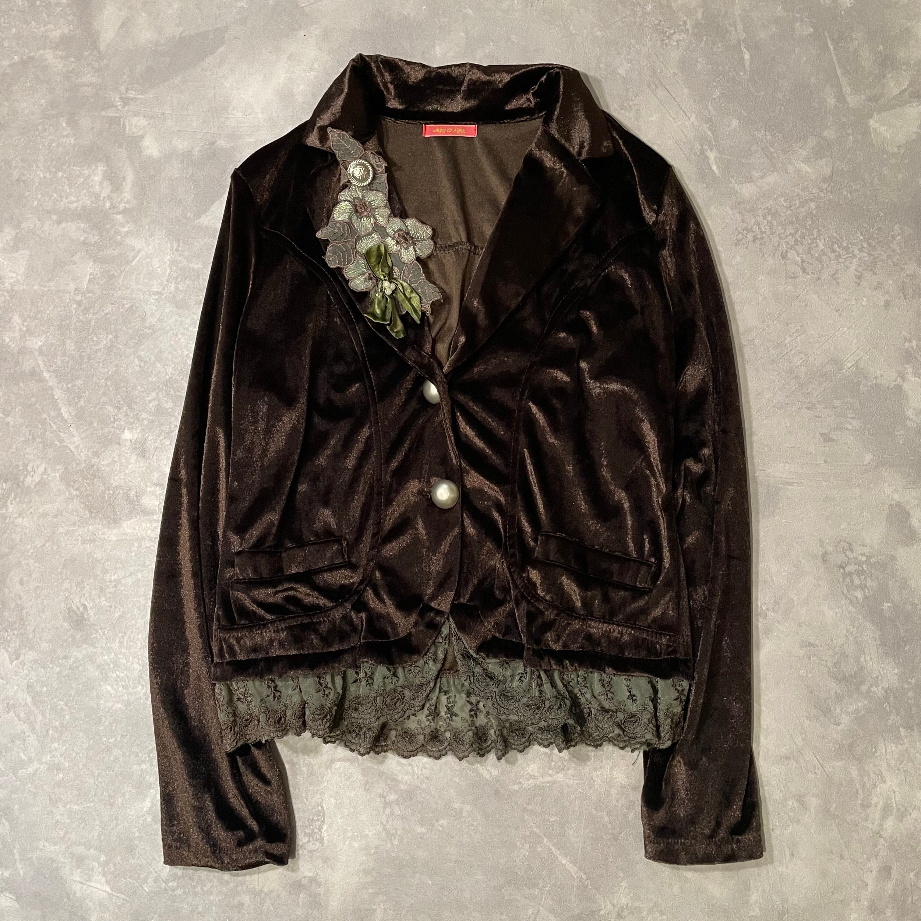 ベロア素材の生地にlaceの裾、胸元のflowerのデザインがmuchした jacket