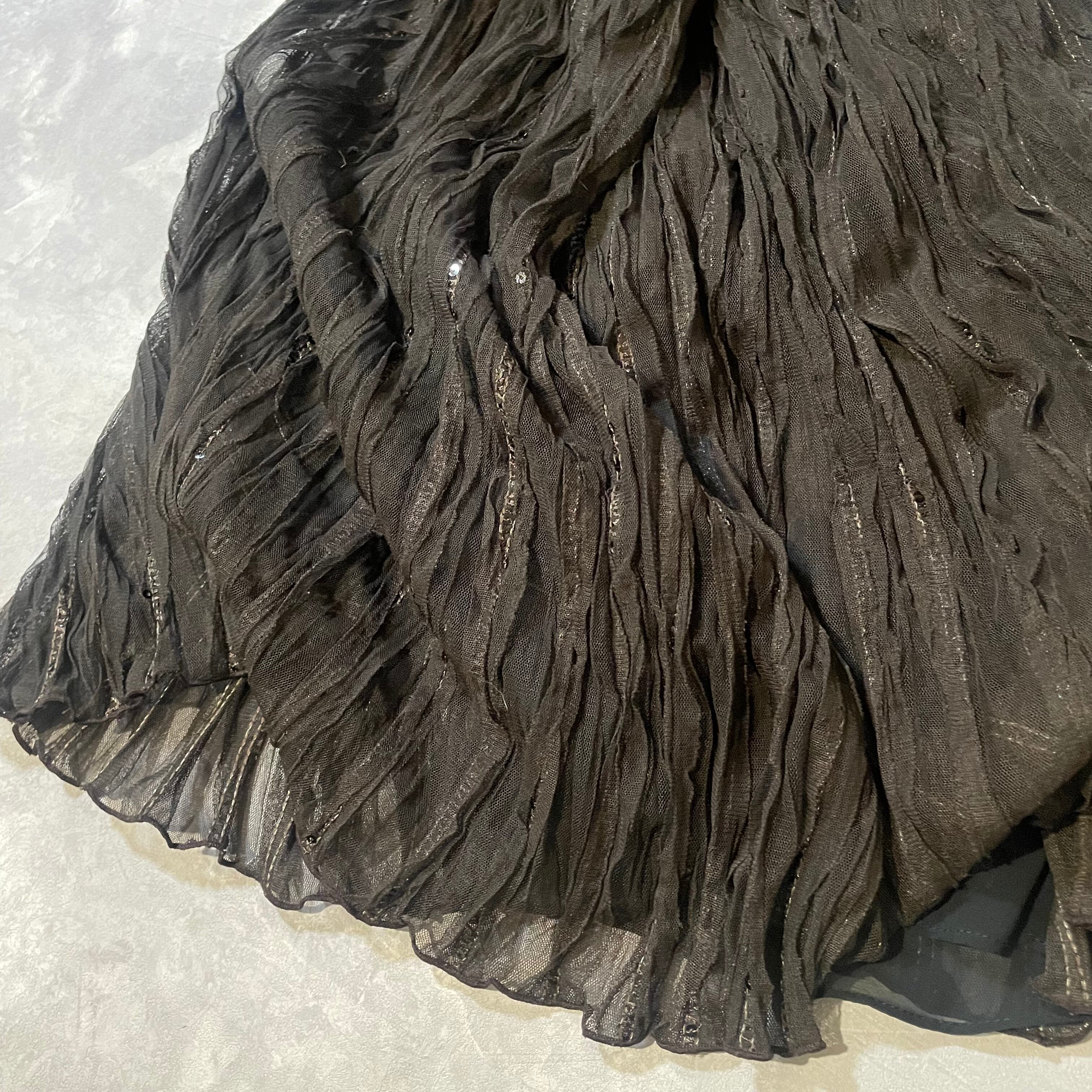 brownのチュールにスパンコールが散らばったdesignのロングスカート
