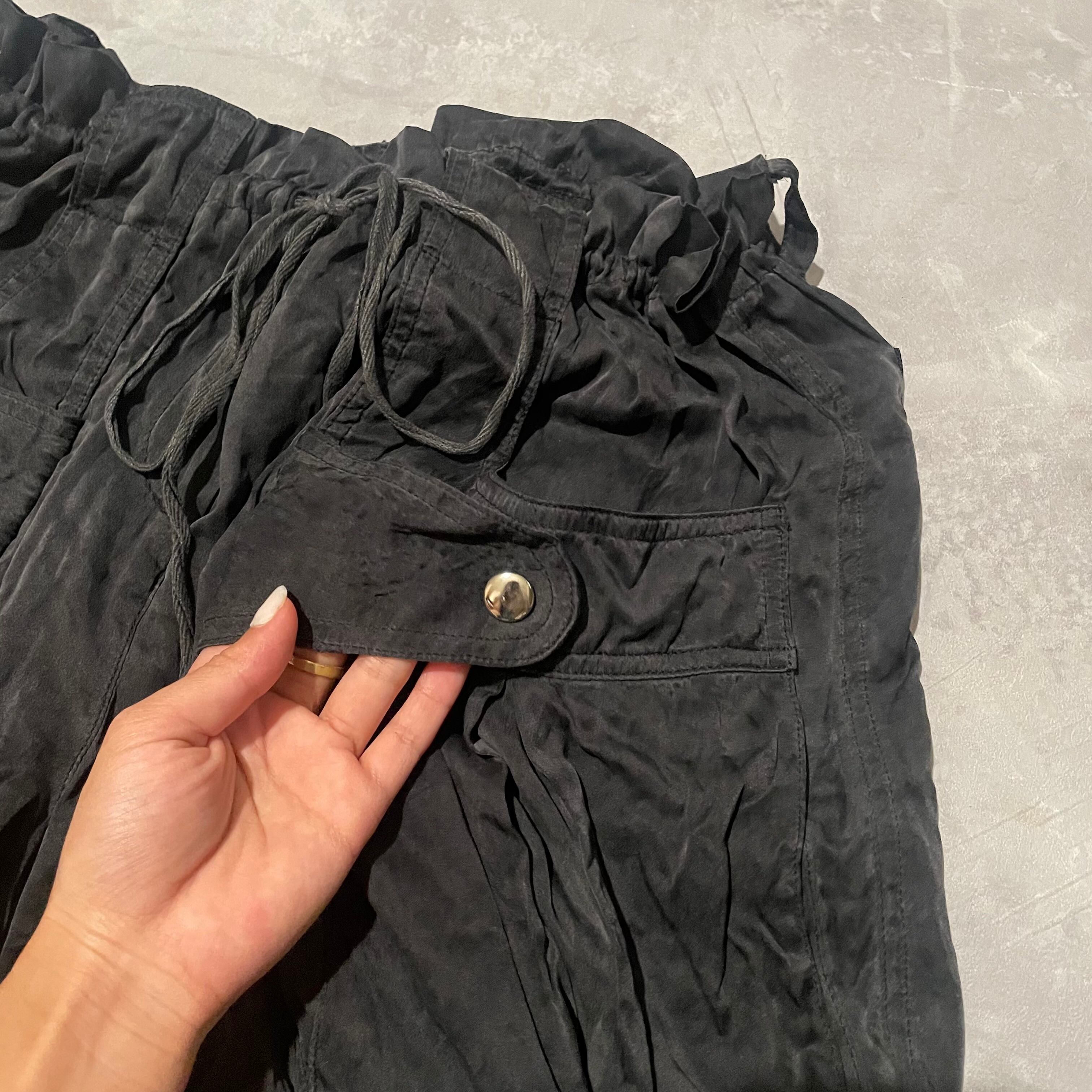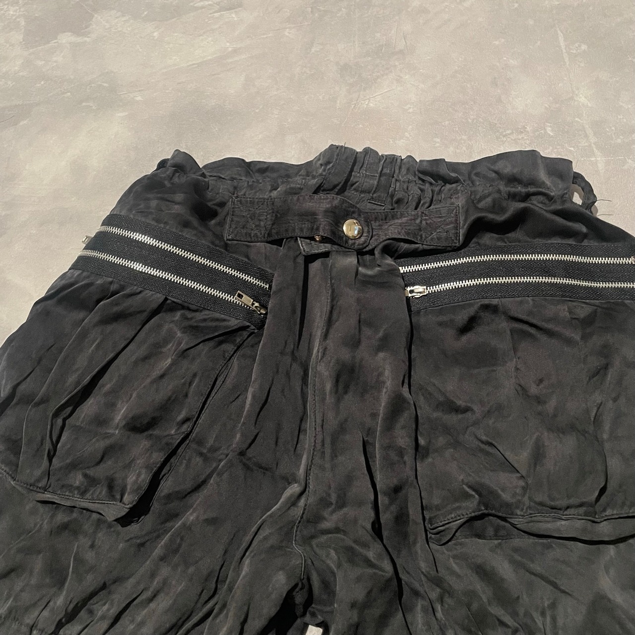 ウエストと裾の絞りdesignに、ボタンとファスナーのアクセントが◎