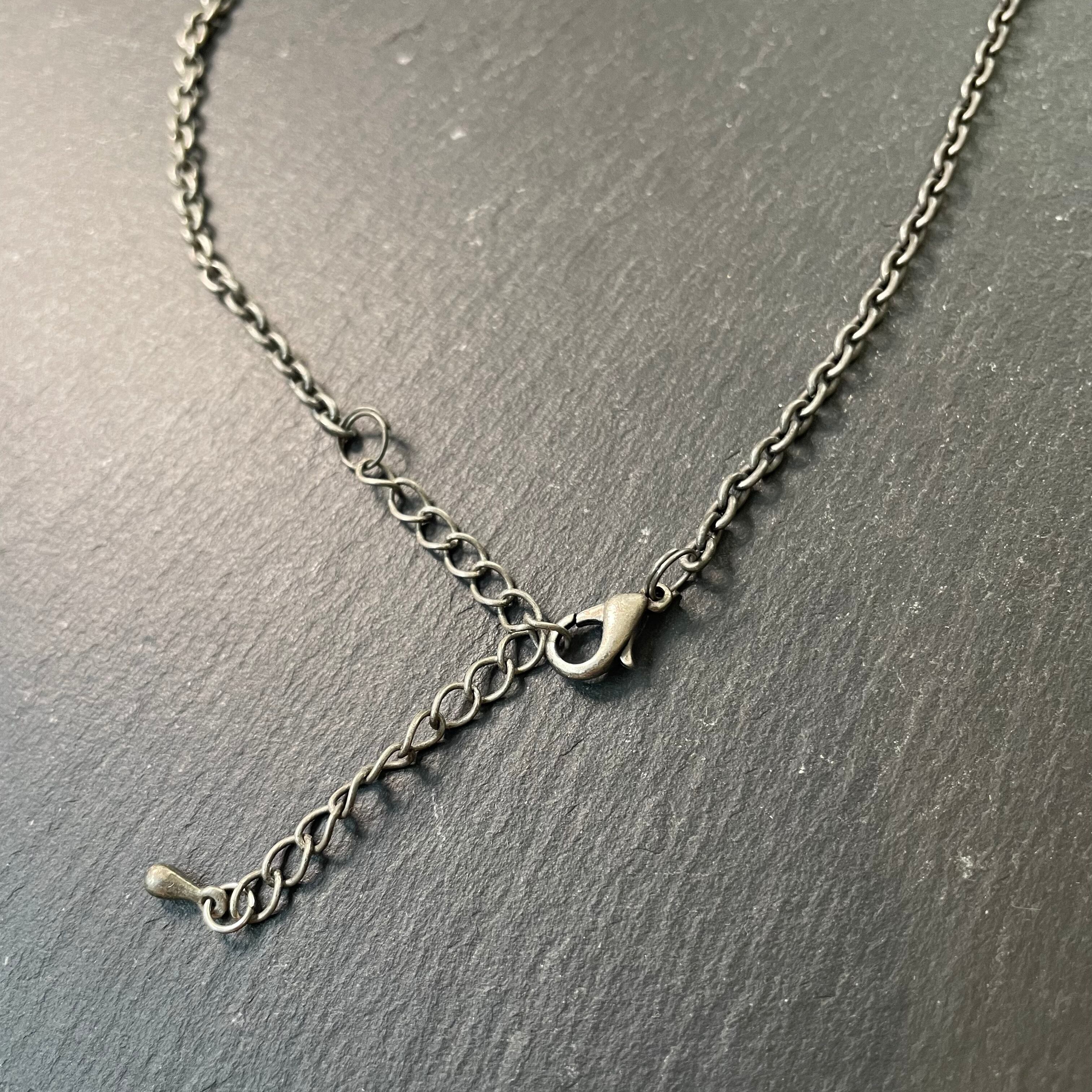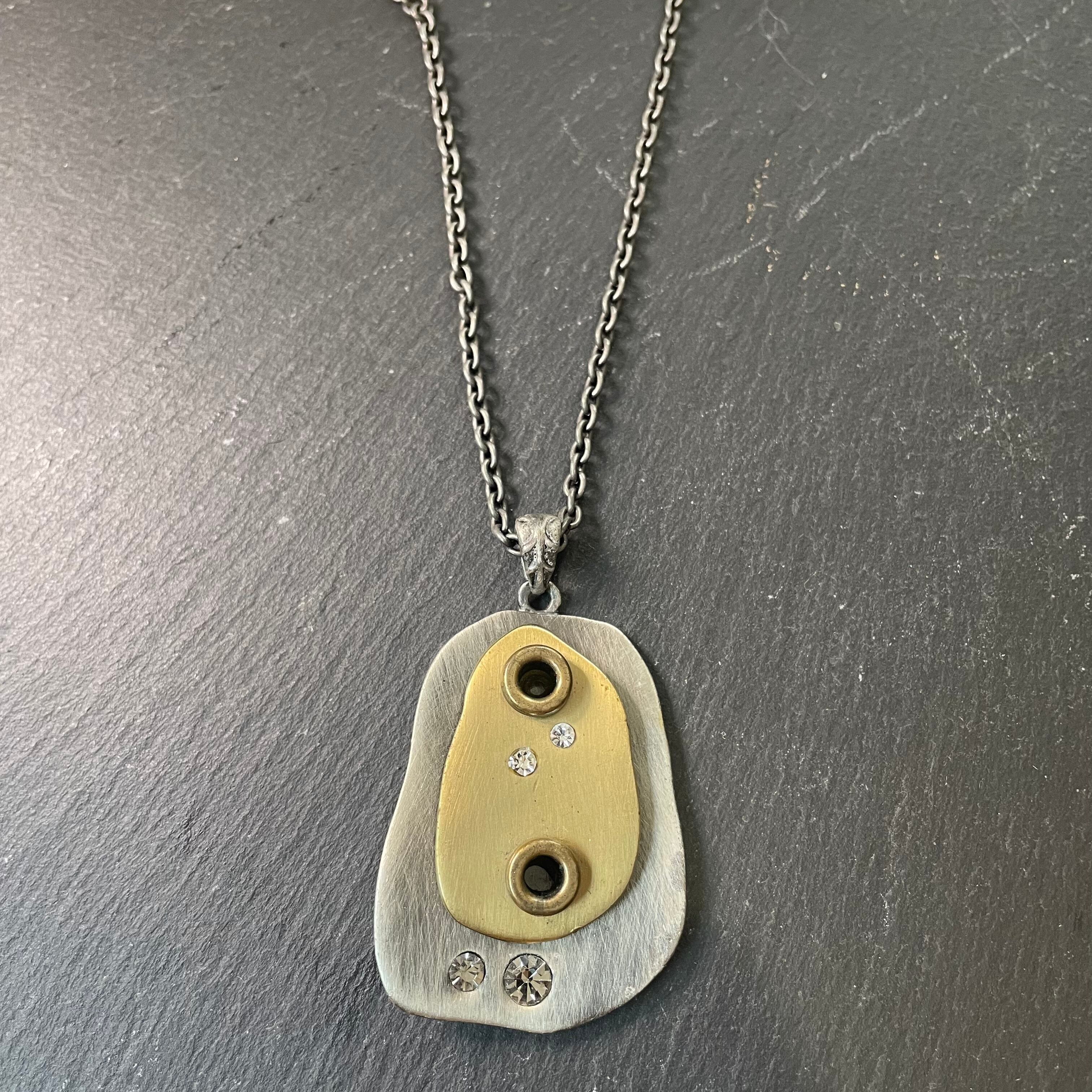silverとgoldの不思議なモチーフが目を引くnecklace