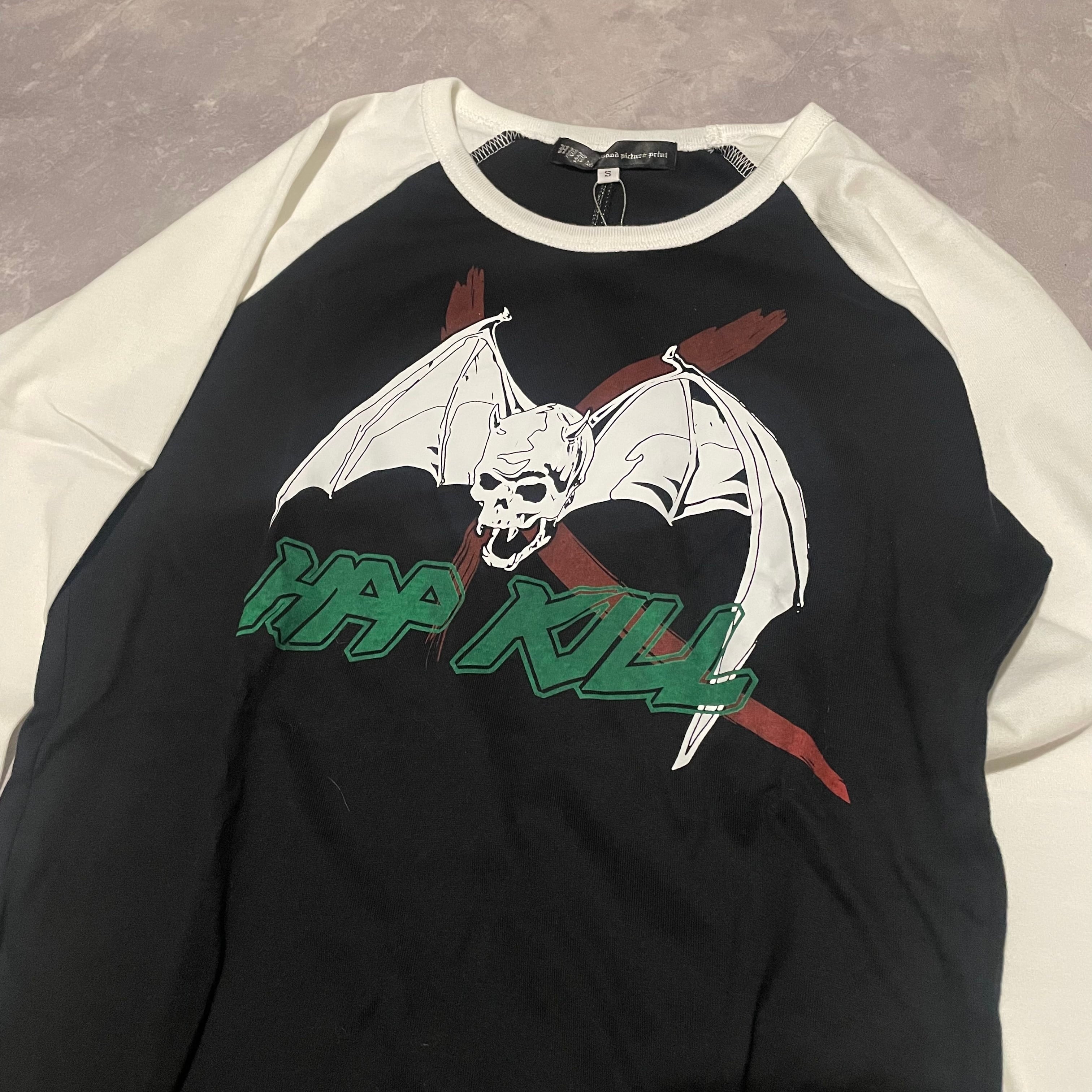 白袖のラグランスリーブにrockなプリントがcoolなlong sleeve Tシャツ