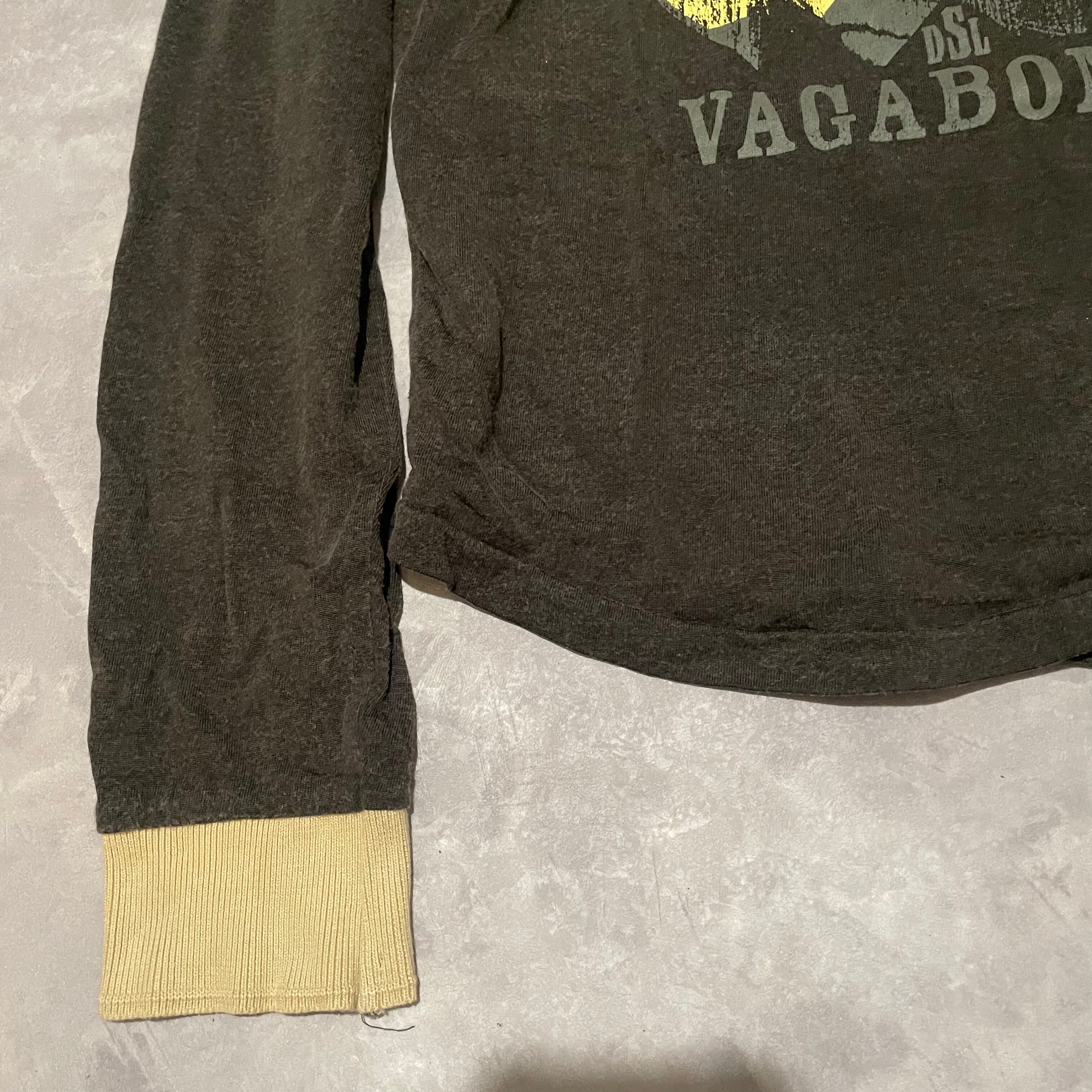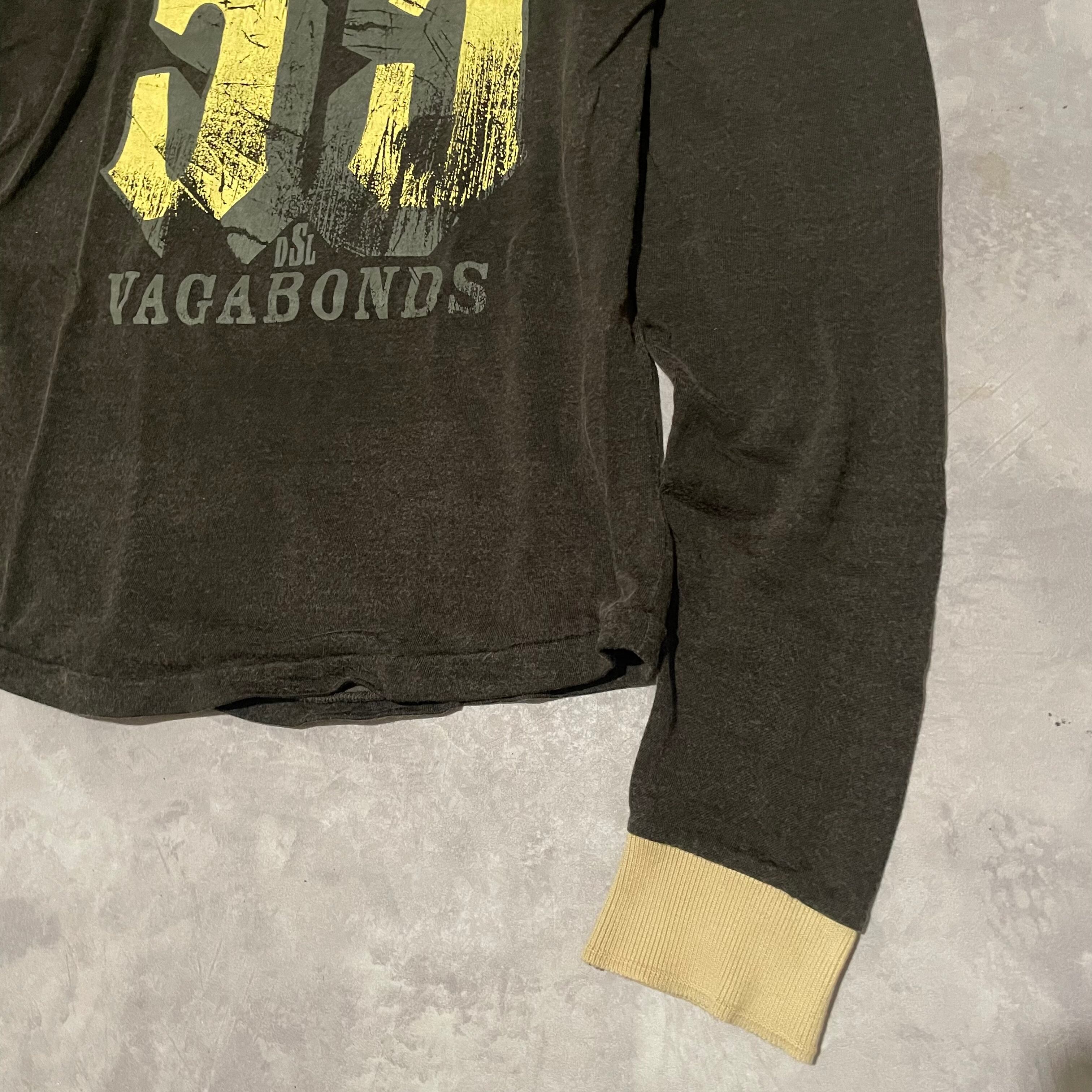 khaki grayの絶妙なカラーにgrunge感のある黄色い襟ぐりがアクセントに