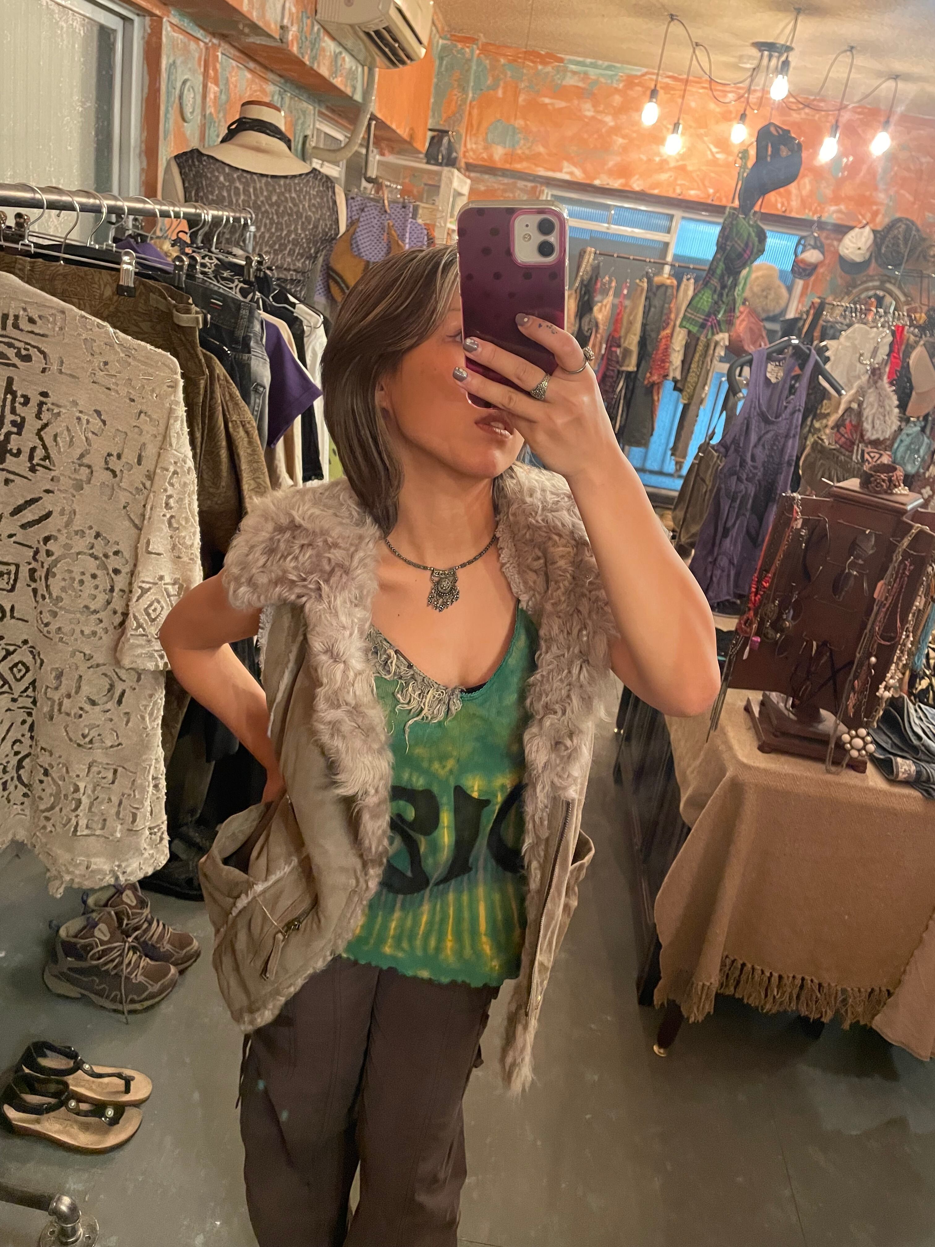 首元と腰まわりのbeltを締めるとまた違う表情に