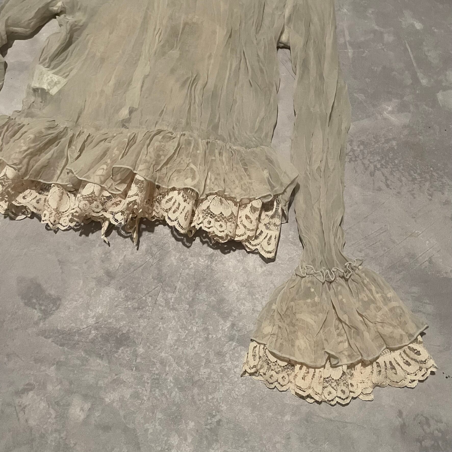 クチュールドレスのように繊細で美しいlaceとシアーな素材が魅力のshirt blouse