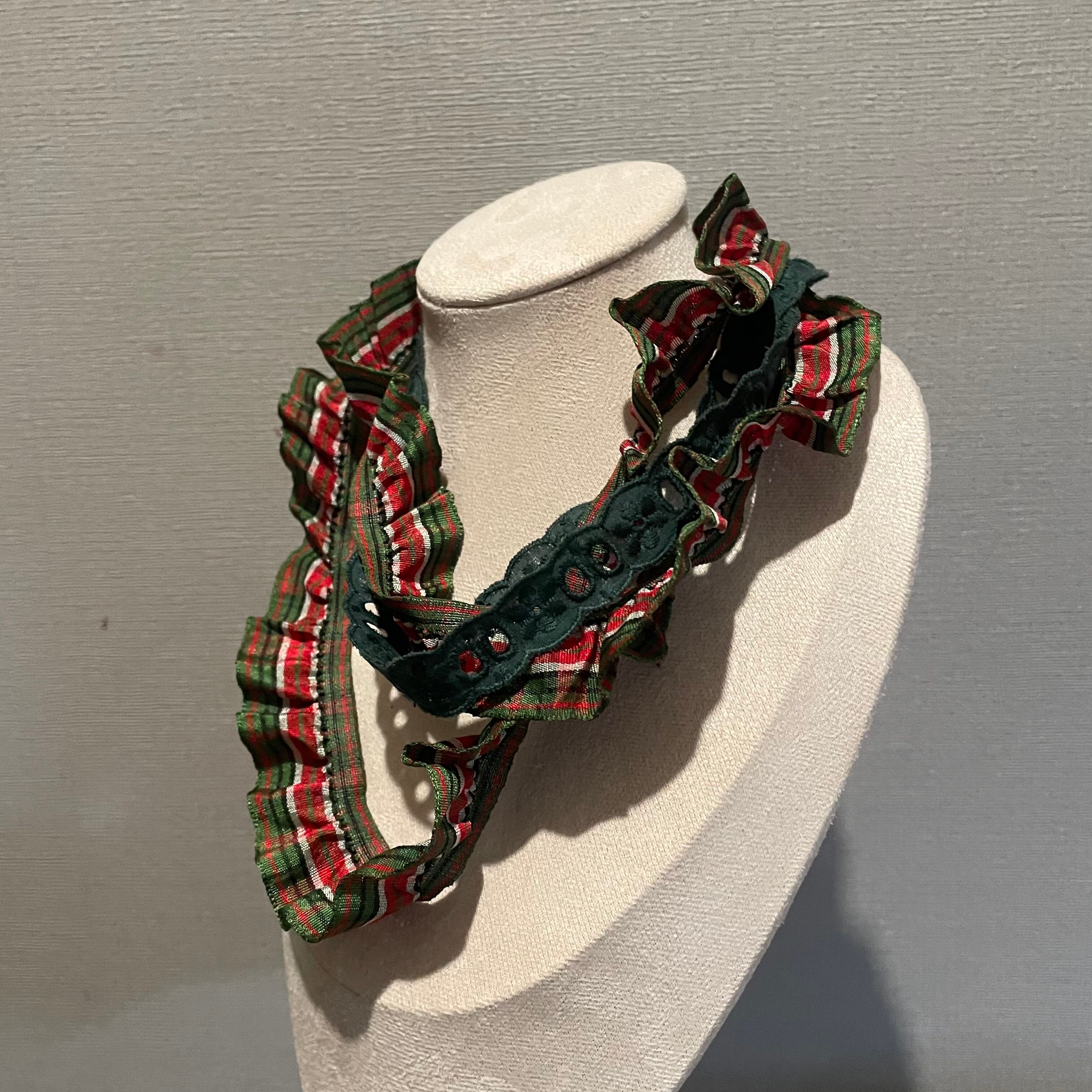 Christmasのようなカラーリングのフリルリボンがcuteなネックレス