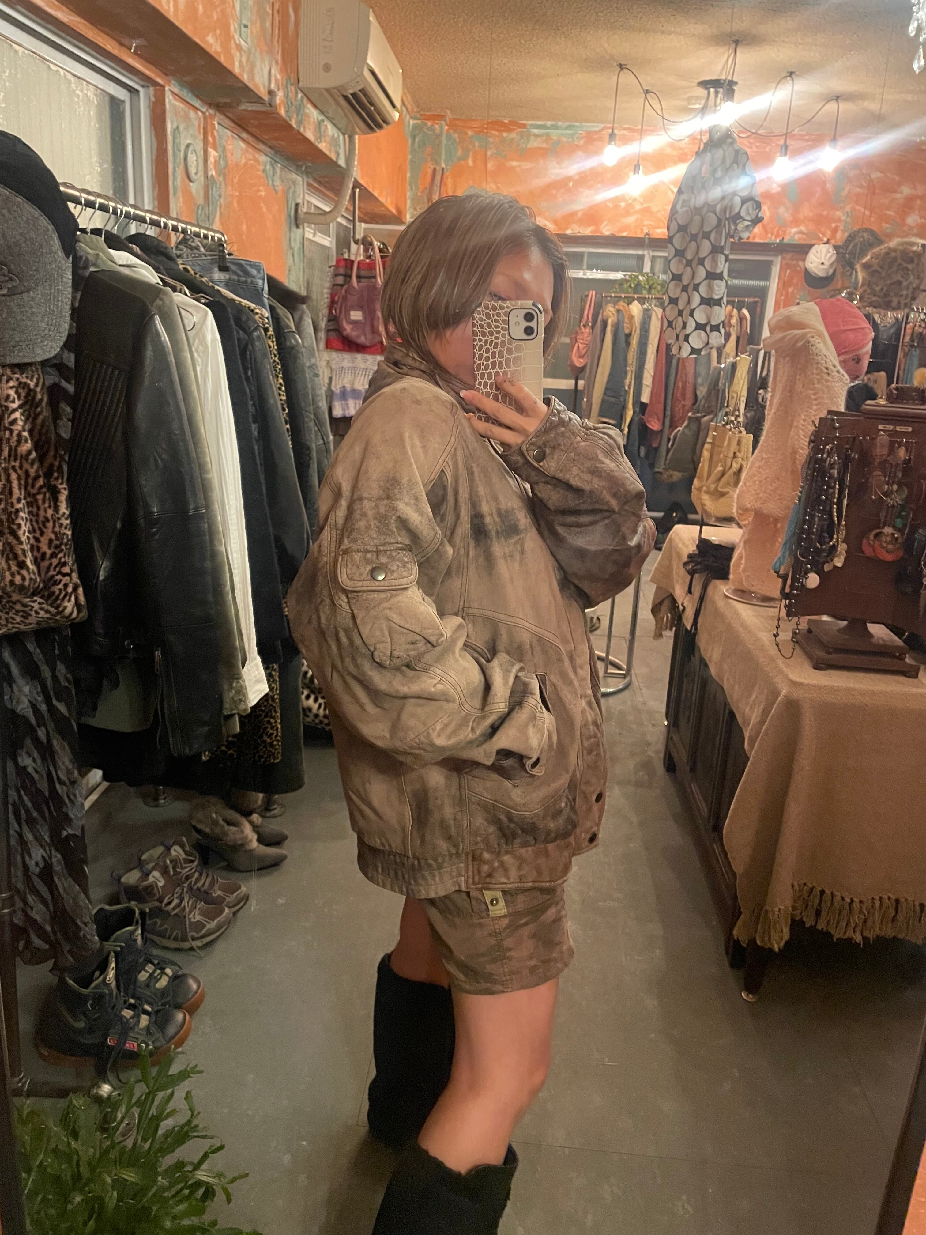 リアルレザーの素材感、褪せたようなcoloringがcoolなブルゾンjacket