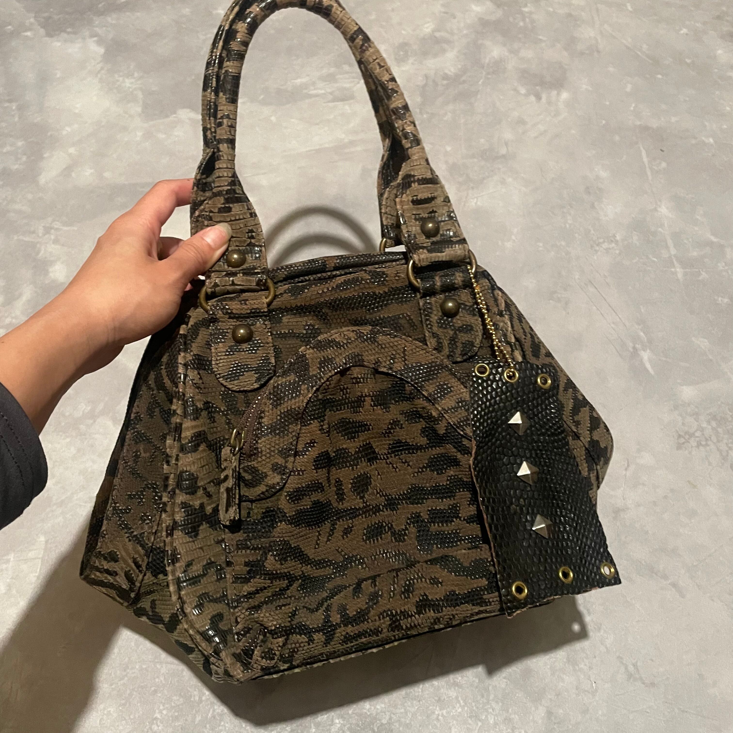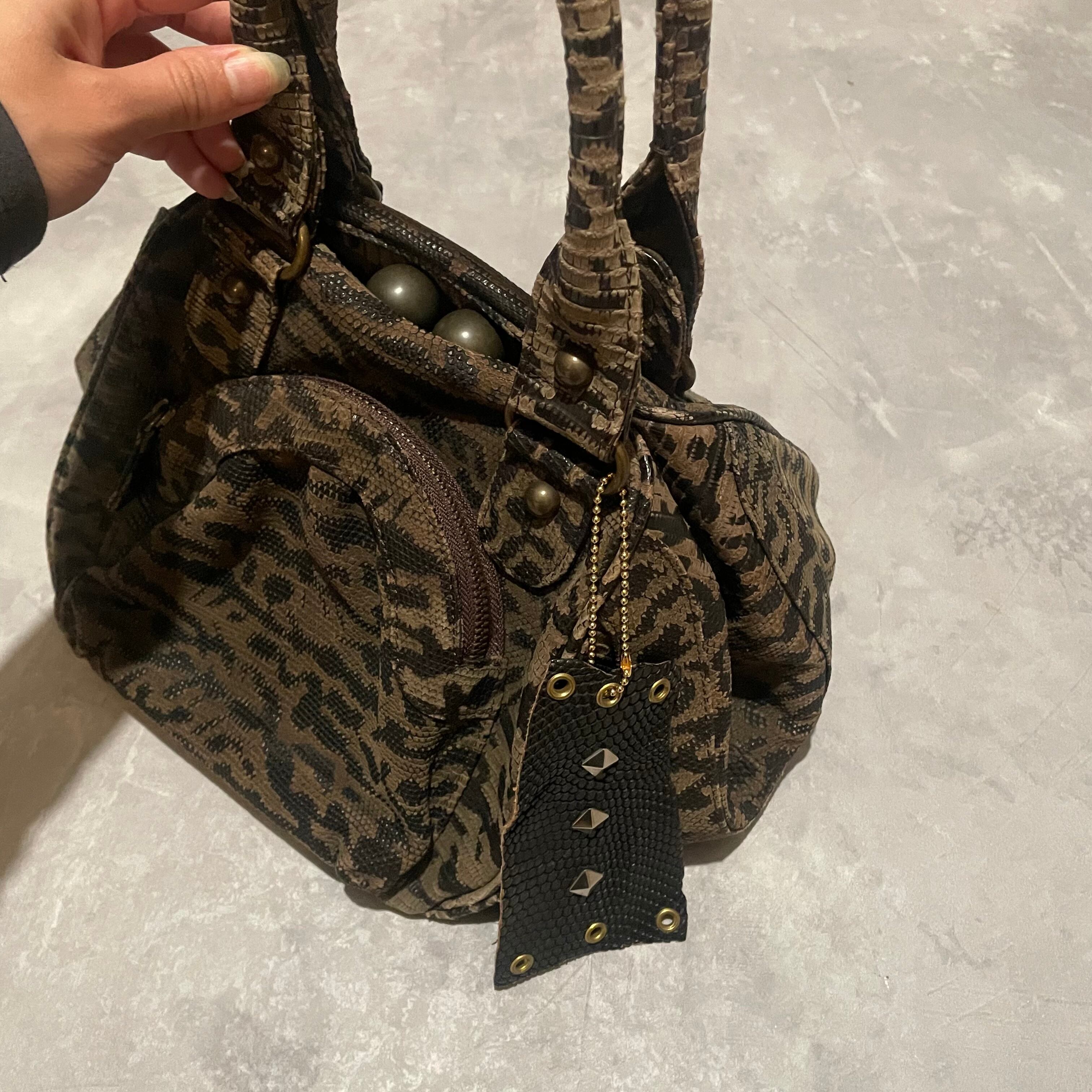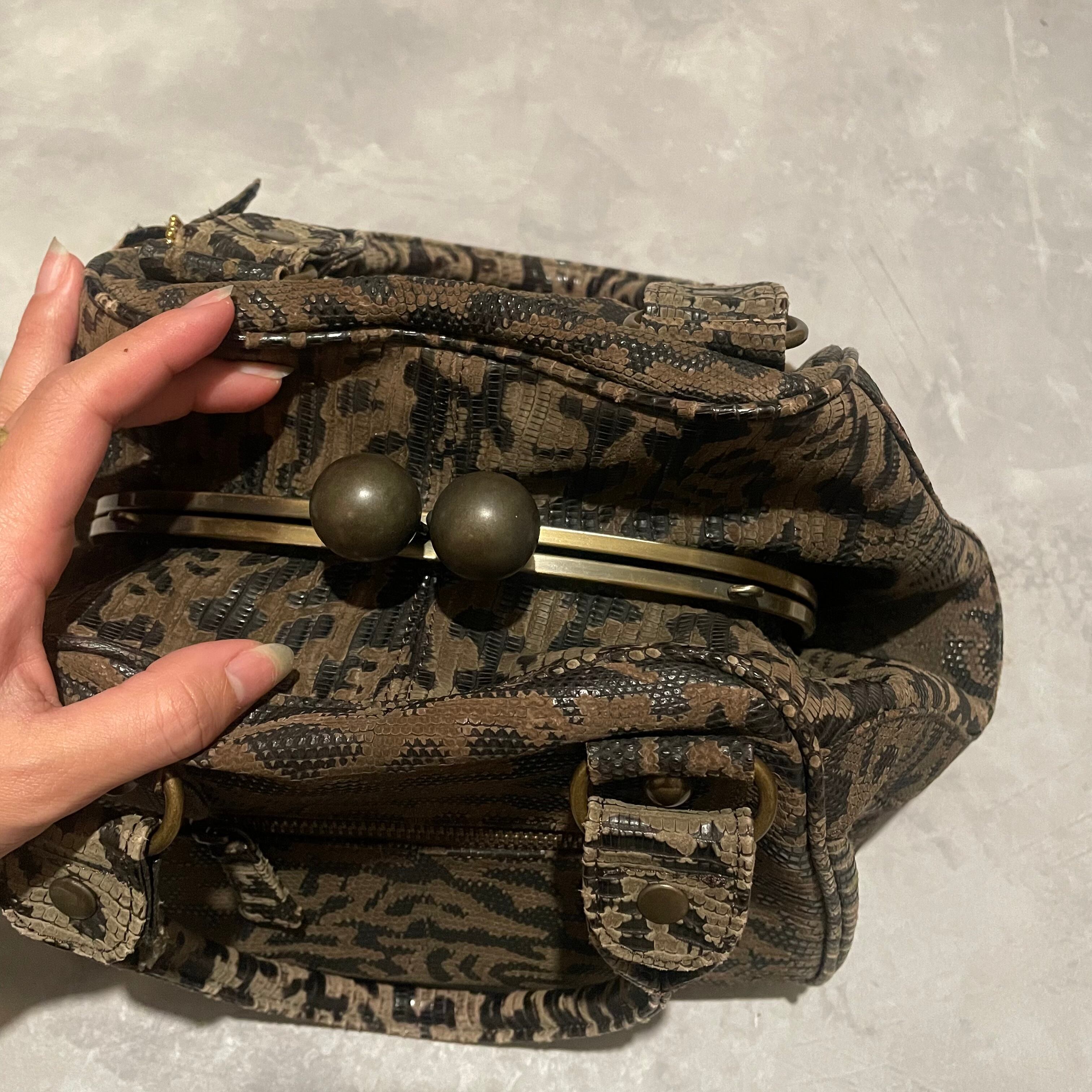 アニマル柄のようなhardな柄にがま口がcuteなハンドバッグ