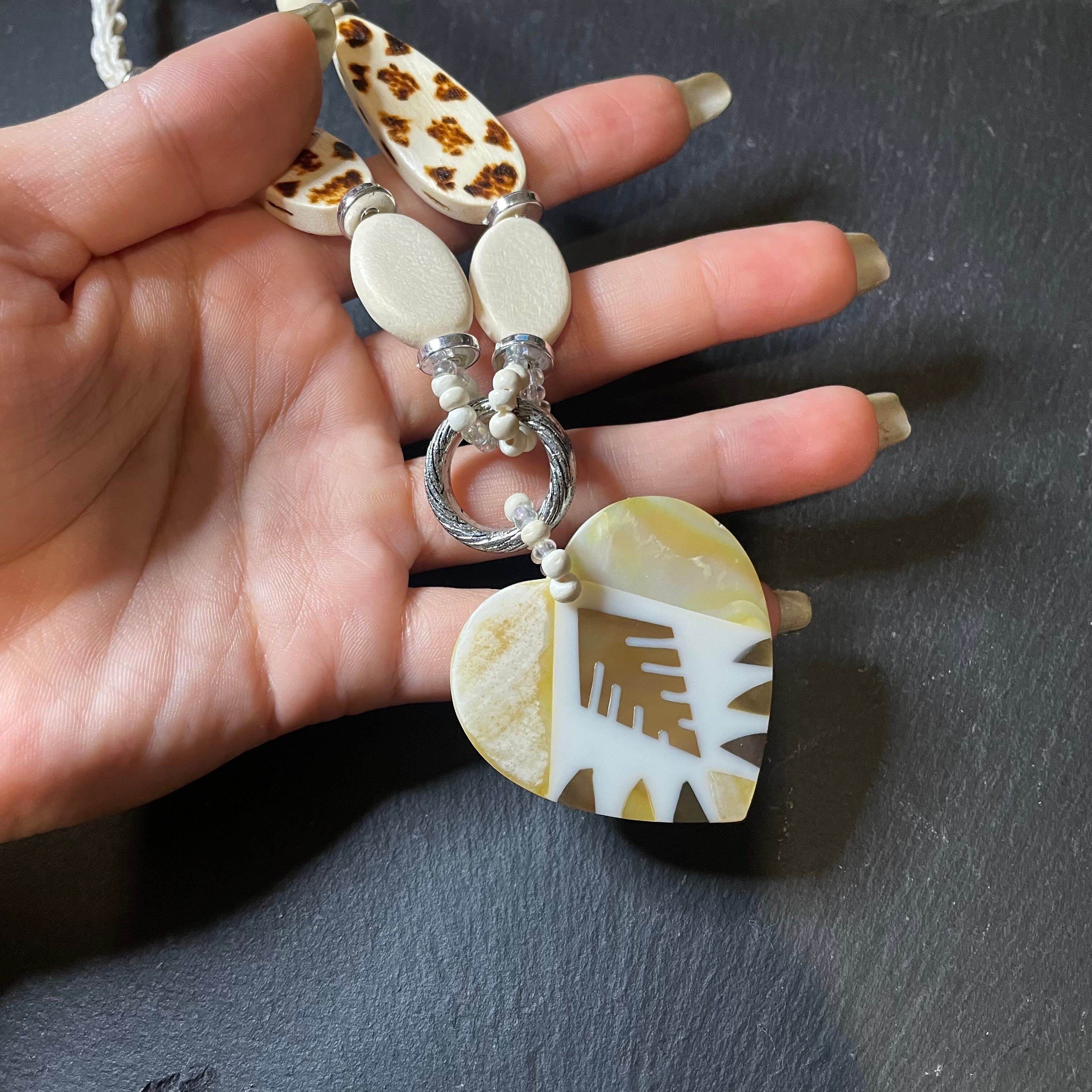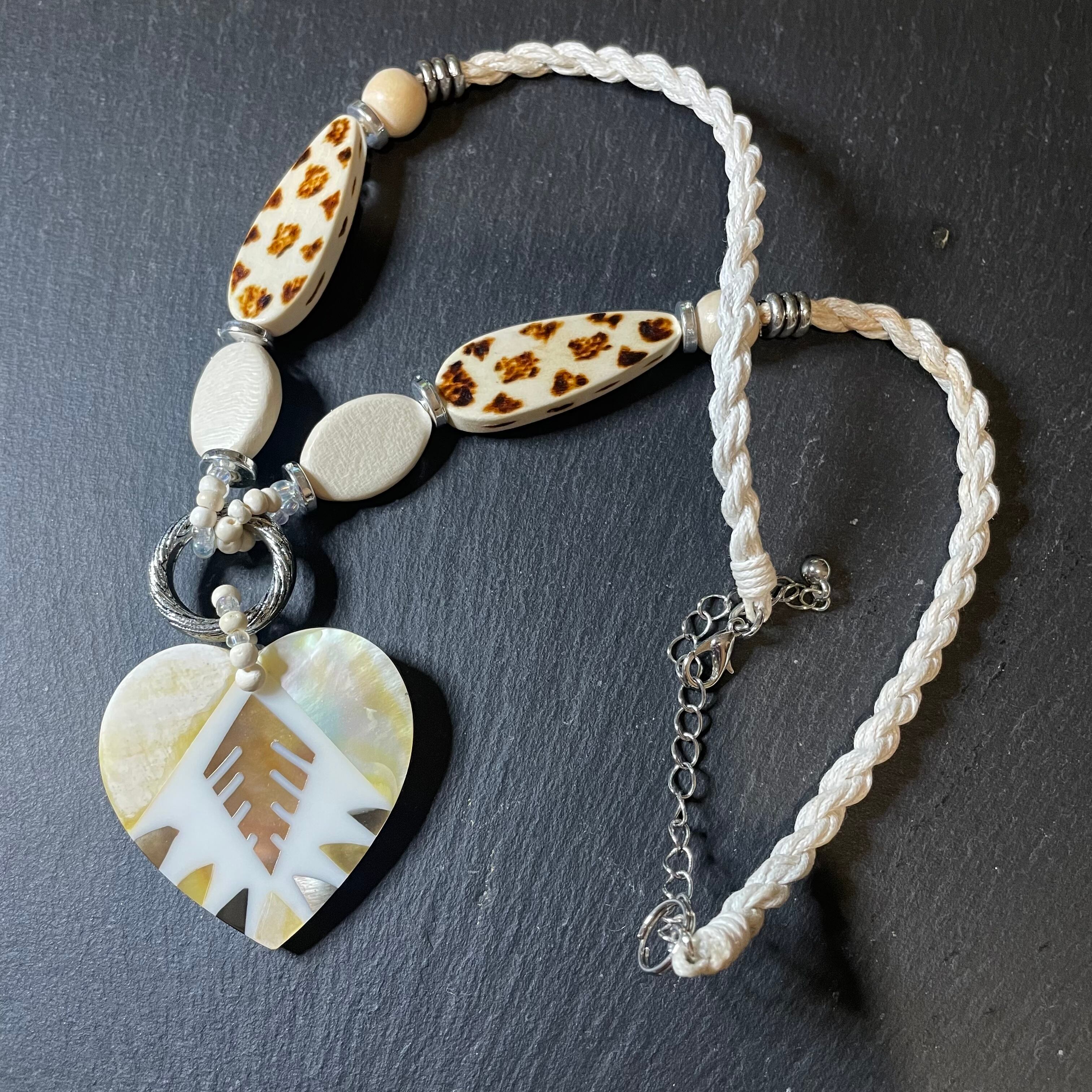ヒョウ柄のウッドビーズとwhiteを基調としたデザインが平成cultureを感じるitem
